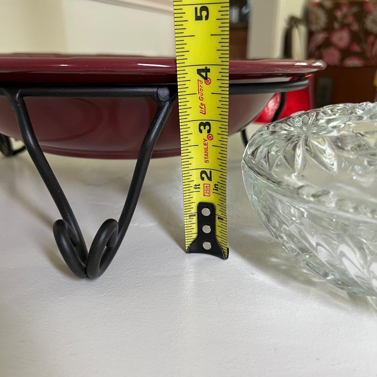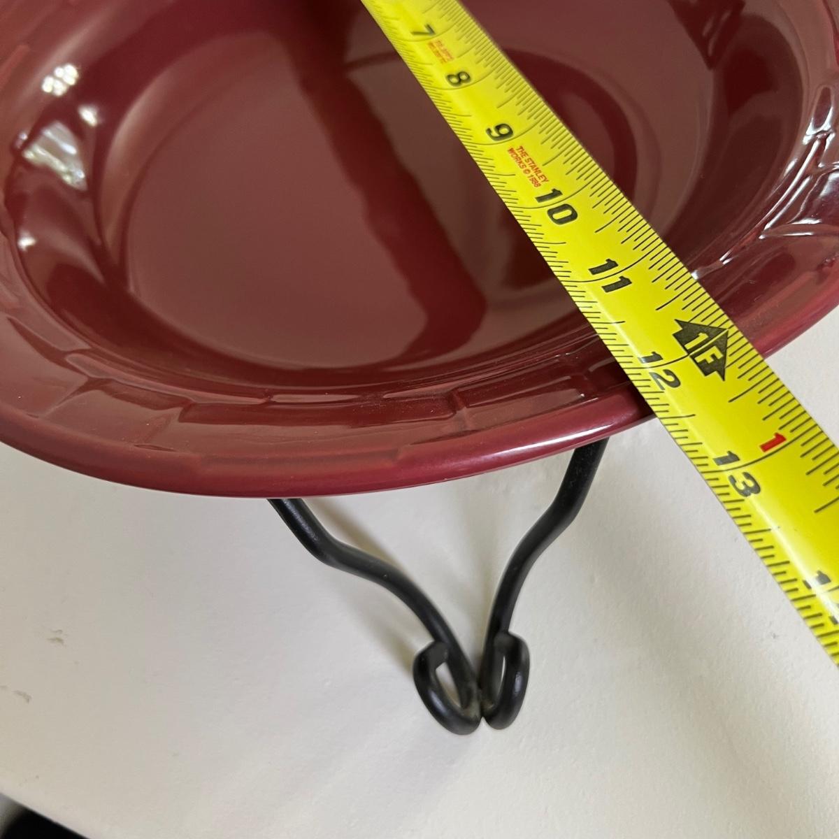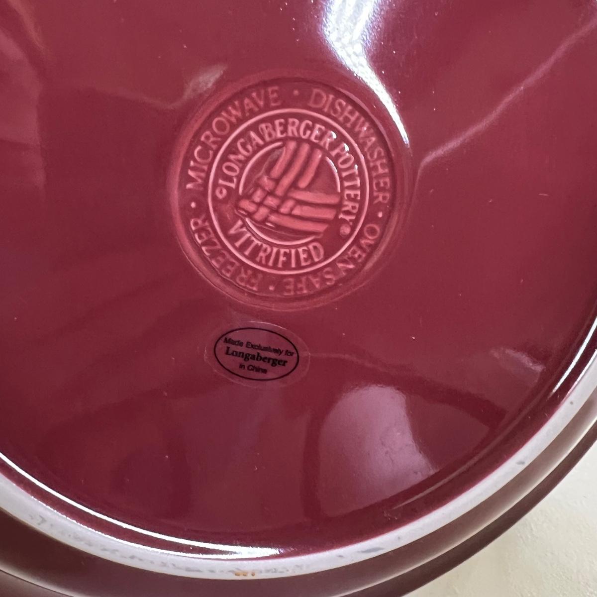 Maroon pottery Longaberger large bowl with stand, 2 star cut glass candy dishes with lids. Great condition.