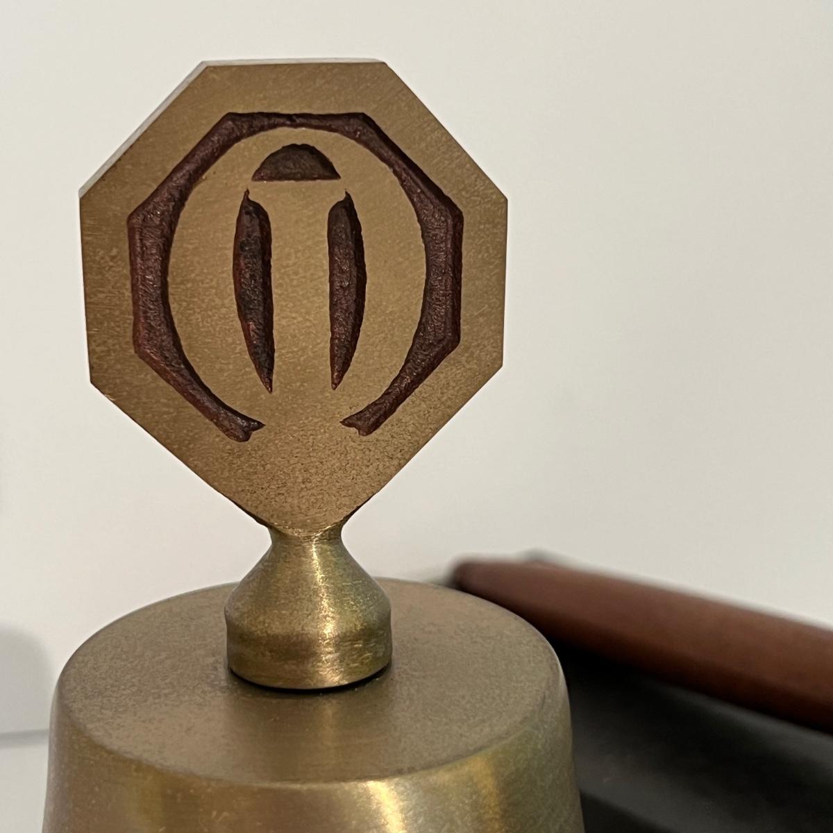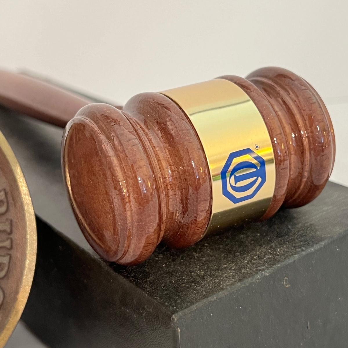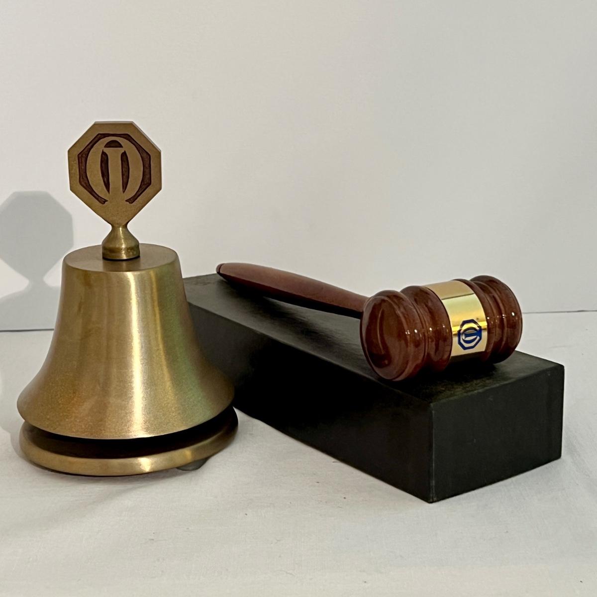 Optimist International heavy bronze bell made by G&S Foundry Freeburg Illinois. Solid wood gavel with Optimist logo and sound block.