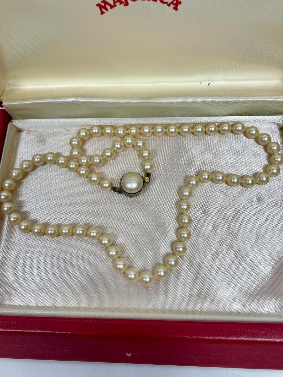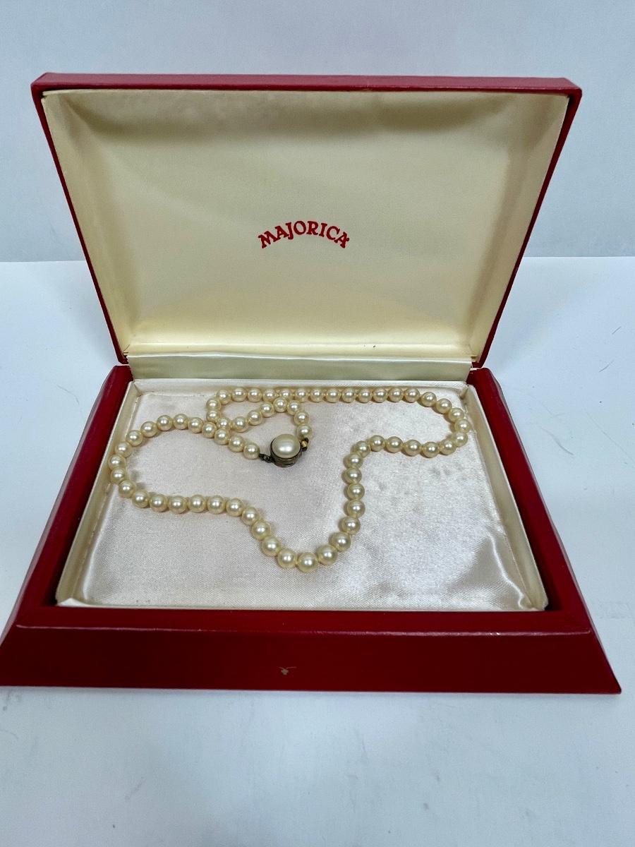 Vintage MAJORICA 8mm Pearl Necklace Choker 16'' Sterling Silver Clasp