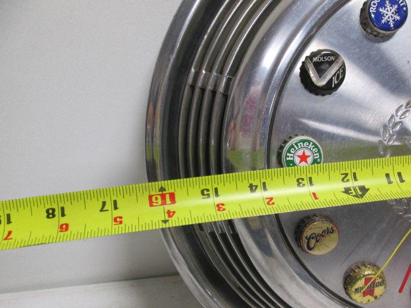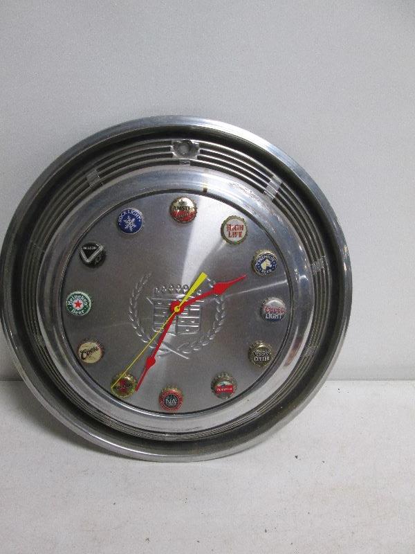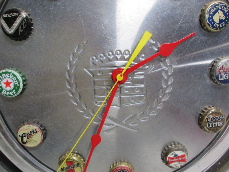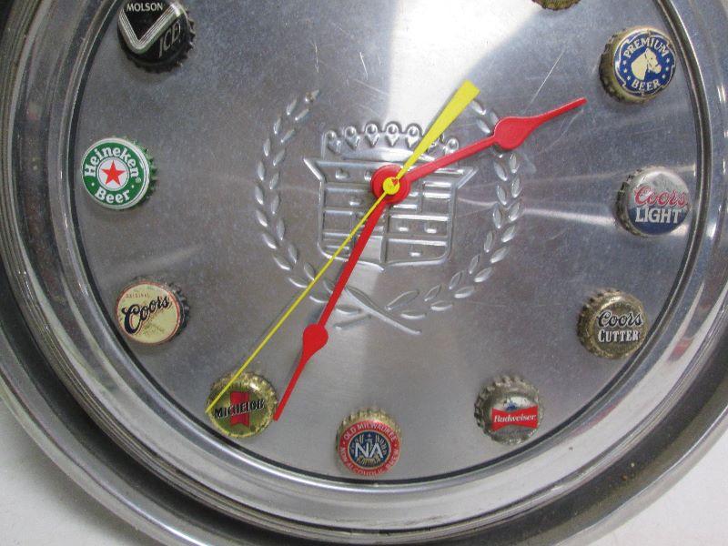 Vintage Cadillac Hub Cap Clock Made with Beer Caps