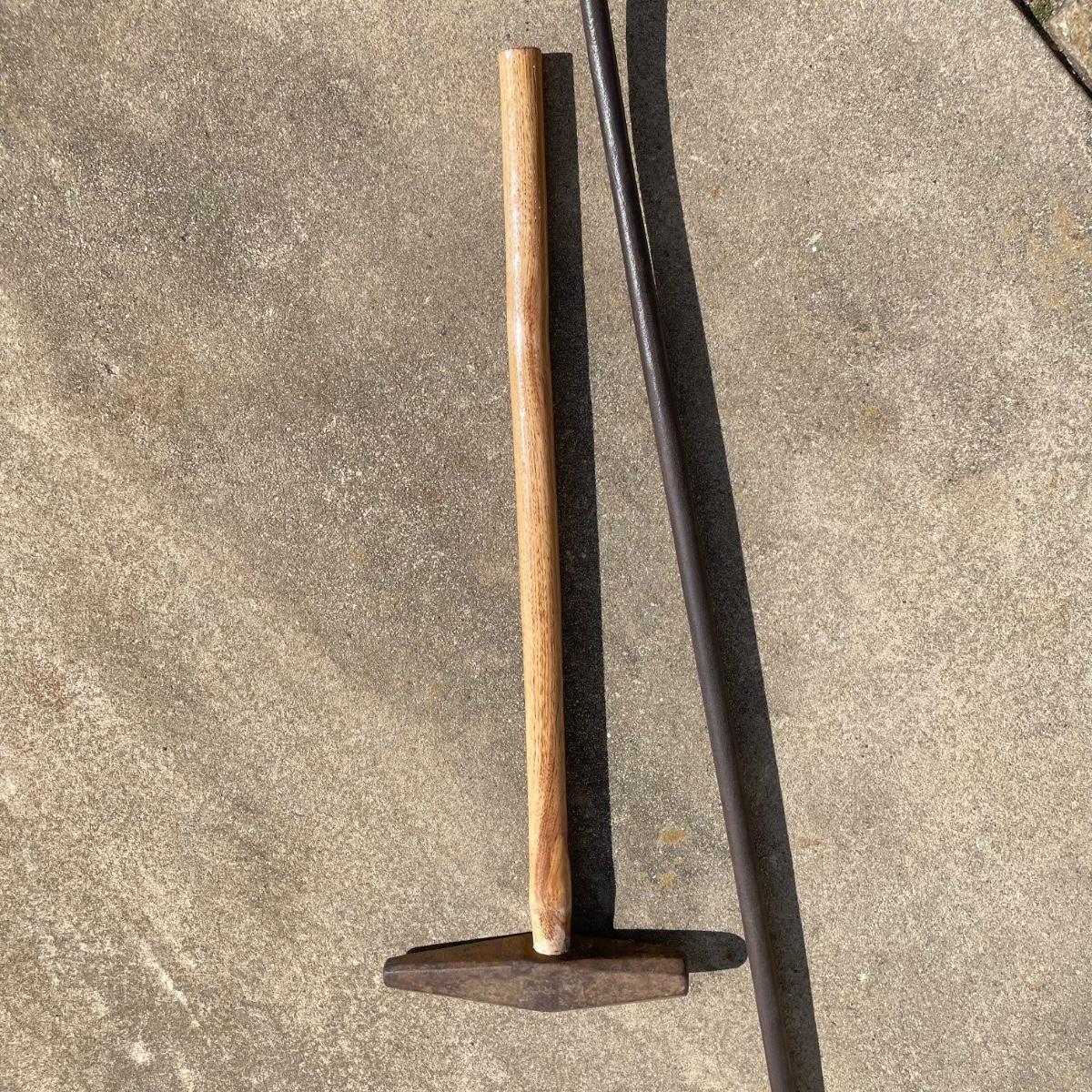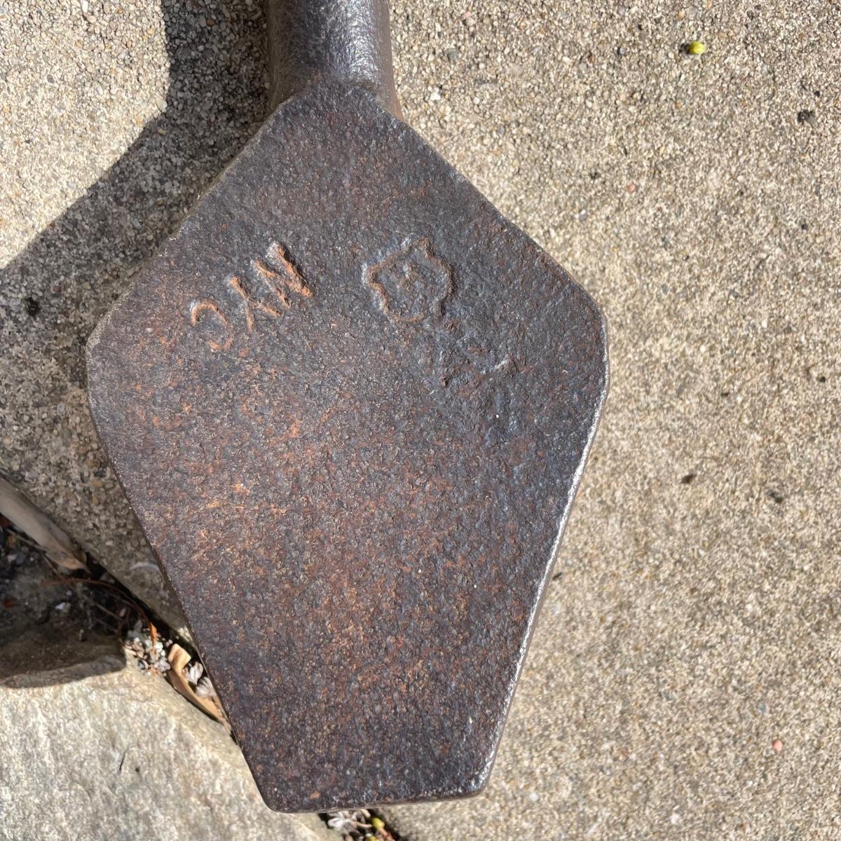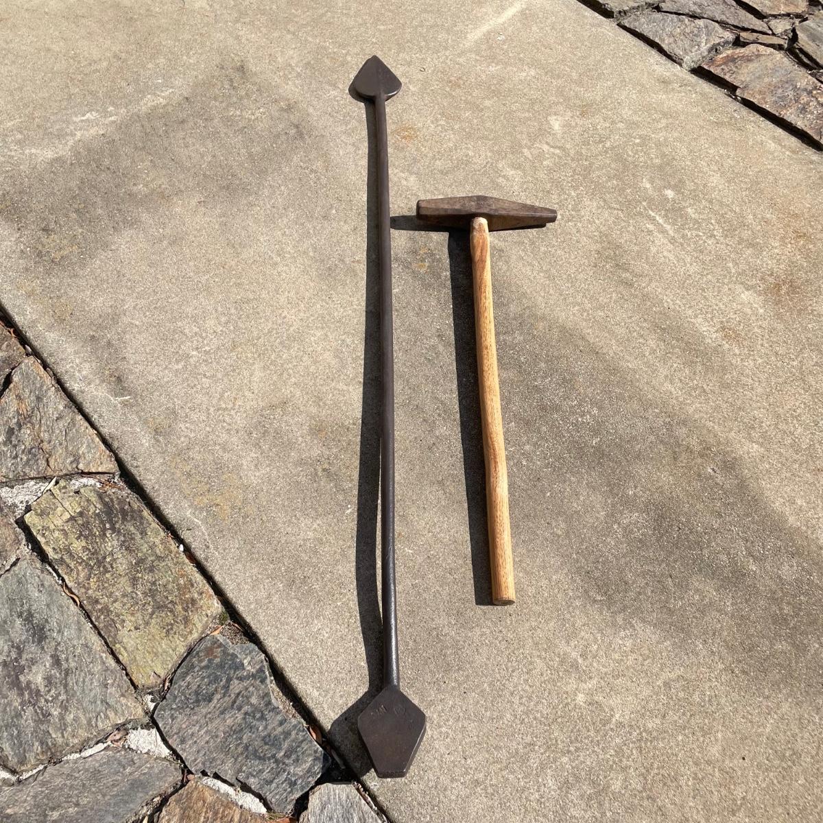 Two metal tools with the Hubbard shield stamp. The dual sided full iron tool is about 68” long. The #10 spike maul measures 12” x 35.5”. See pix. Local pick up