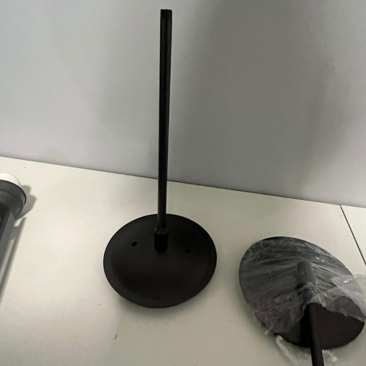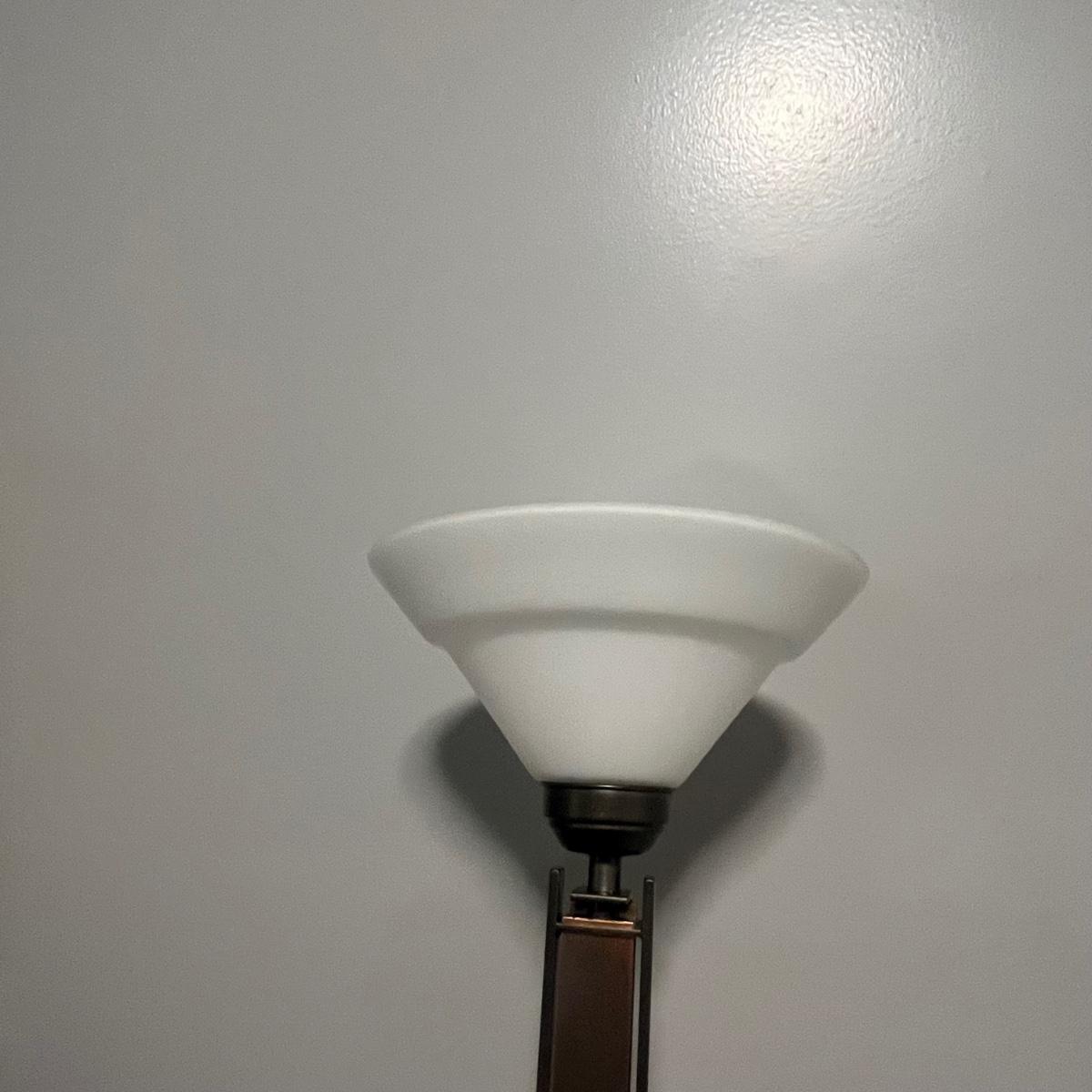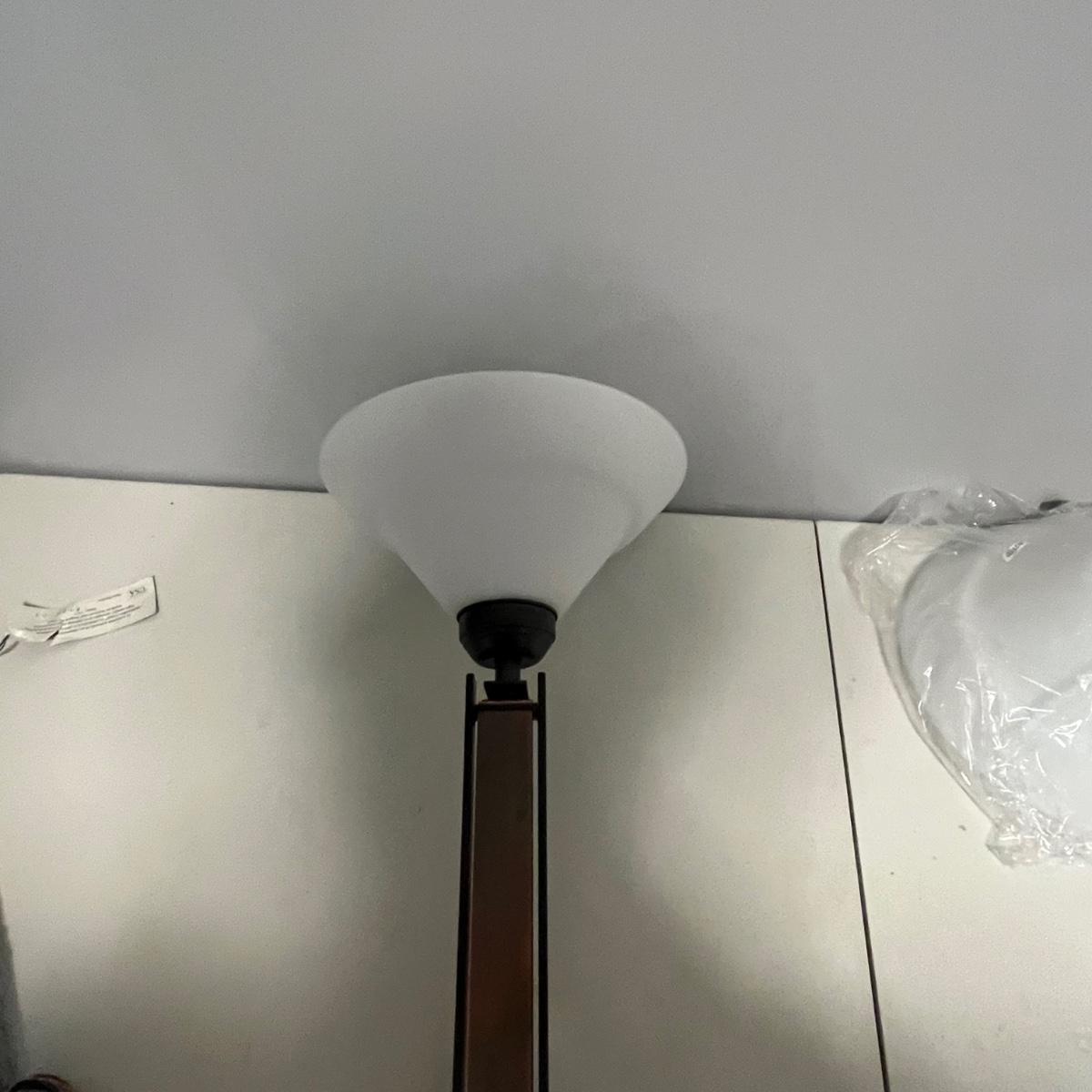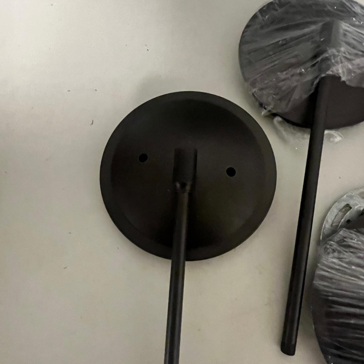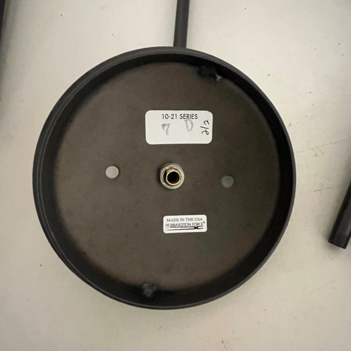 Lot includes four copper and steel Hubbardton lights with four glass shades and mounts. One shade is different than the other three, see pictures. Fixtures measure 2” x 1” x 20”H without shade.