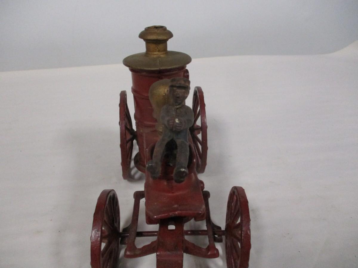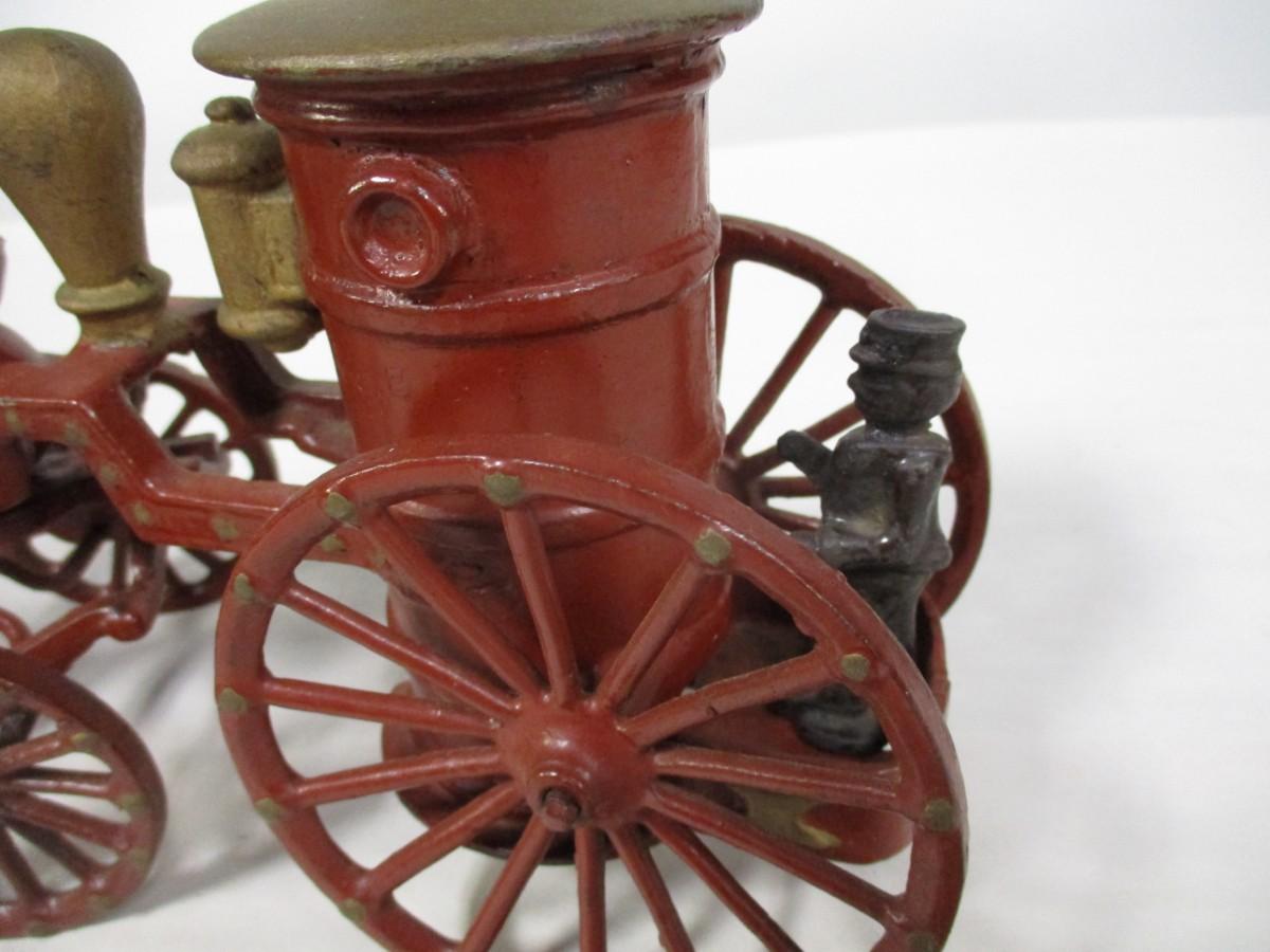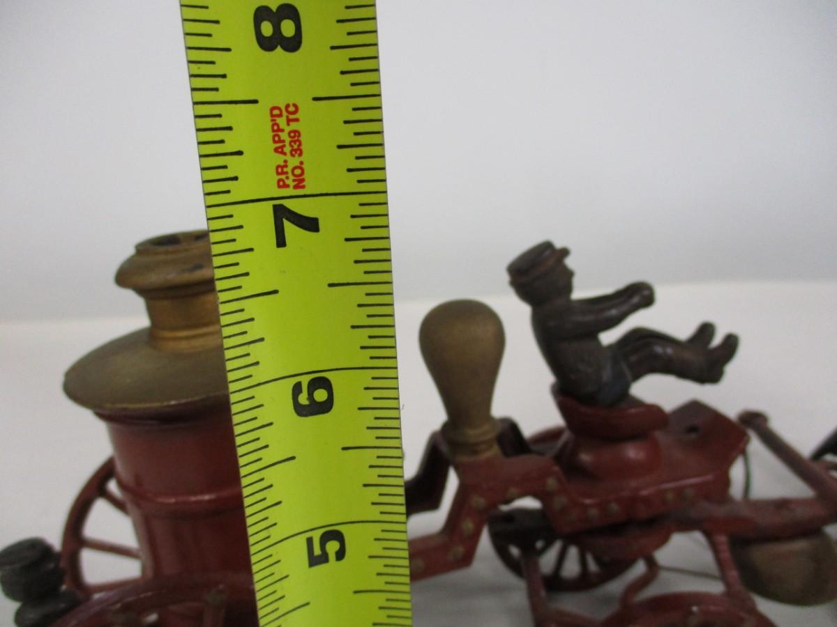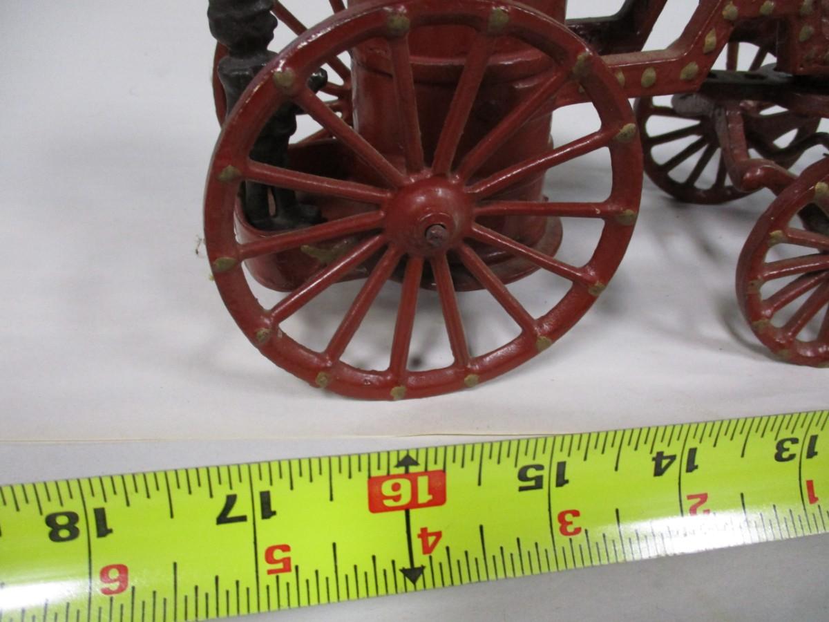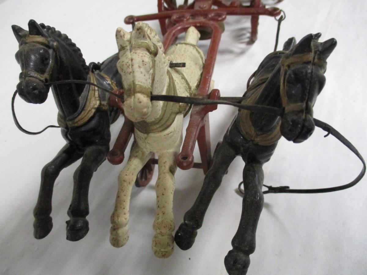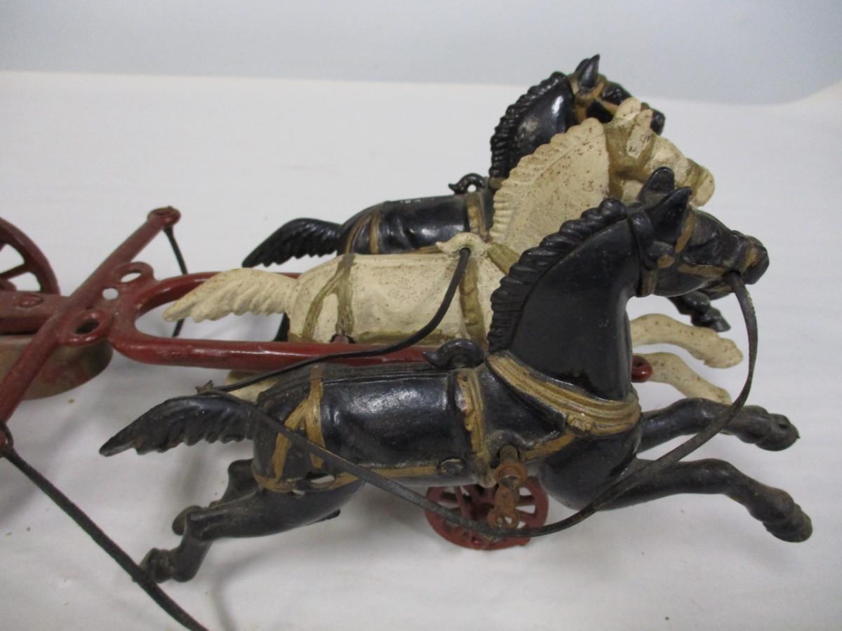 Vintage Hubley Cast Iron Double Horse Team Drawn Fire Truck with Driver & Rider