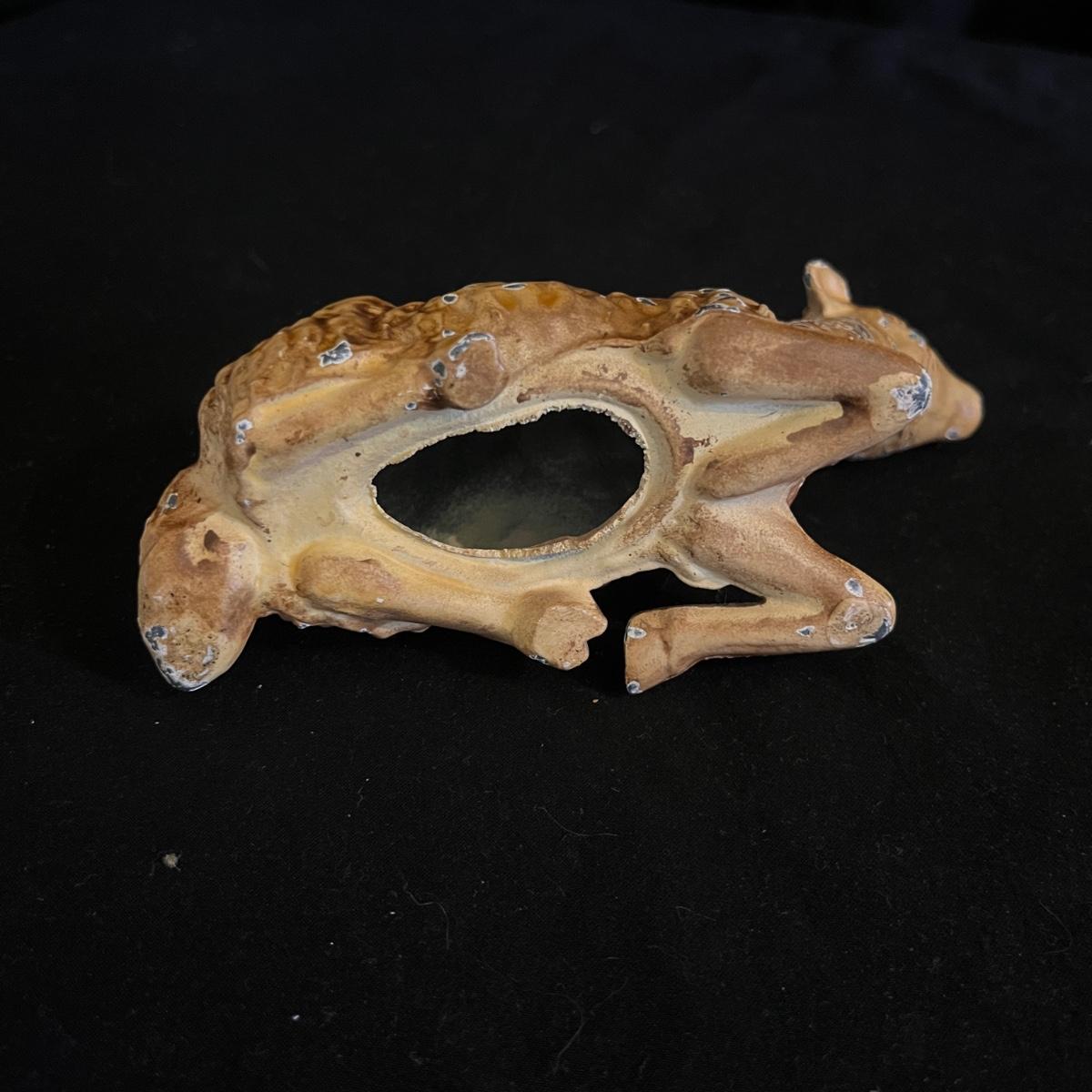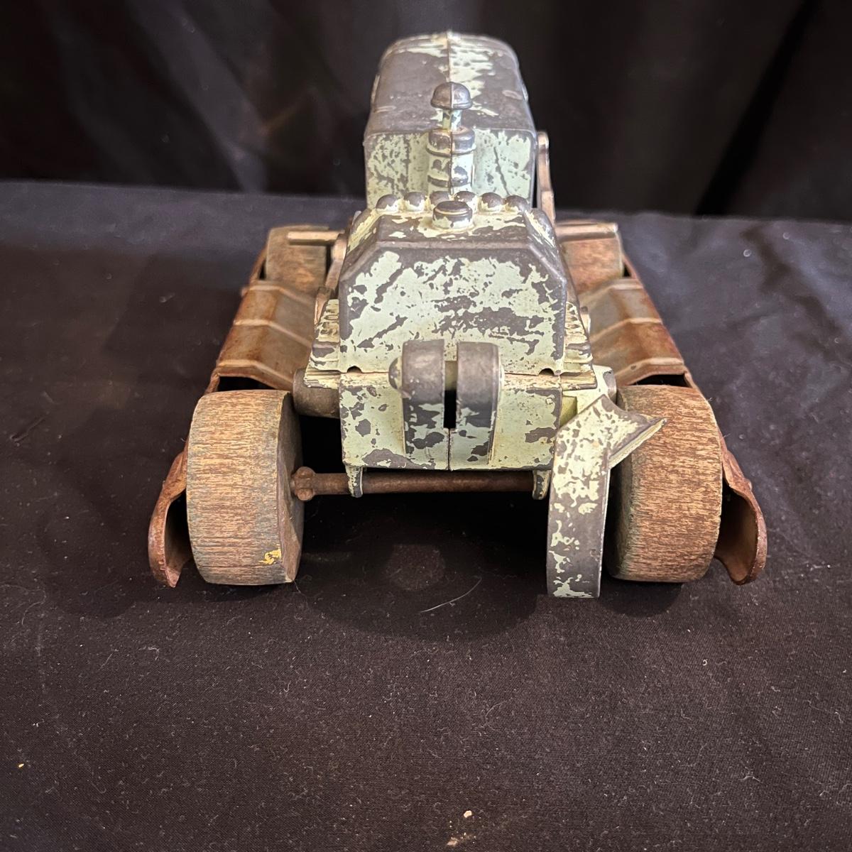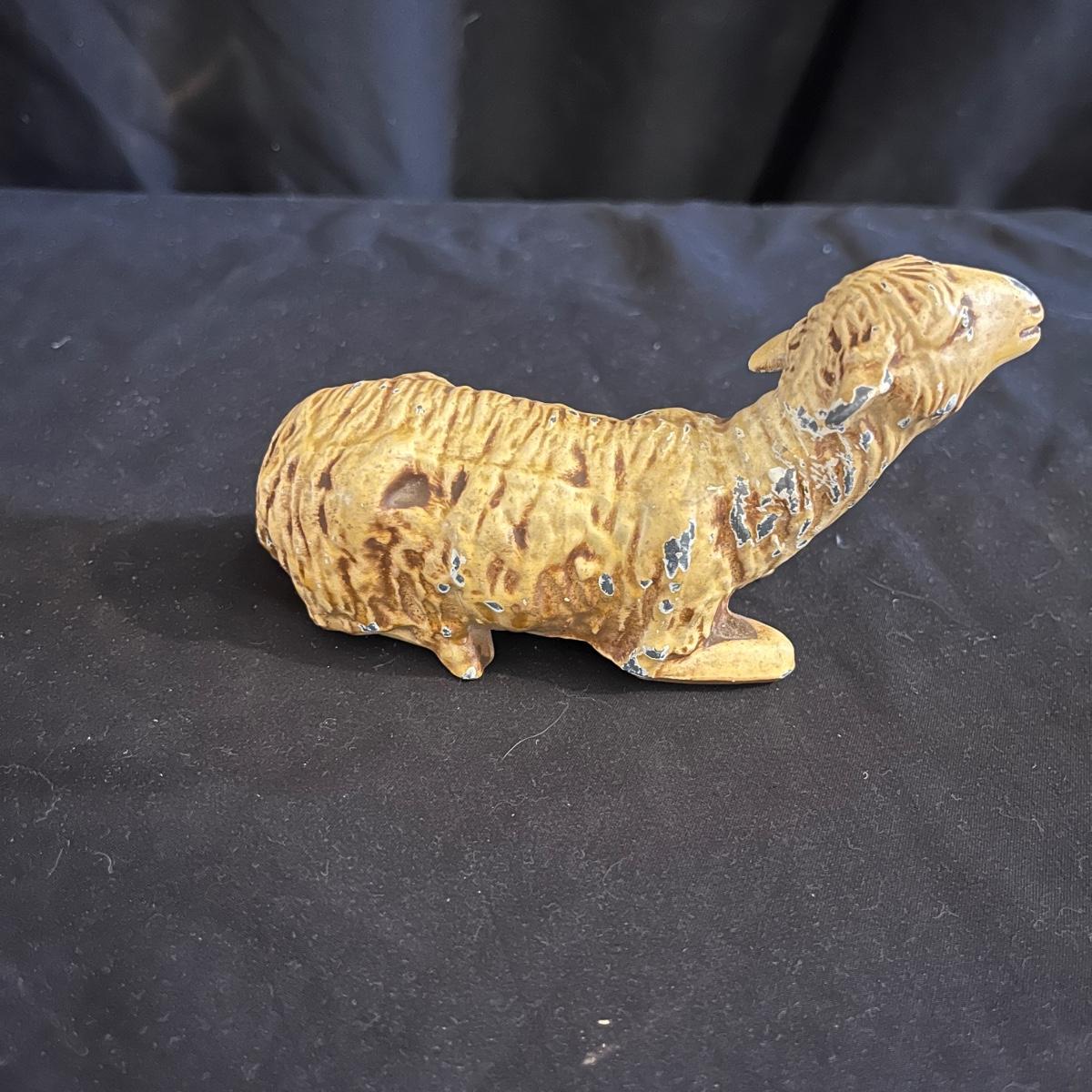 Lot includes a vintage Hubley die cast bulldozer and a painted metal lamb. Bulldozer measures 8” x 5” x 4”H. Bulldozer is missing blade and arm is broken and lamb has paint missing in spots, see pictures.