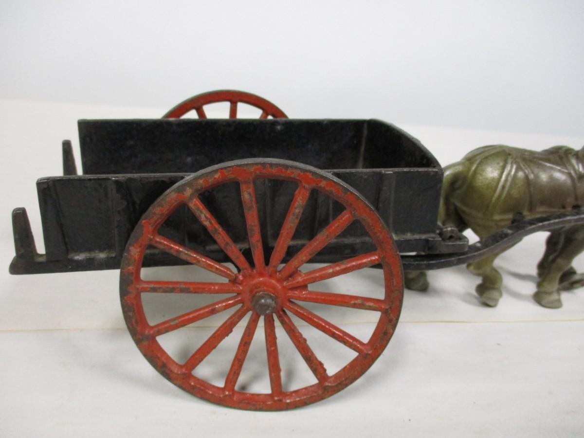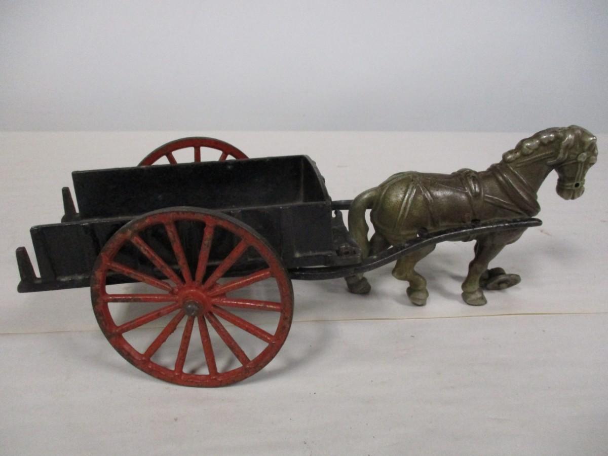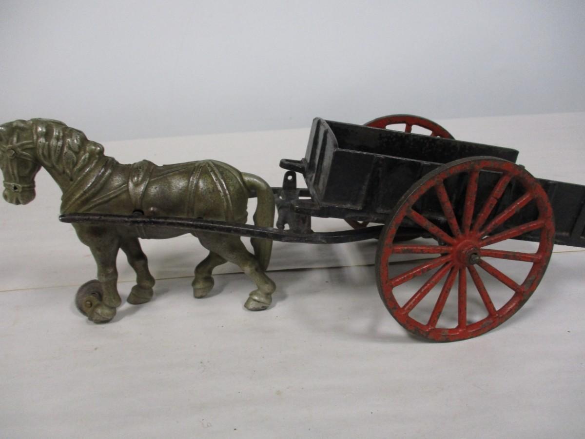 Vintage Hubley Dump Wagon with Rare Nickel-Plated Draft Horse