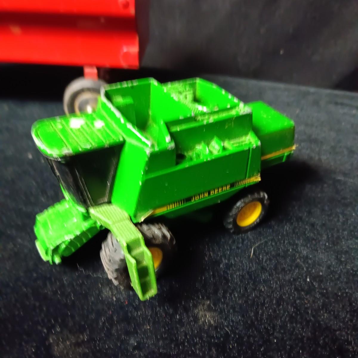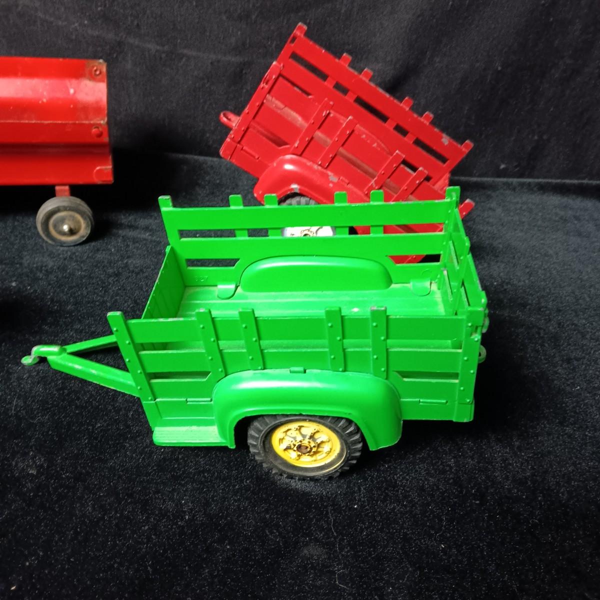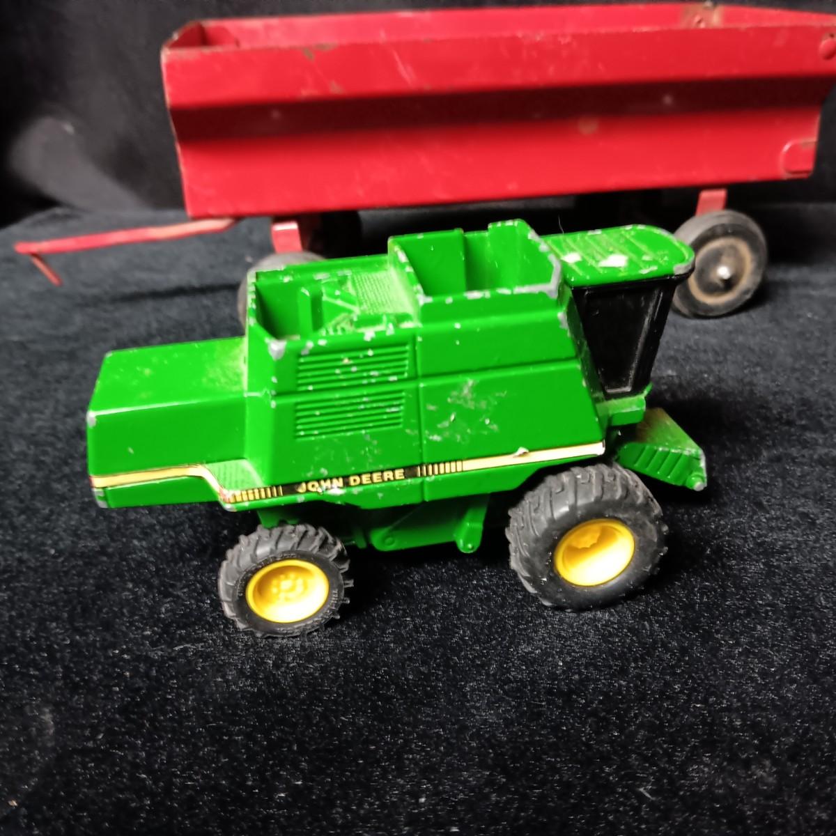 HUBLEY METAL TOY TRAILERS AND AN ERTL JOHN DEERE COMBINE