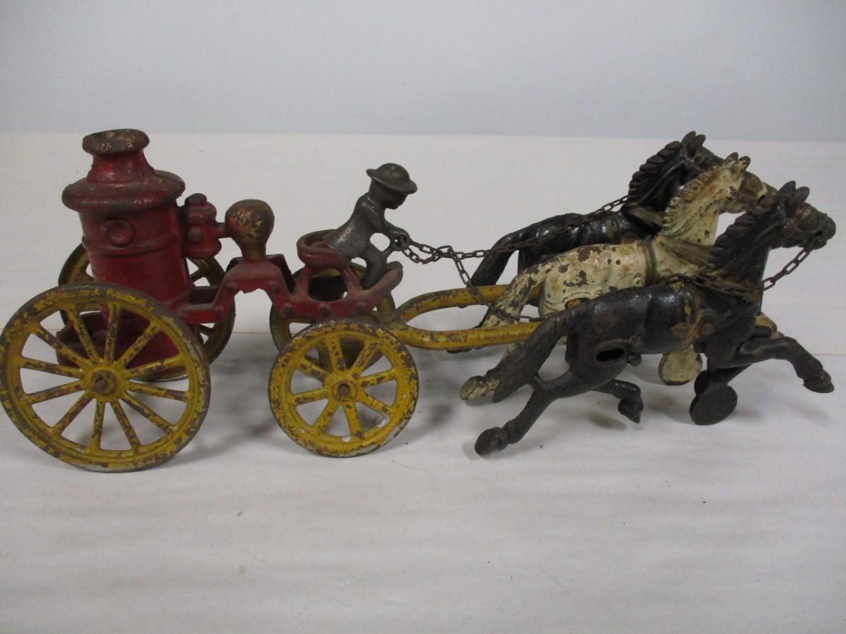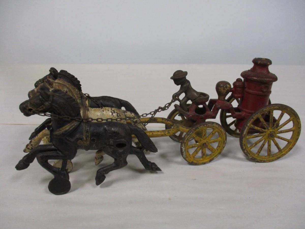 Hubley Toy Cast Iron Horse Drawn Fire Engine Pumper