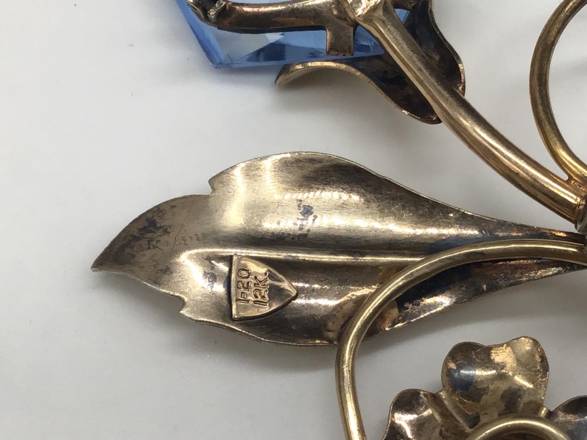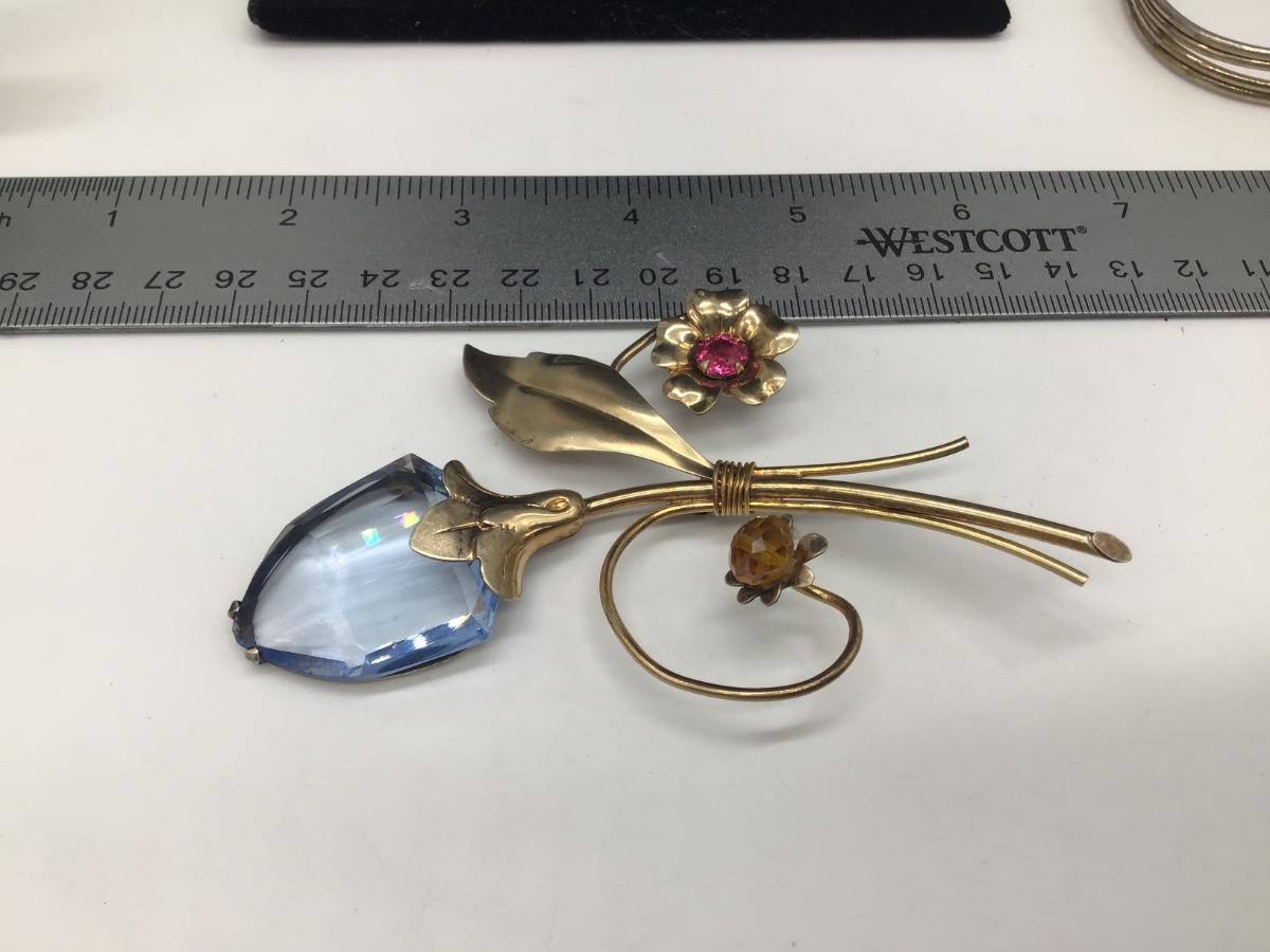 Hudge Vintage 1-20 12 KT Gold Filled Brooch with Rhinestone And Glass