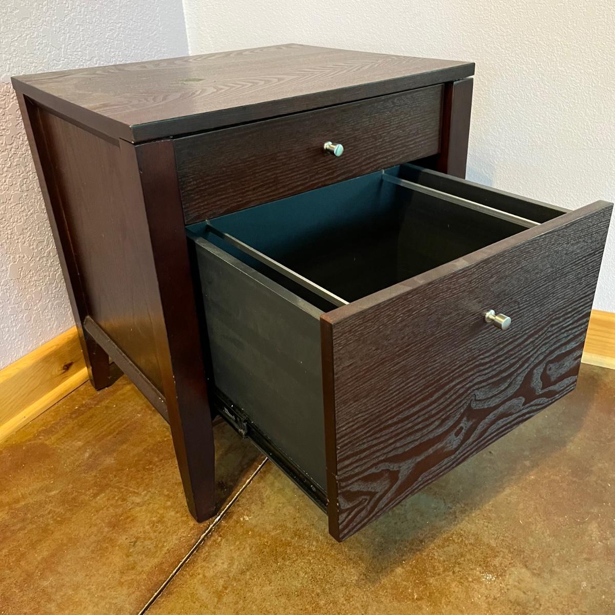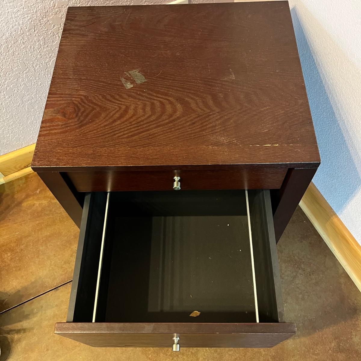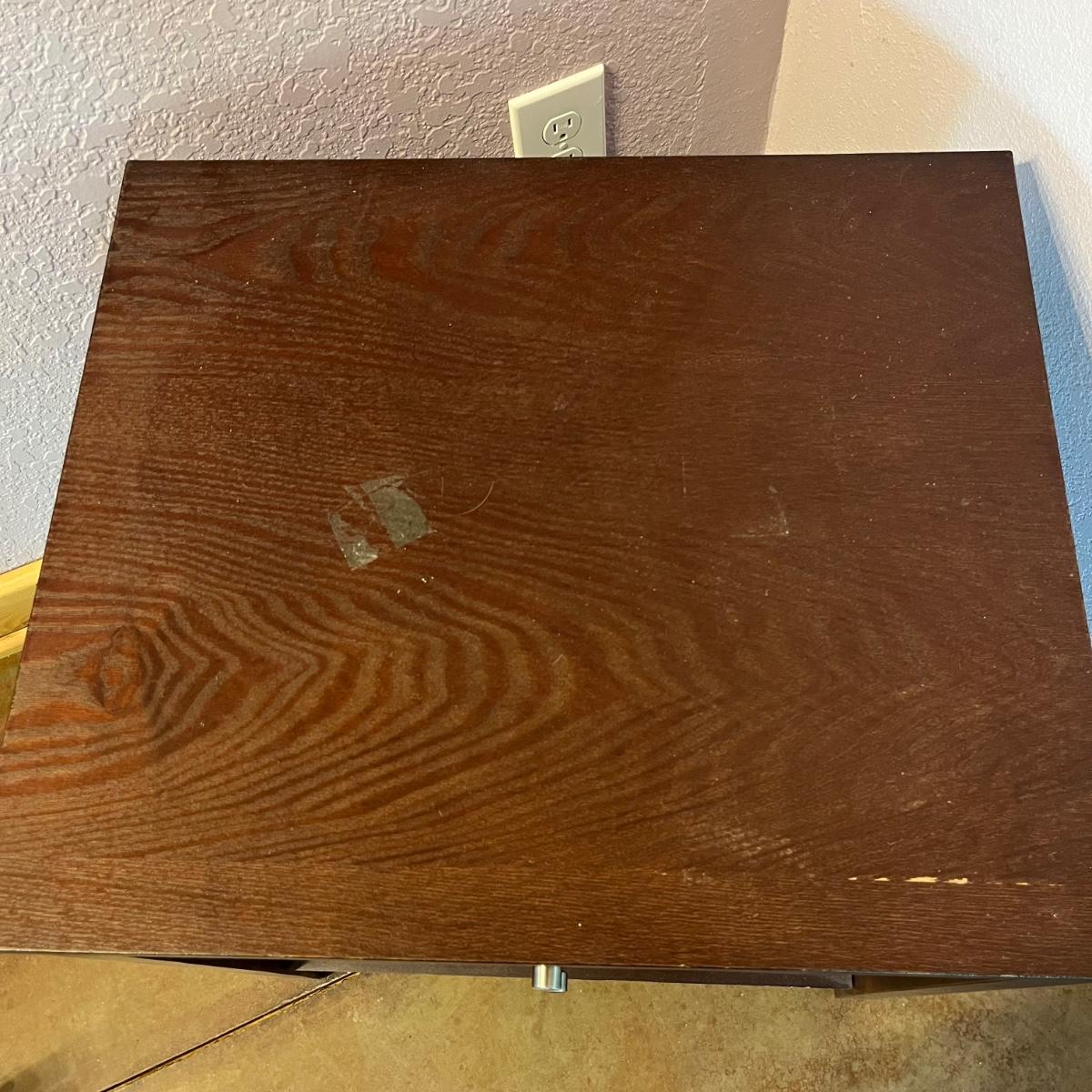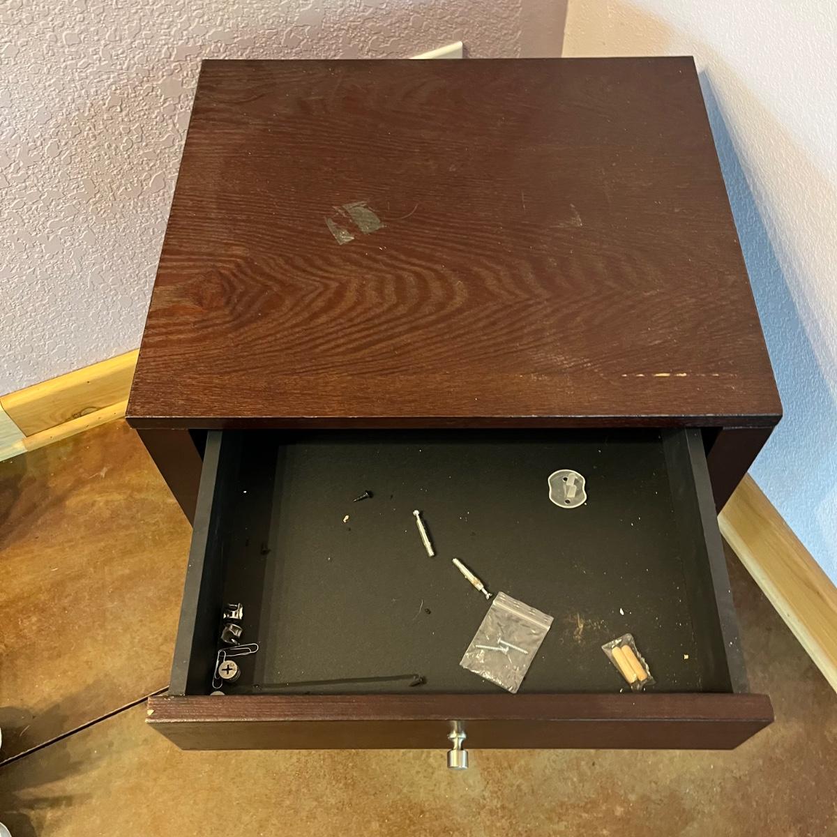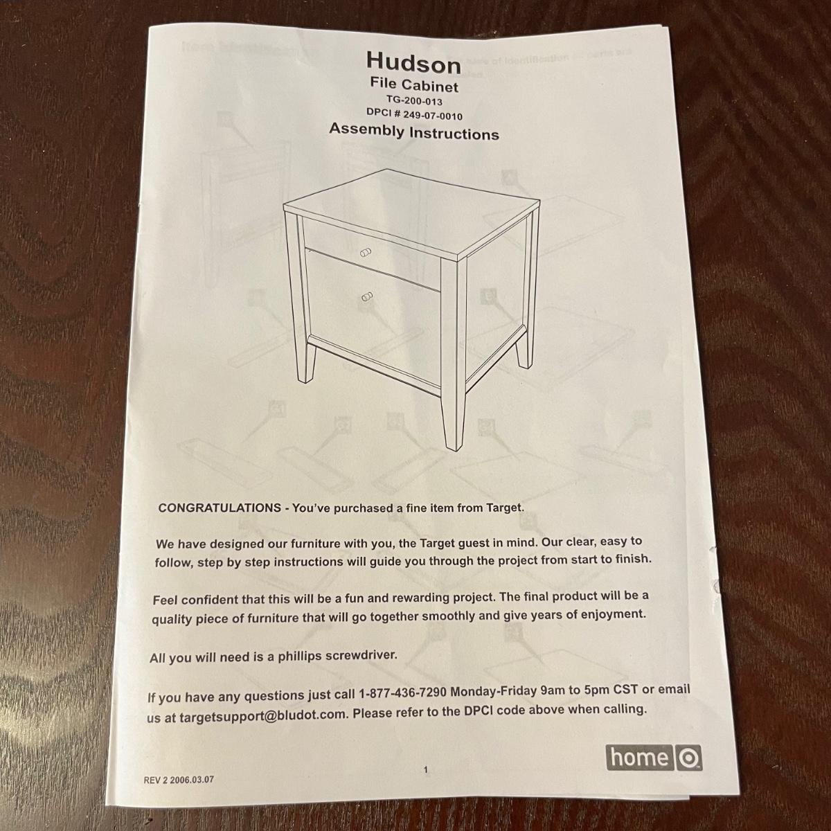 This lot includes one wood filing cabinet from Hudson brand. The cabinet appears to have been put together by the owner and has some fixable construction flaws; the lid of the cabinet comes off (careful when lifting; see photos). The instruction manual is included. The cabinet measures about 21” x 18” x 23”H. Local pickup only.