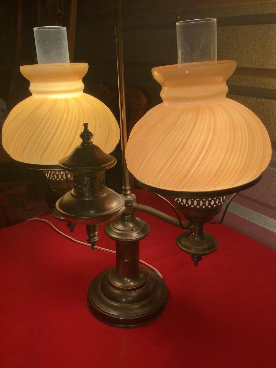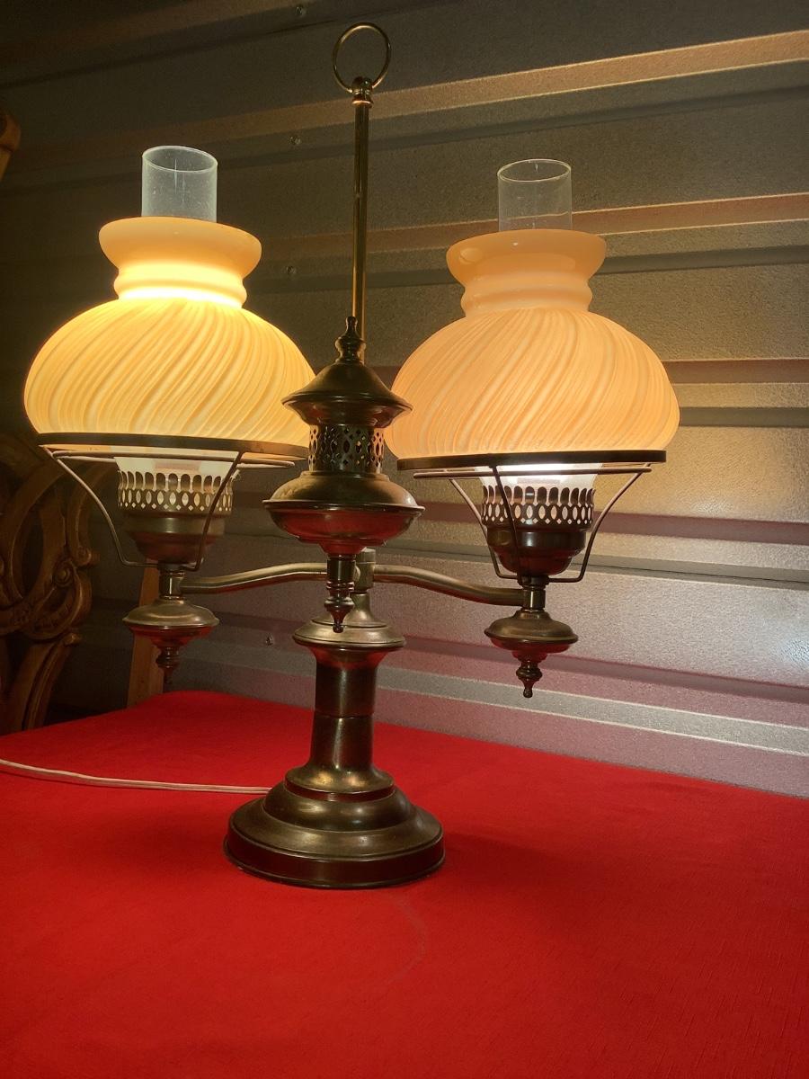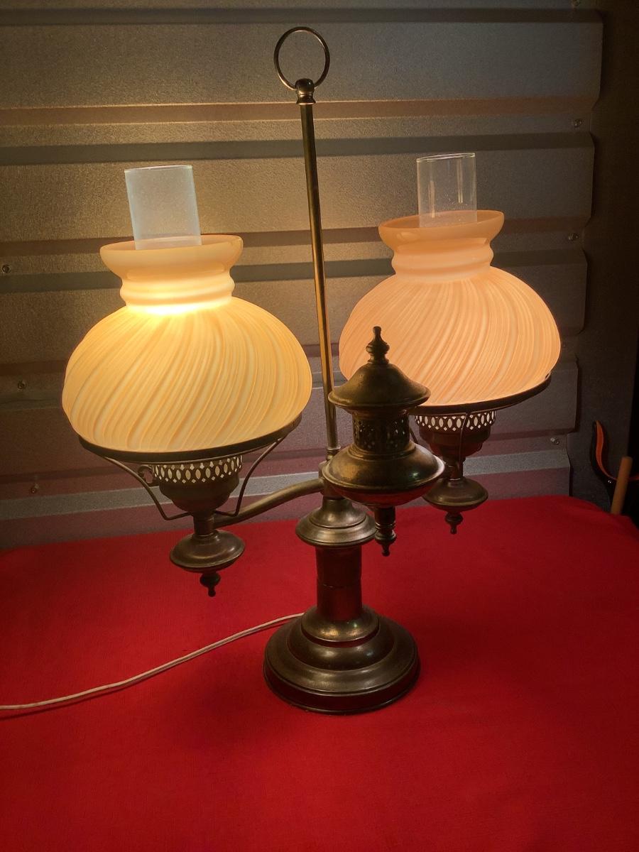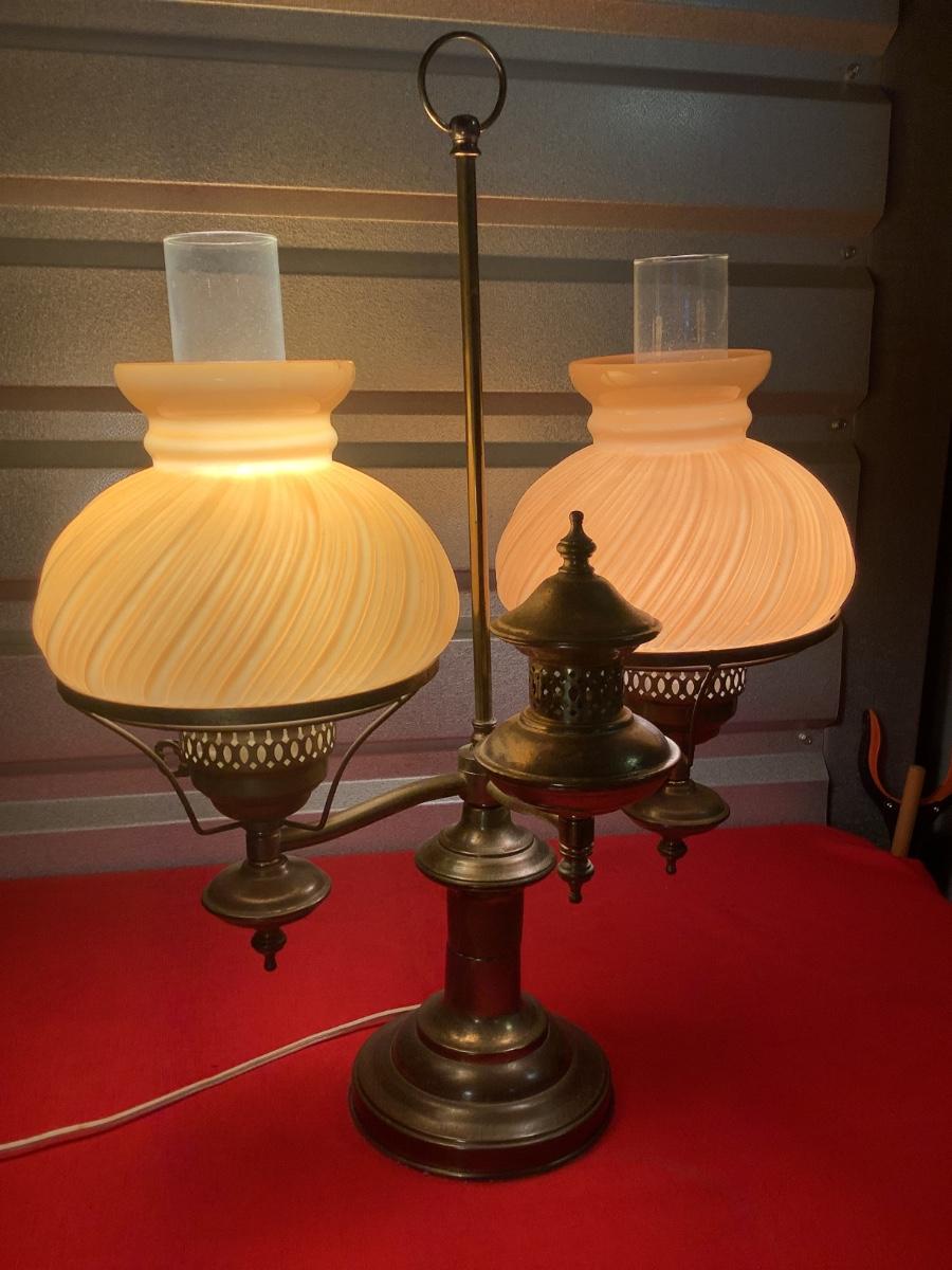 Hudson Valley Brass Lamp, double globe, 23"H 18" 12"