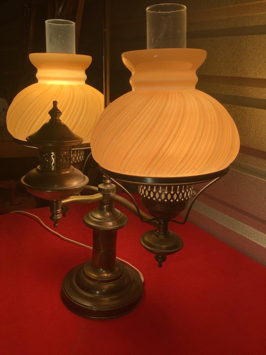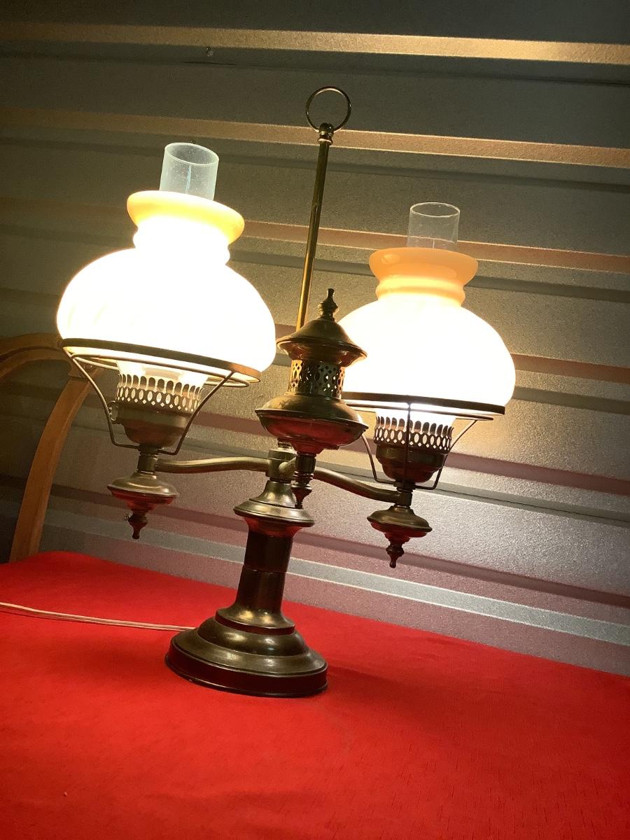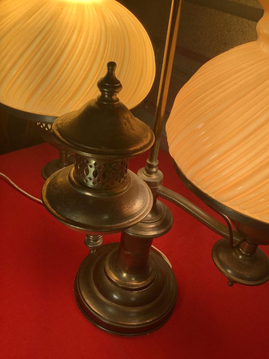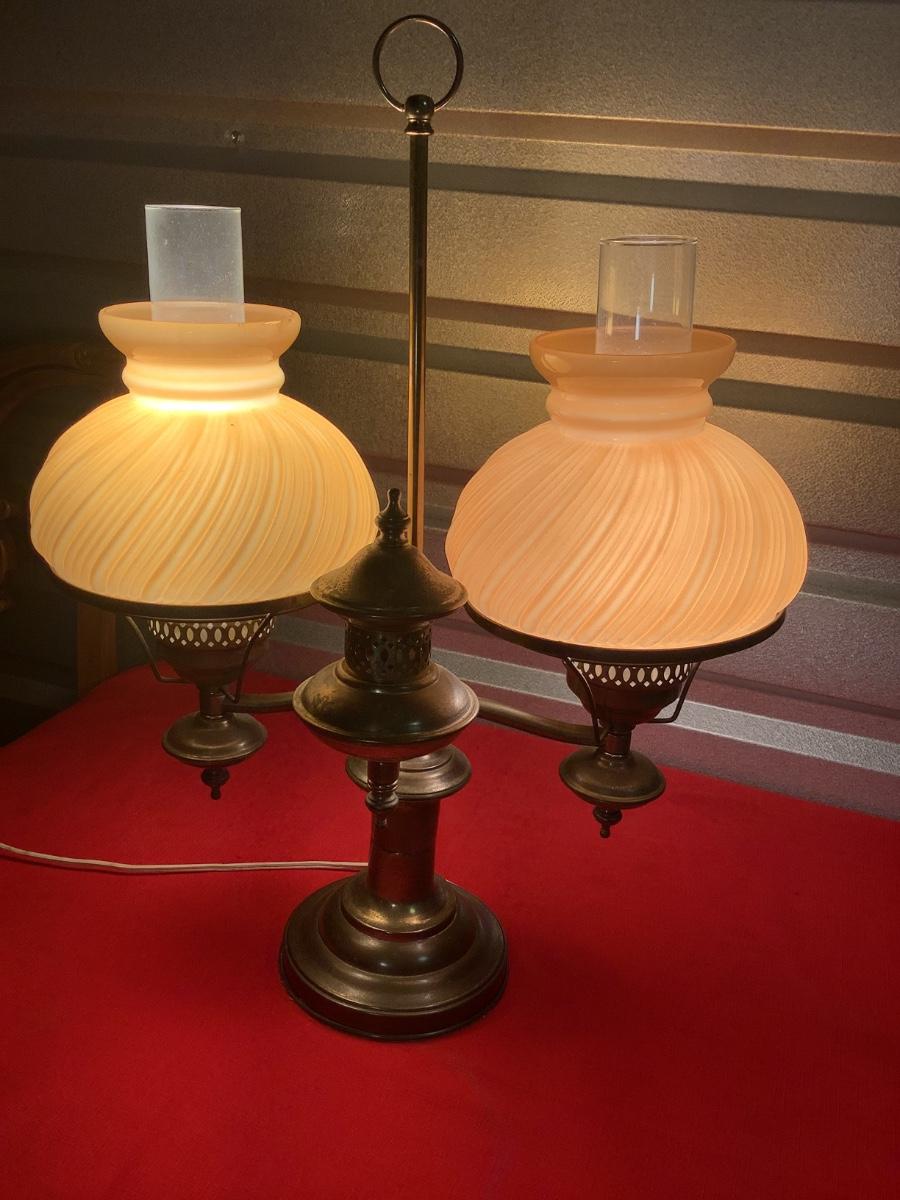 Hudson Valley Brass Lamp, double globe, 23"H 18" 12"
