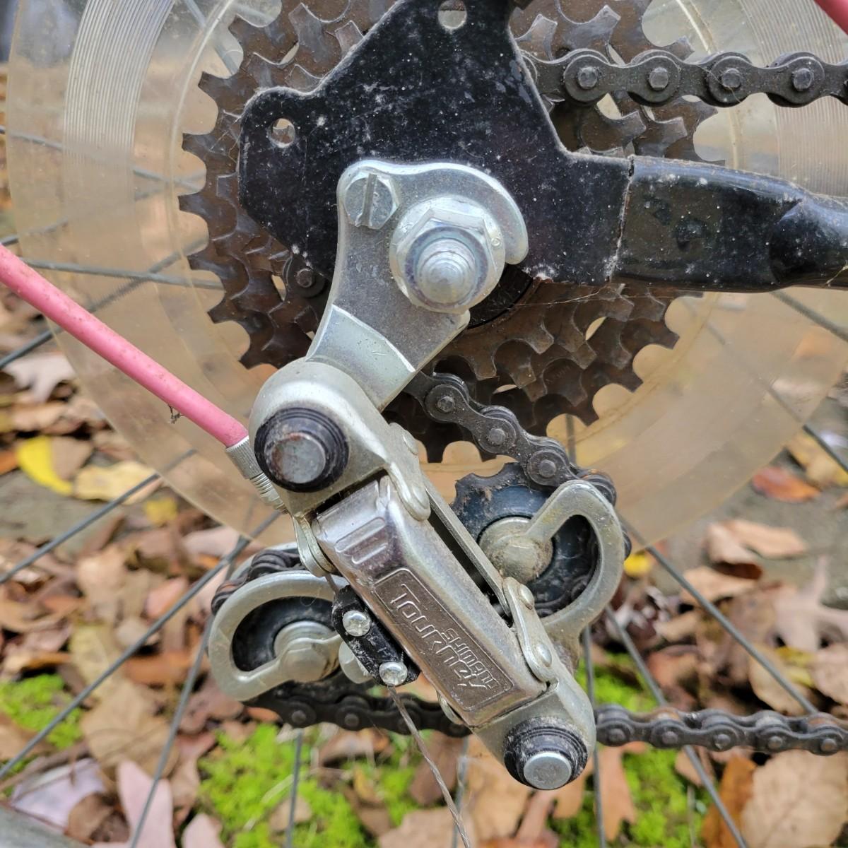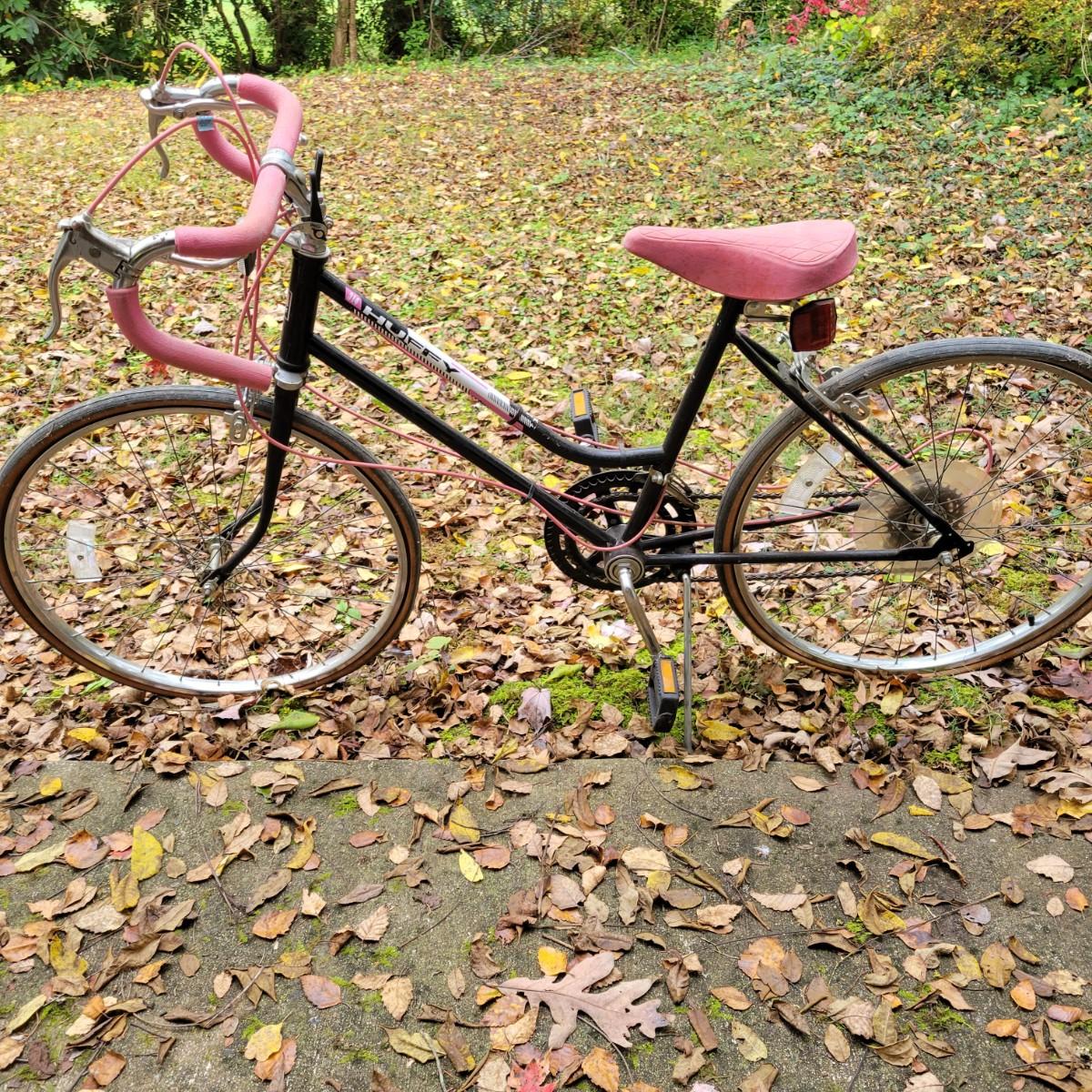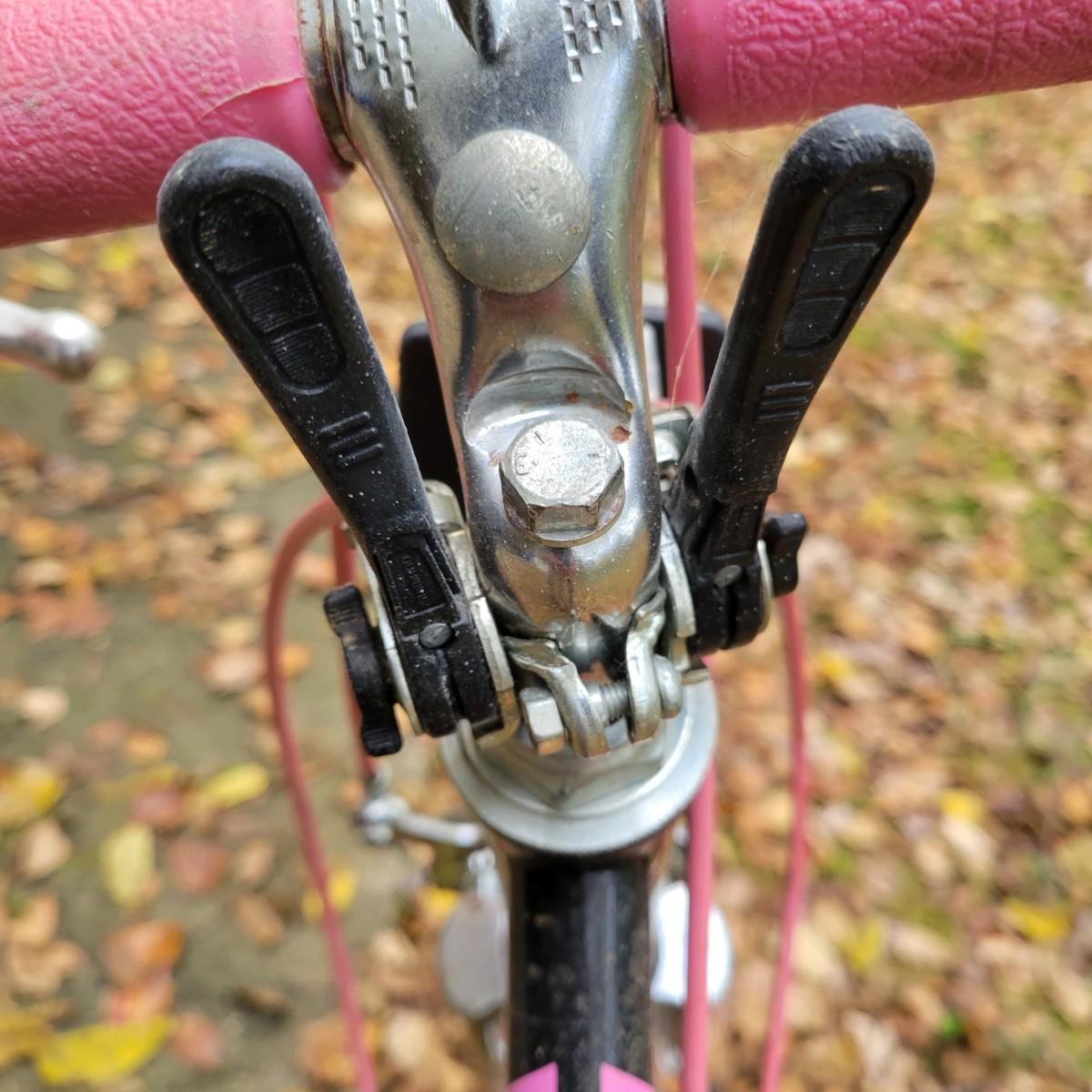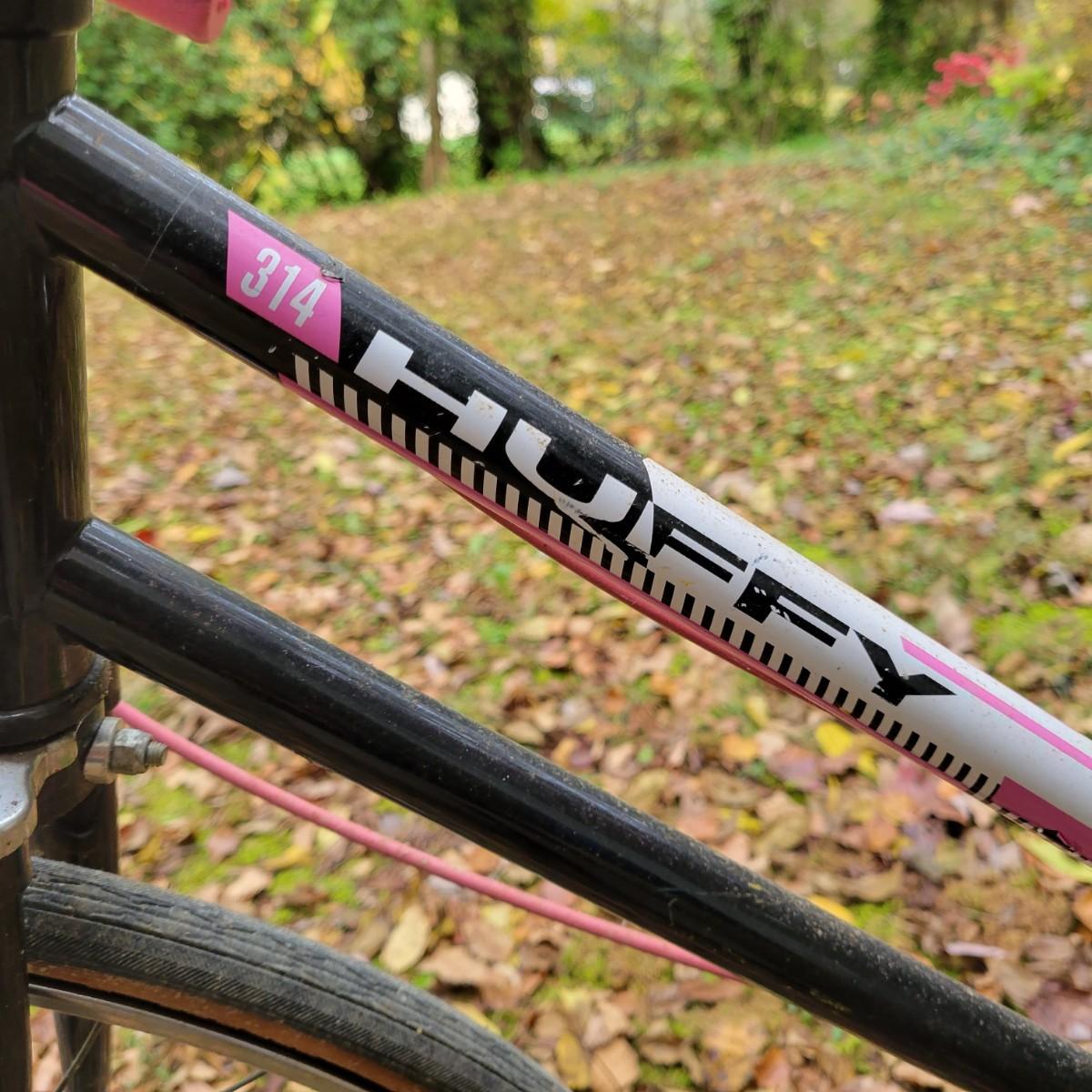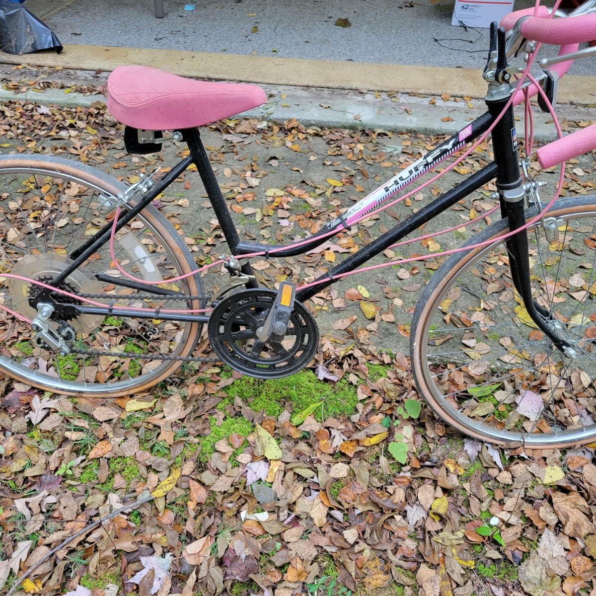 A Huffy 314 girls road bike in good condition with some minor rust on the handle bars. This bike features a 10 speed drive train with Shimano Tourney components. It is a steel frame with a curved down tube, cantilever brakes, 24" tires and shifters on the handles bar riser. Top tube measures approximately 19" and the down tube measures approximately 17" Local pickup only