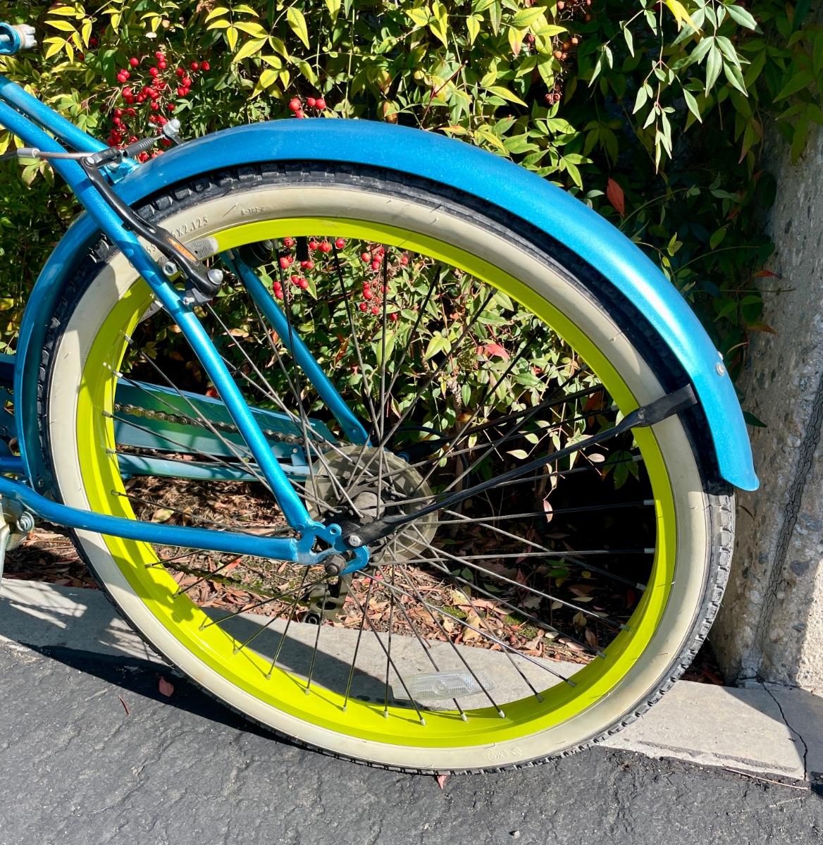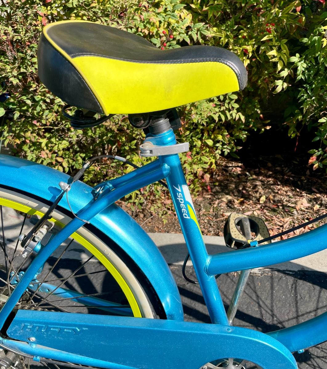 Cruise in style with this bicycle that features a V-luxe 7-speed shift and linear pull brakes for smooth operation. A spring saddle seat ensures comfort. Near new condition, but tires had gone flat while in storage, may need to re replaced.