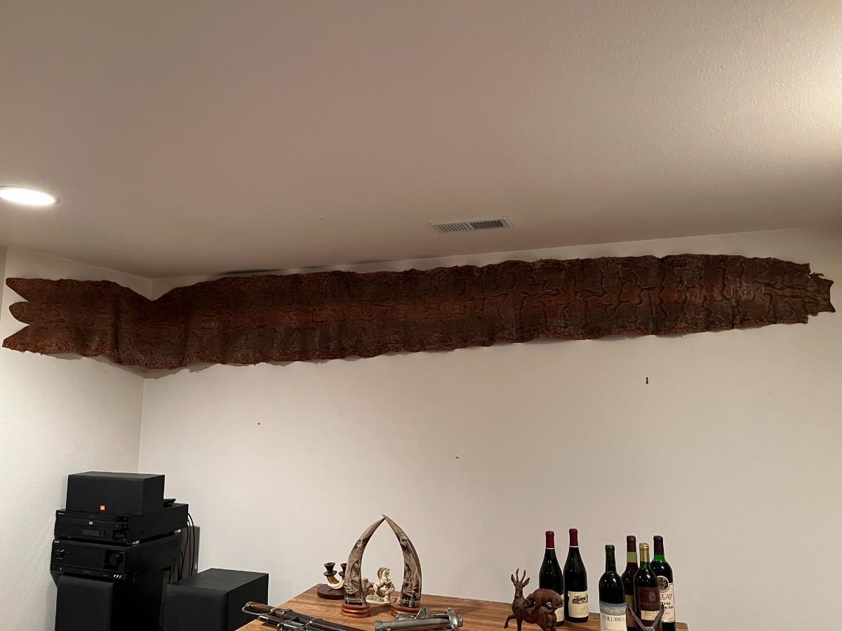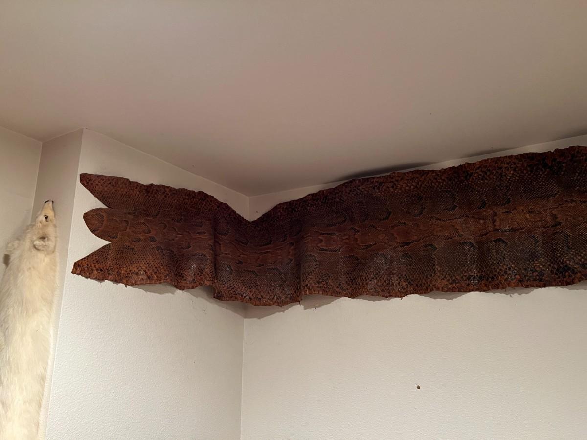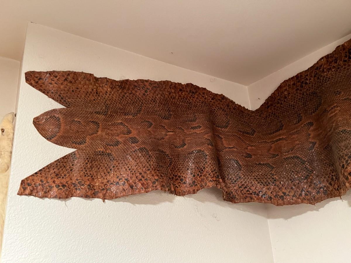 Huge Approximately 13 Feet long Genuine Snake Skin (potentially a Reticulated Python) Leather Taxidermy from a Redmond estate. A very rare find! Condition as shown.