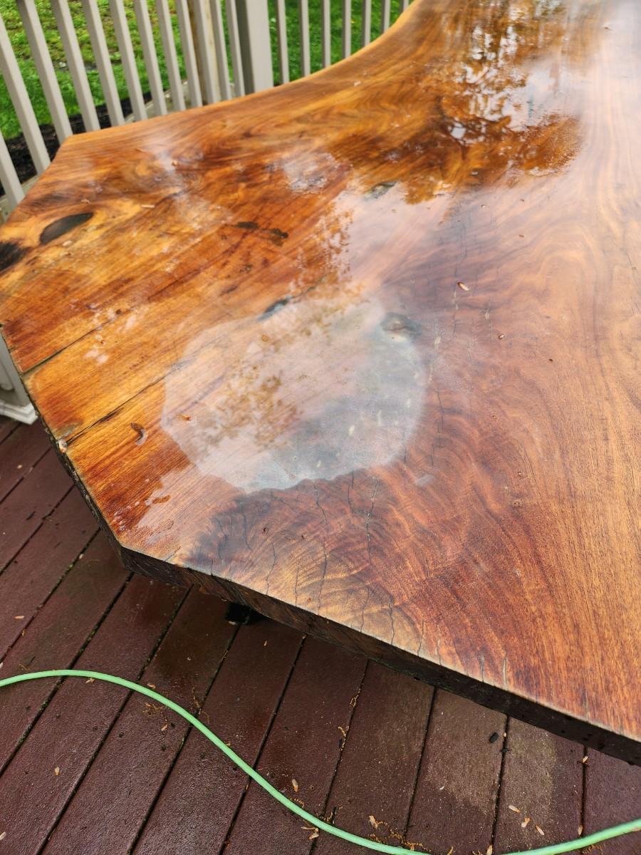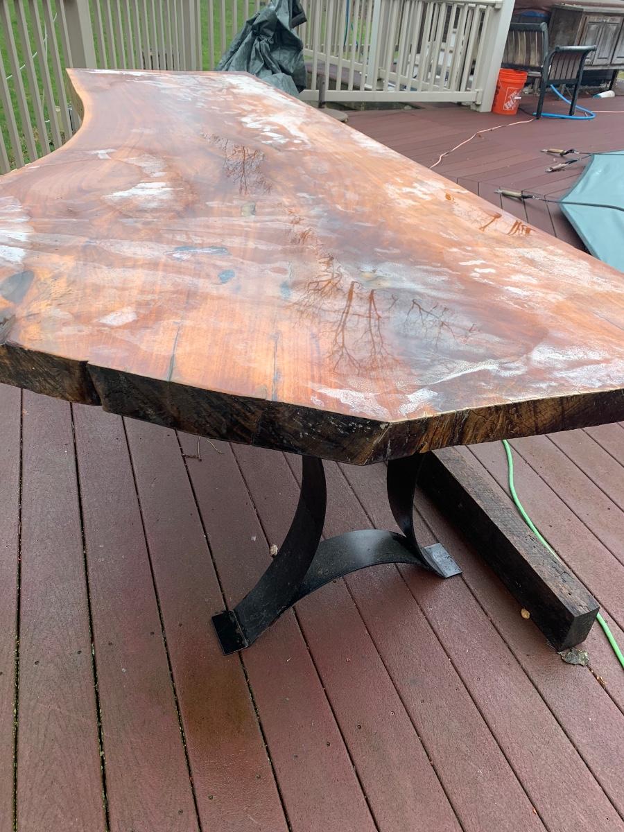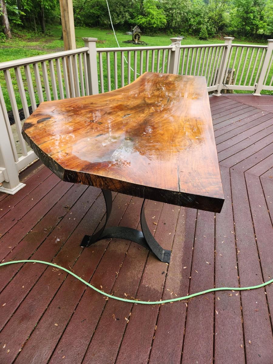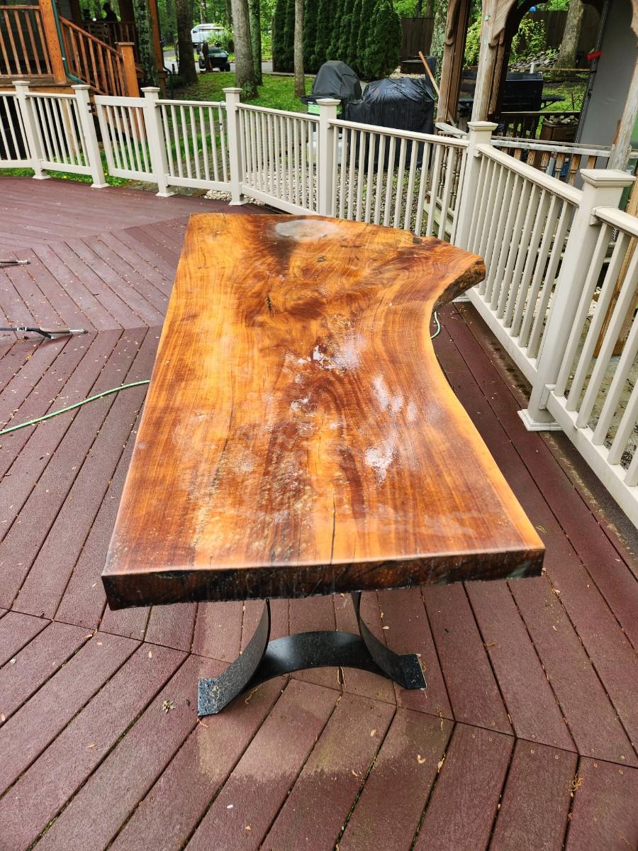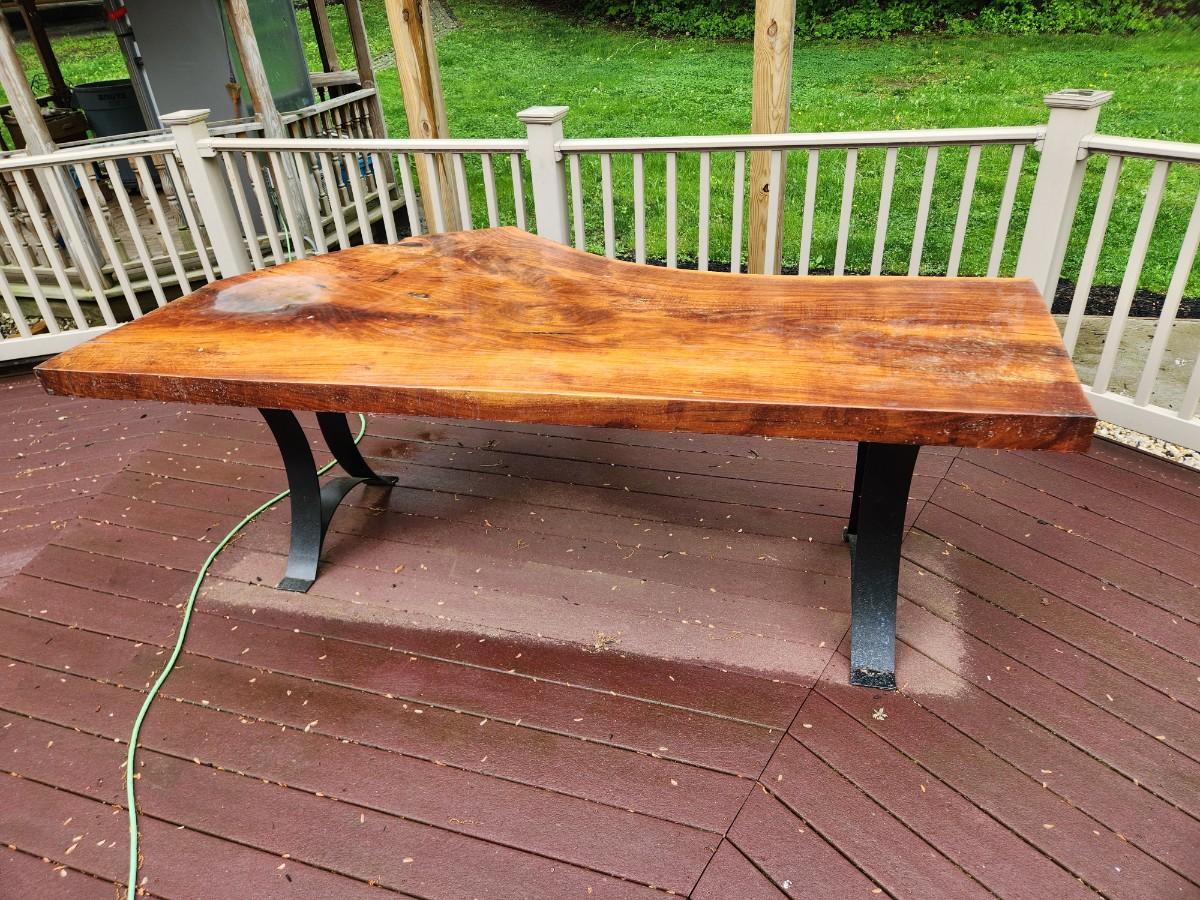 Huge 3" Thick Handmade Wood Table Outside on Deck