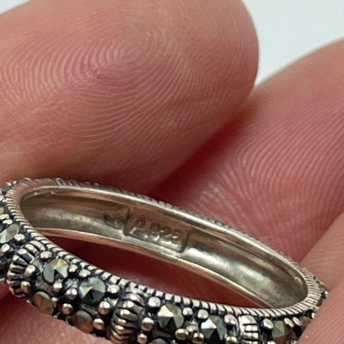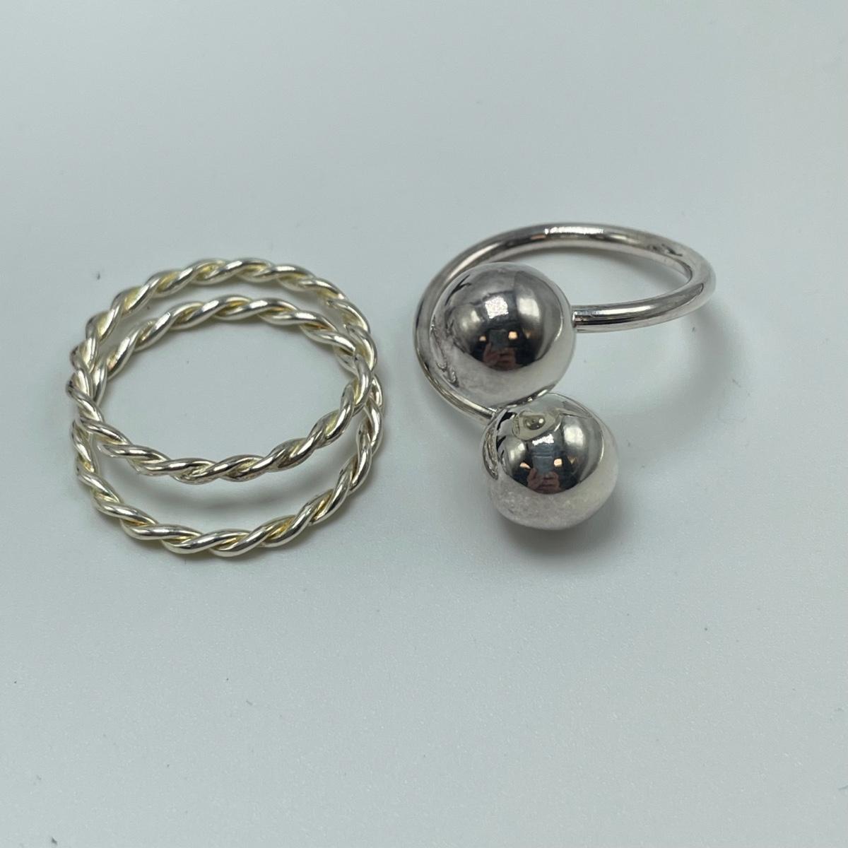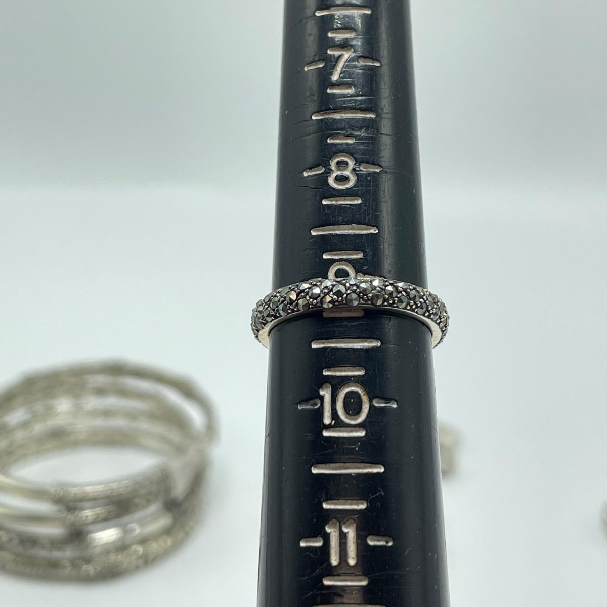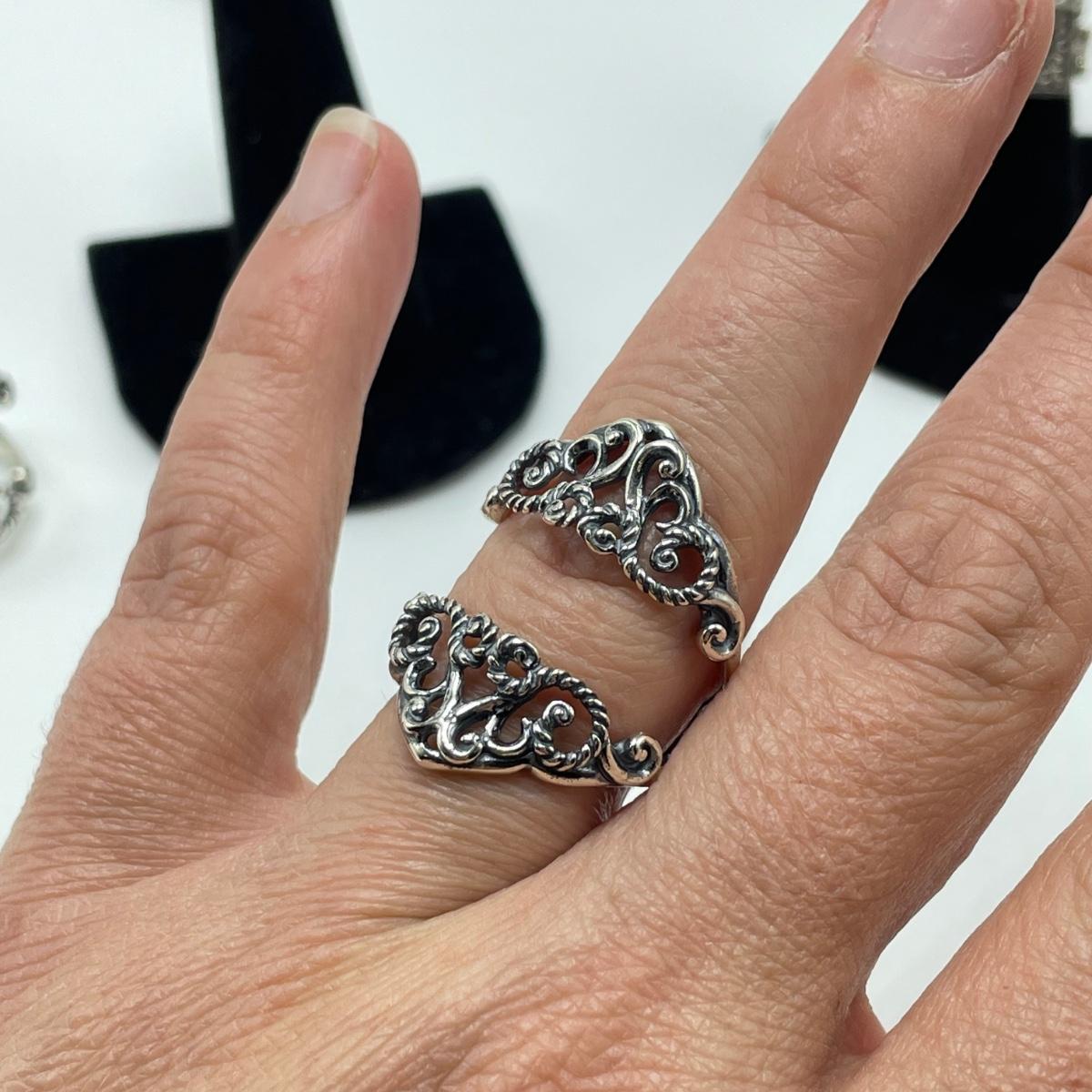 Two pendants and four 2.5”D hinged bracelets appear to be marked Sarda 925. Lot features 13 rings marked 925 and three more unmarked rings. One of the 925 rings is also stamped Jai 14K and appears to have golden accents with the silver design. Many of the rings are marked Sarda as well. See images for markings and sizes. Rings will look great by themselves, but most can be stacked in a variety of styles. Please see photos for all markings found. Starting bid is at or near melt value. All sales are final. No returns or refunds. Please bid accordingly.