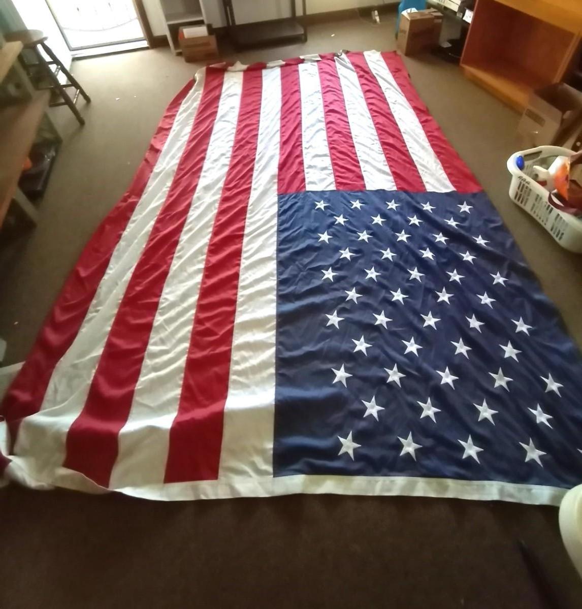 APPROX. 90X144" BOTH BOTTOM CORNERS ARE SLIGHTLY TORN