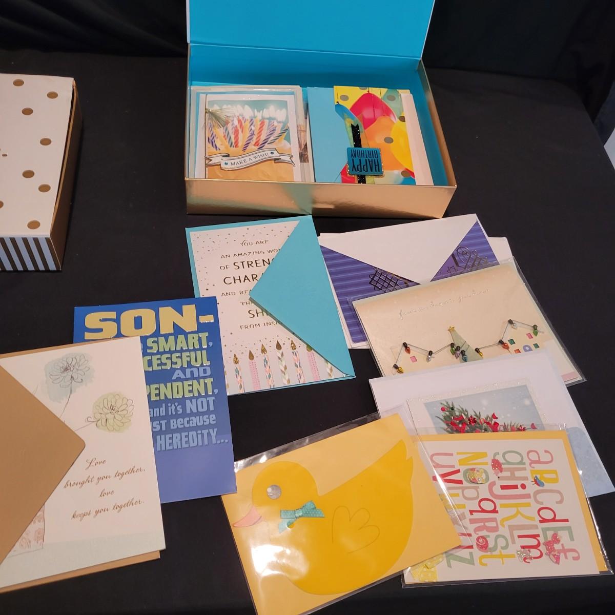 A huge assortment of decorative papers, wrapping paper, and cards for almost any occasion. Includes books on calligraphy, rice papers, and unopened rolls of wrapping paper. See photos for complete inventory. Local pickup only