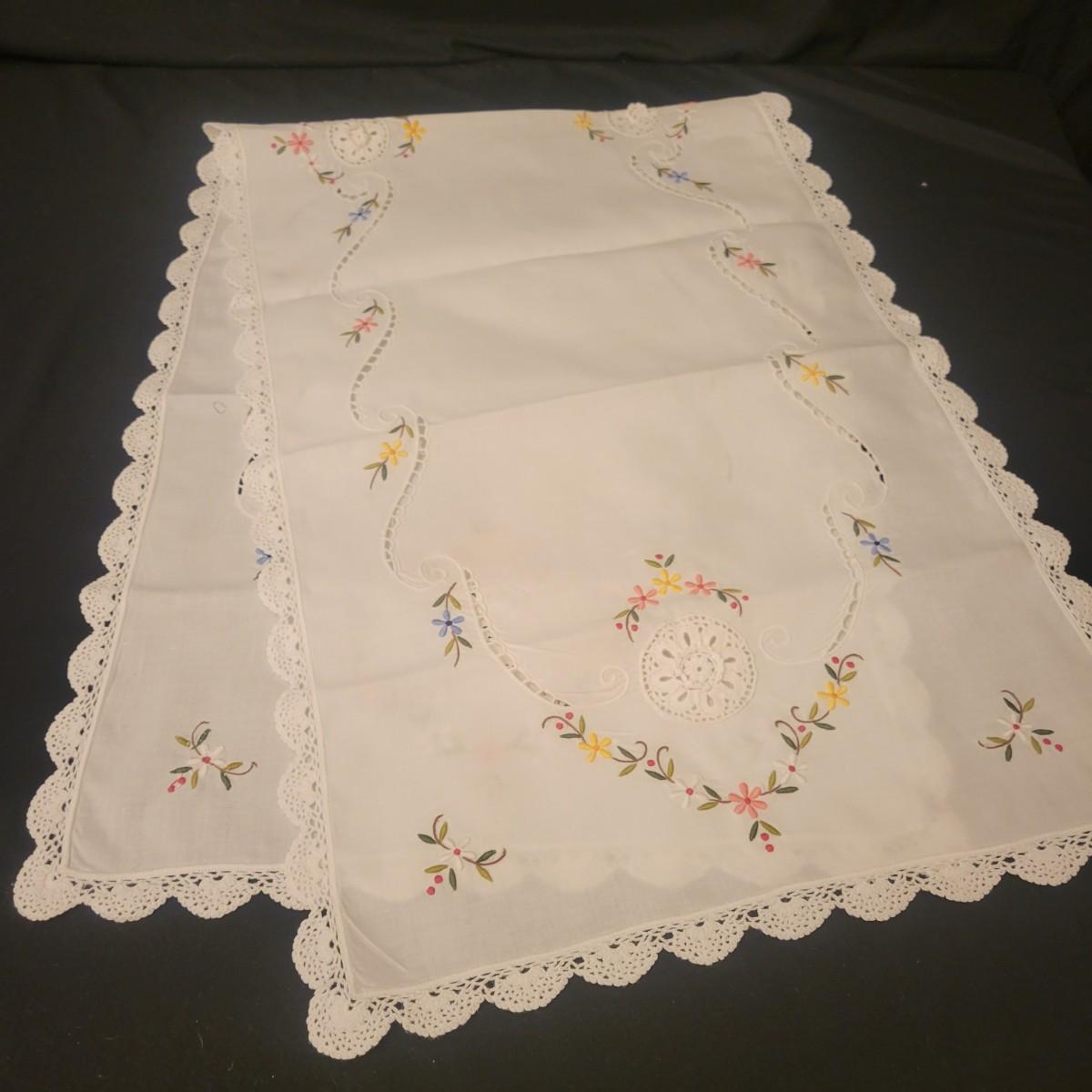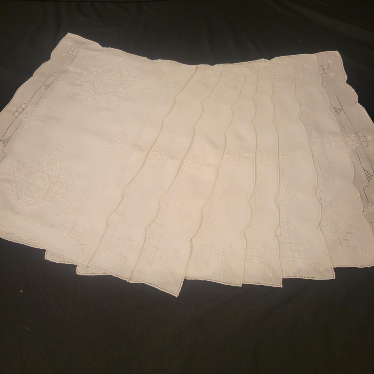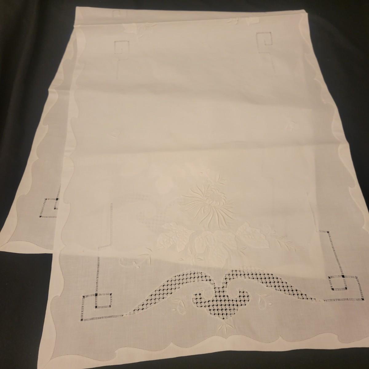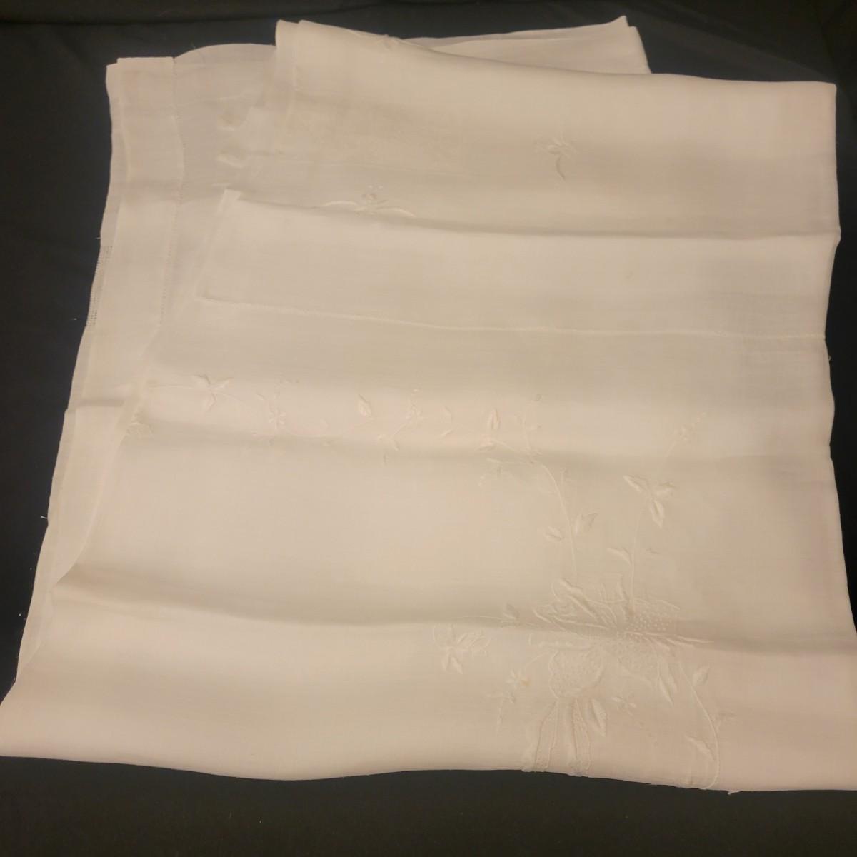 A very large assortment of high quality cotton linens in good shape. There is some staining on various pieces as they have been used, but all items have been stored well, washed and starched. Included are place mats, table runners, decorative doilies, pillow cases, handkerchiefs and so much more. See attached pictures for full inventory. Runners average 18" x 50". Many pieces are embroidered and have lace edges. Shipping available. Shipping can be costly please call UPS store at 828-252-6930 for quote.