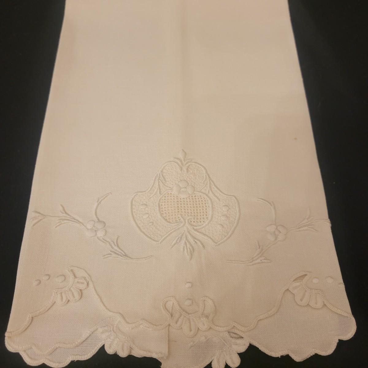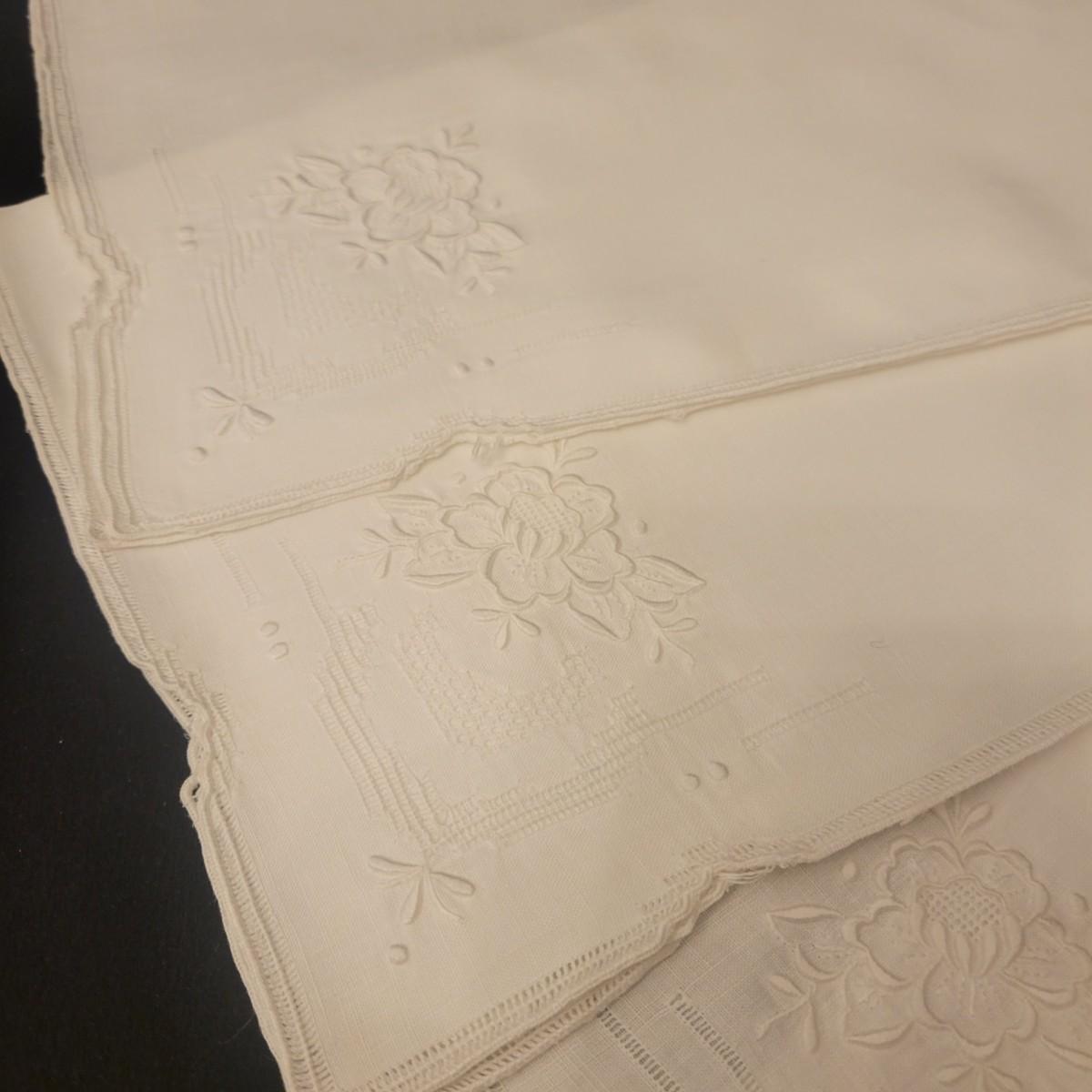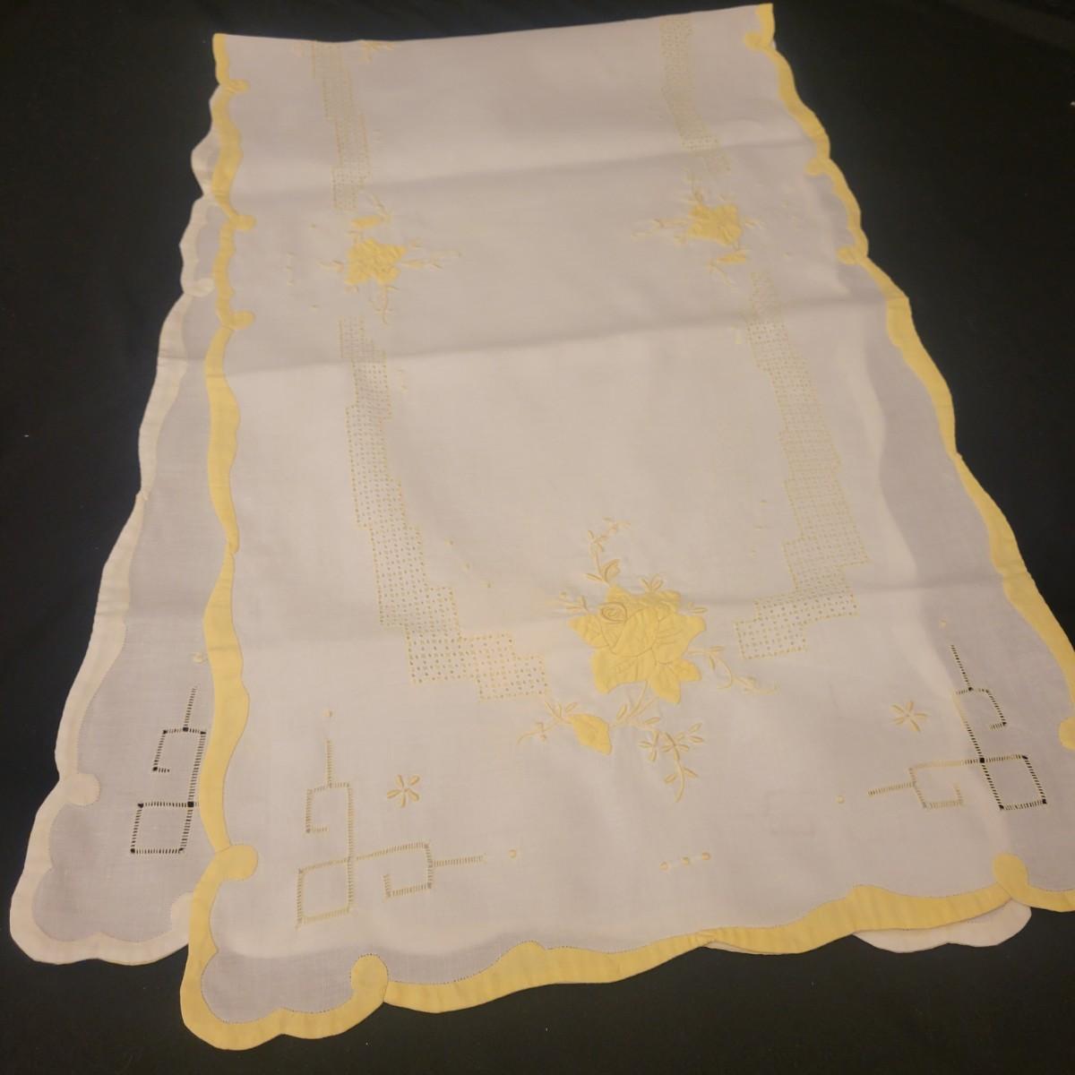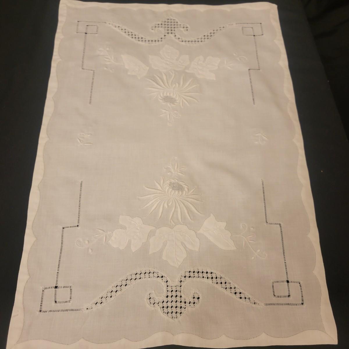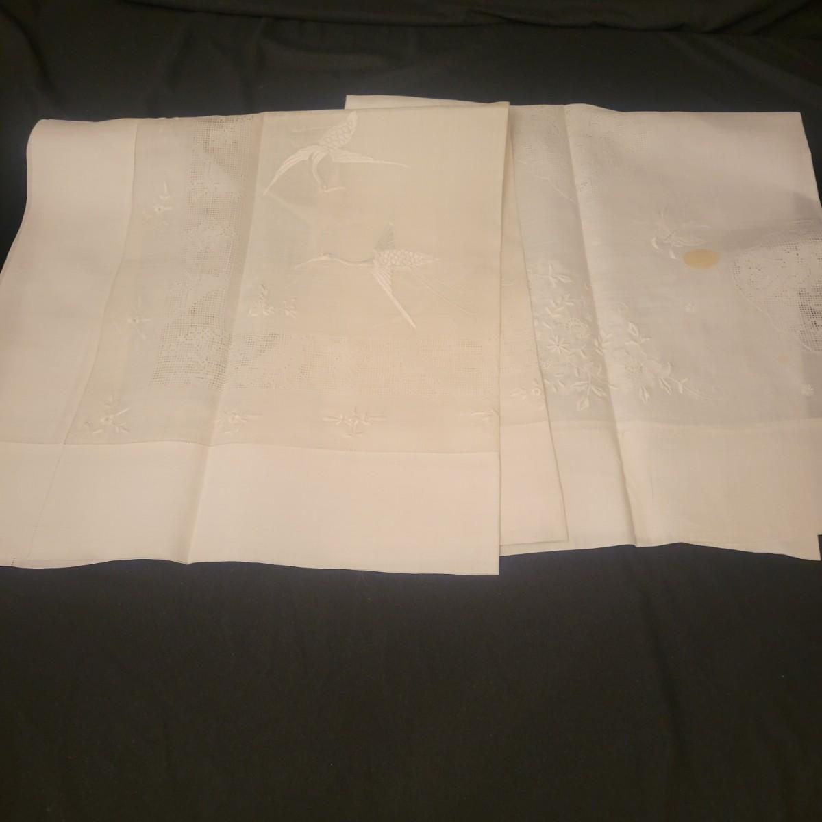 A very large assortment of high quality cotton linens in good shape. There is some staining on various pieces as they have been used, but all items have been stored well, washed and starched. Included are place mats, table runners, decorative doilies, pillow cases, handkerchiefs and so much more. See attached pictures for full inventory. Runners average 18" x 50". Many pieces are embroidered and have lace edges. Shipping available. Shipping can be costly please call UPS store at 828-252-6930 for quote.