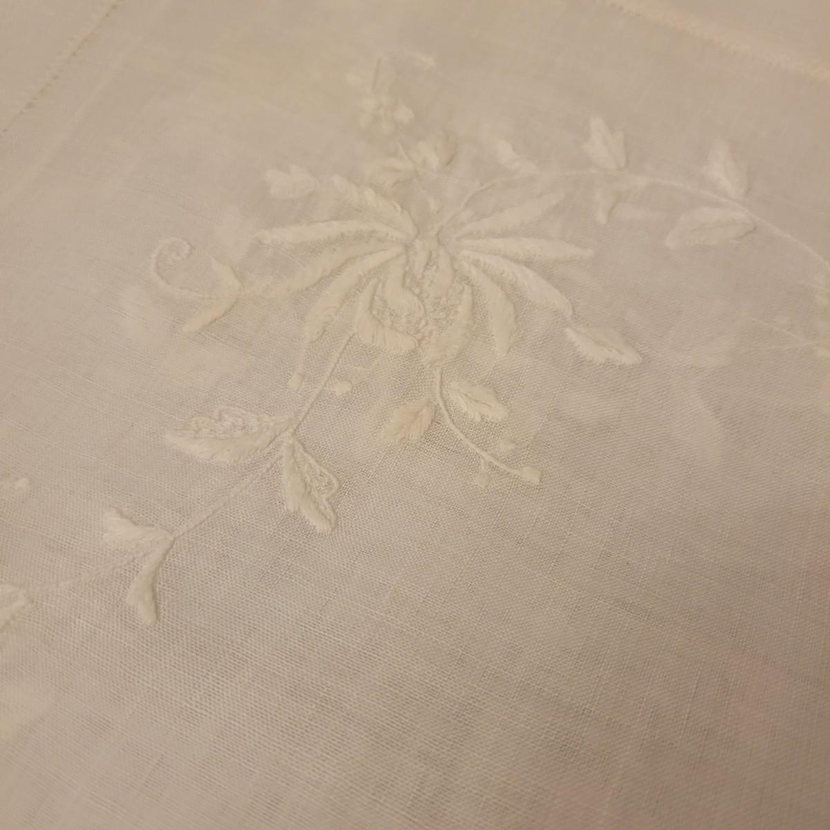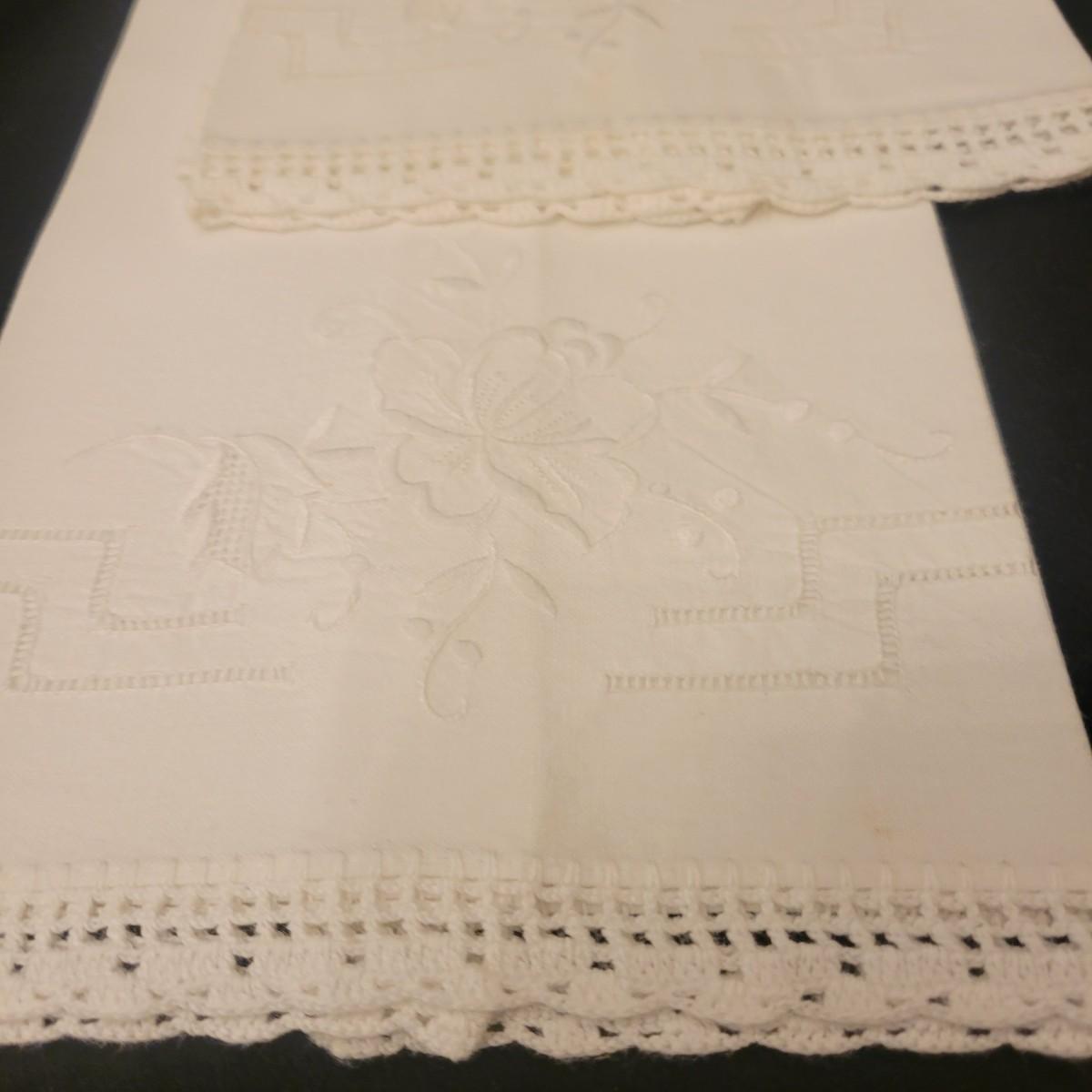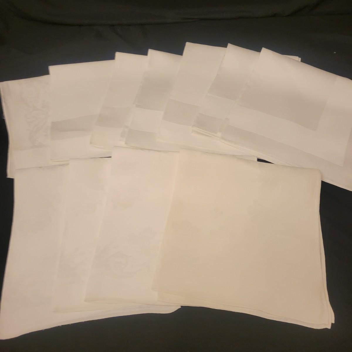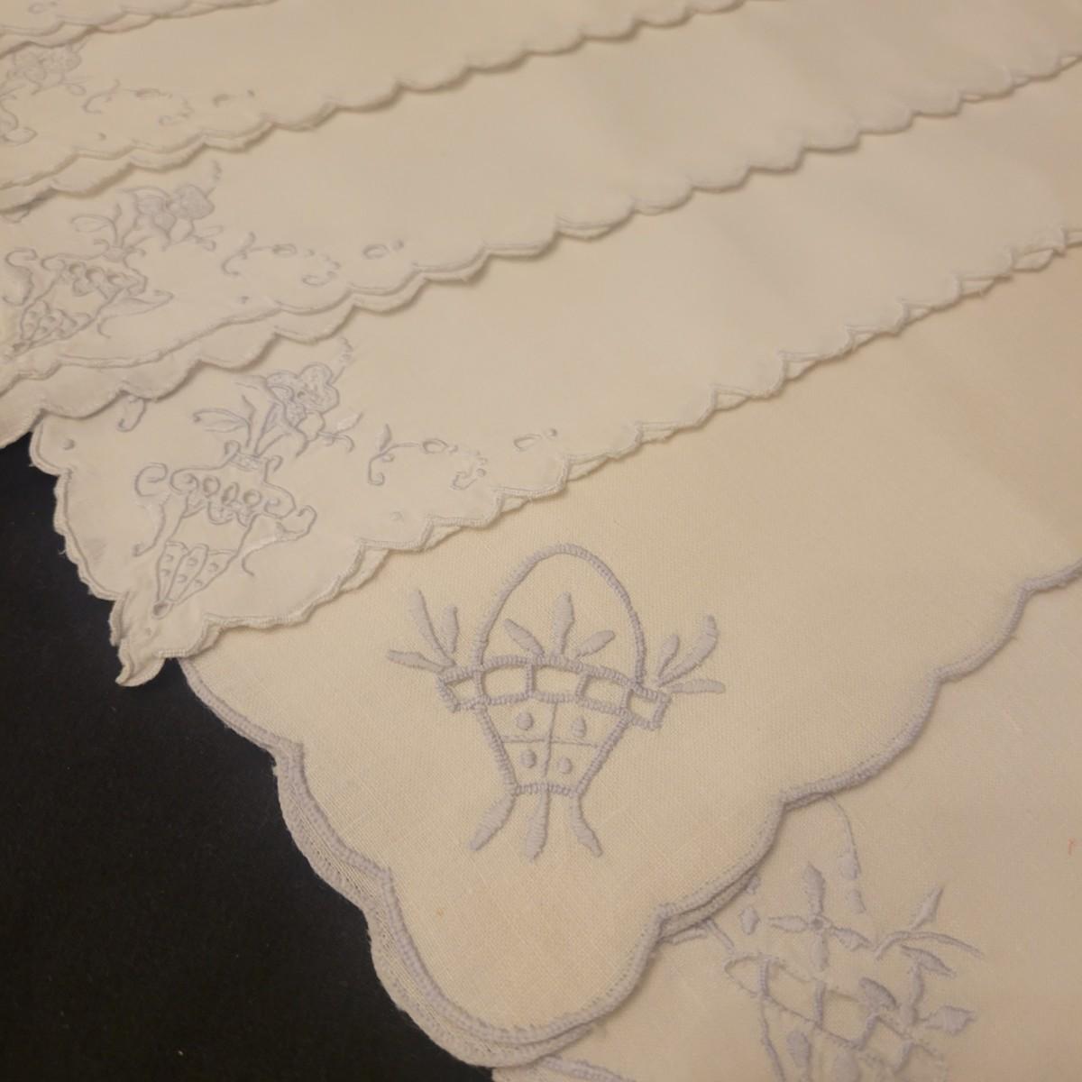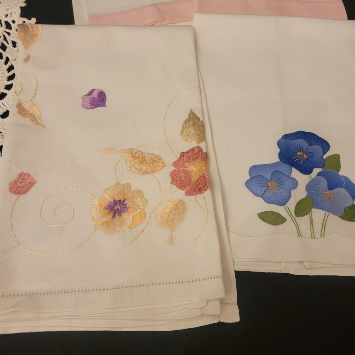 A very large assortment of high quality cotton linens in good shape. There is some staining on various pieces as they have been used, but all items have been stored well, washed and starched. Included are place mats, table runners, decorative doilies, pillow cases, handkerchiefs and so much more. See attached pictures for full inventory. Runners average 18" x 50". Many pieces are embroidered and have lace edges. Shipping available. Shipping can be costly please call UPS store at 828-252-6930 for quote.