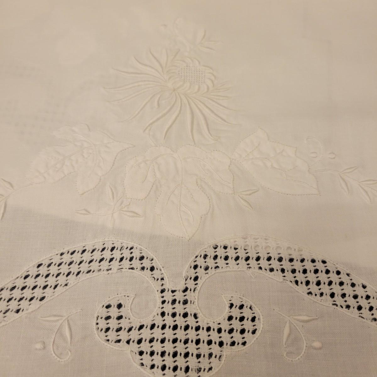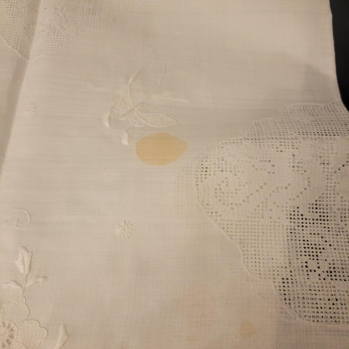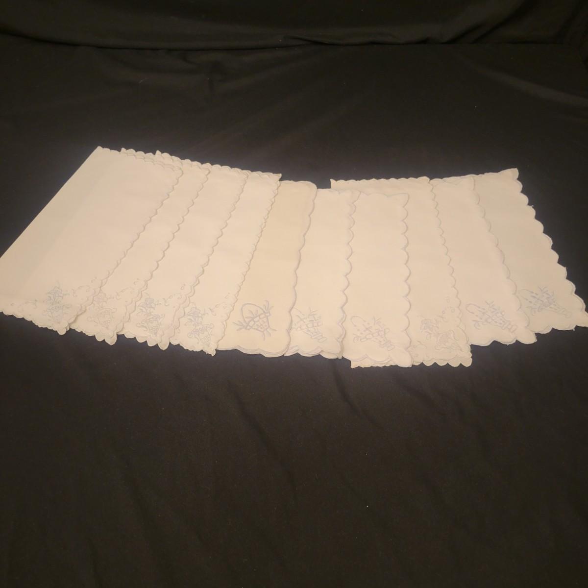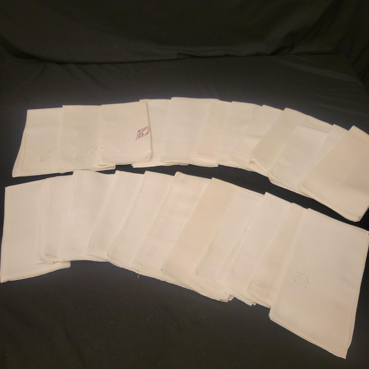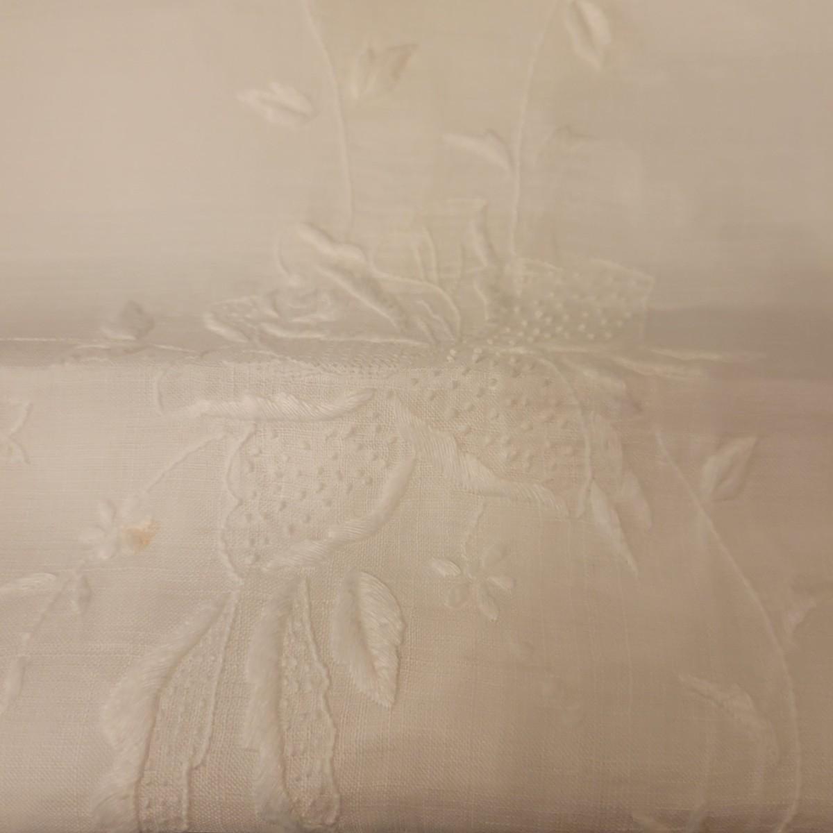 A very large assortment of high quality cotton linens in good shape. There is some staining on various pieces as they have been used, but all items have been stored well, washed and starched. Included are place mats, table runners, decorative doilies, pillow cases, handkerchiefs and so much more. See attached pictures for full inventory. Runners average 18" x 50". Many pieces are embroidered and have lace edges. Shipping available. Shipping can be costly please call UPS store at 828-252-6930 for quote.