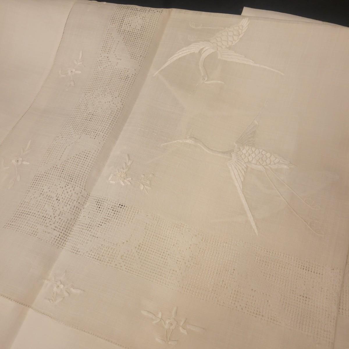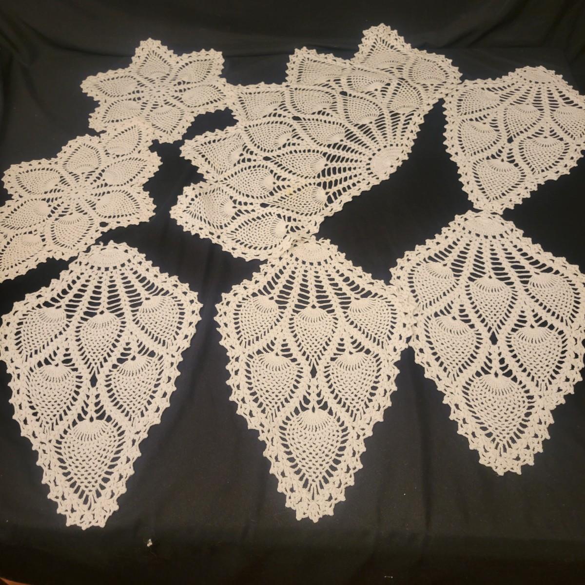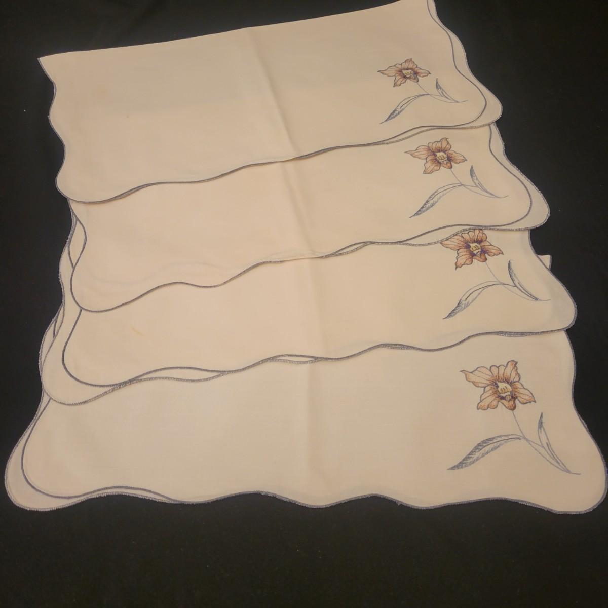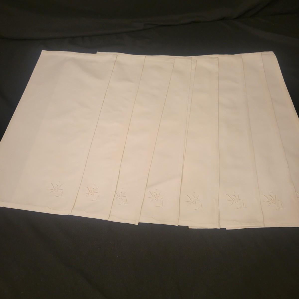 A very large assortment of high quality cotton linens in good shape. There is some staining on various pieces as they have been used, but all items have been stored well, washed and starched. Included are place mats, table runners, decorative doilies, pillow cases, handkerchiefs and so much more. See attached pictures for full inventory. Runners average 18" x 50". Many pieces are embroidered and have lace edges. Shipping available. Shipping can be costly please call UPS store at 828-252-6930 for quote.
