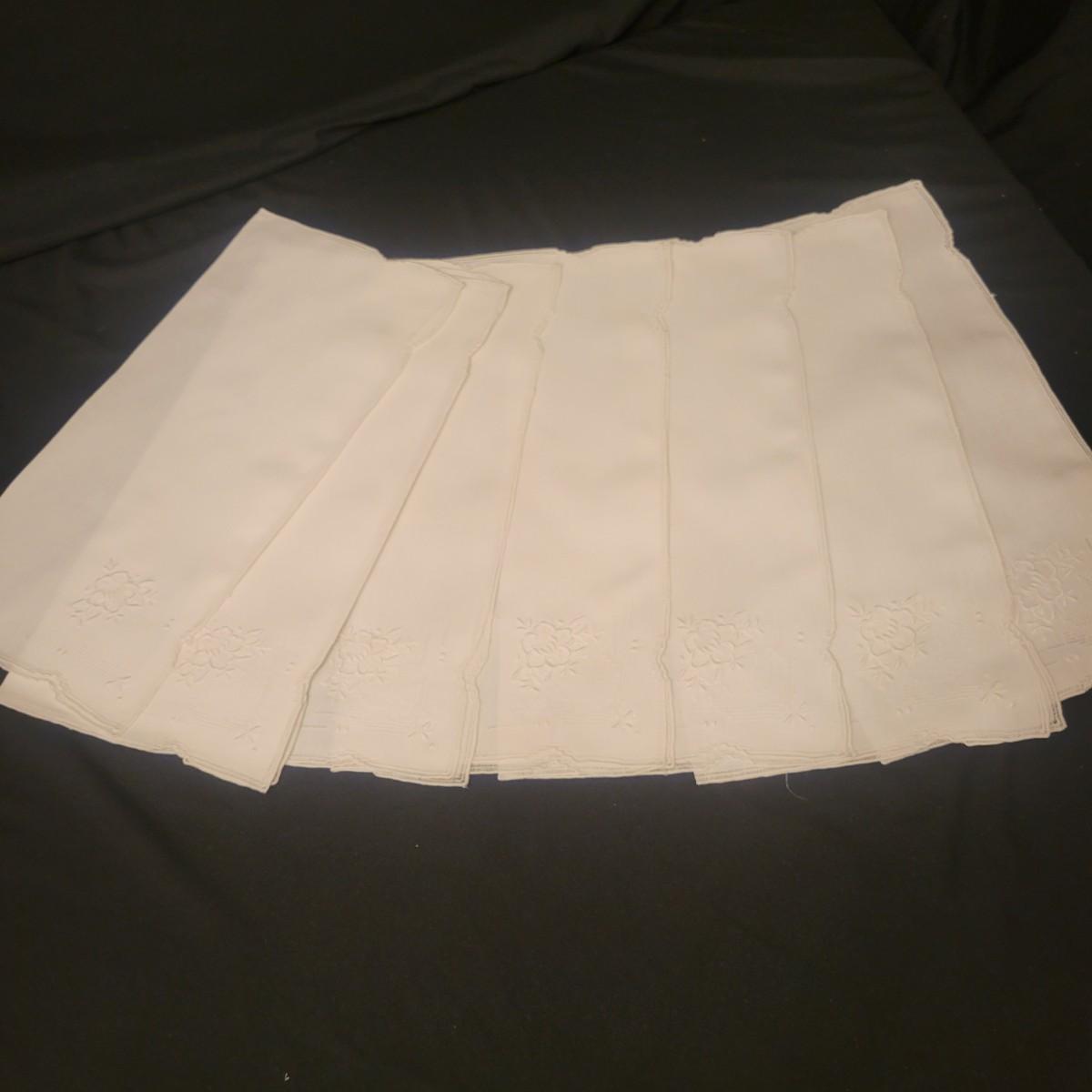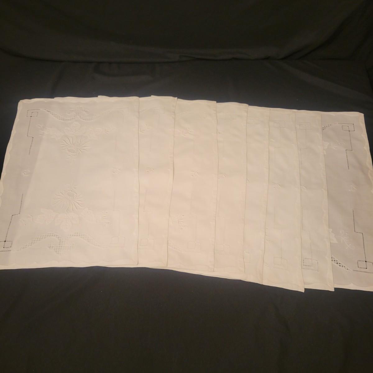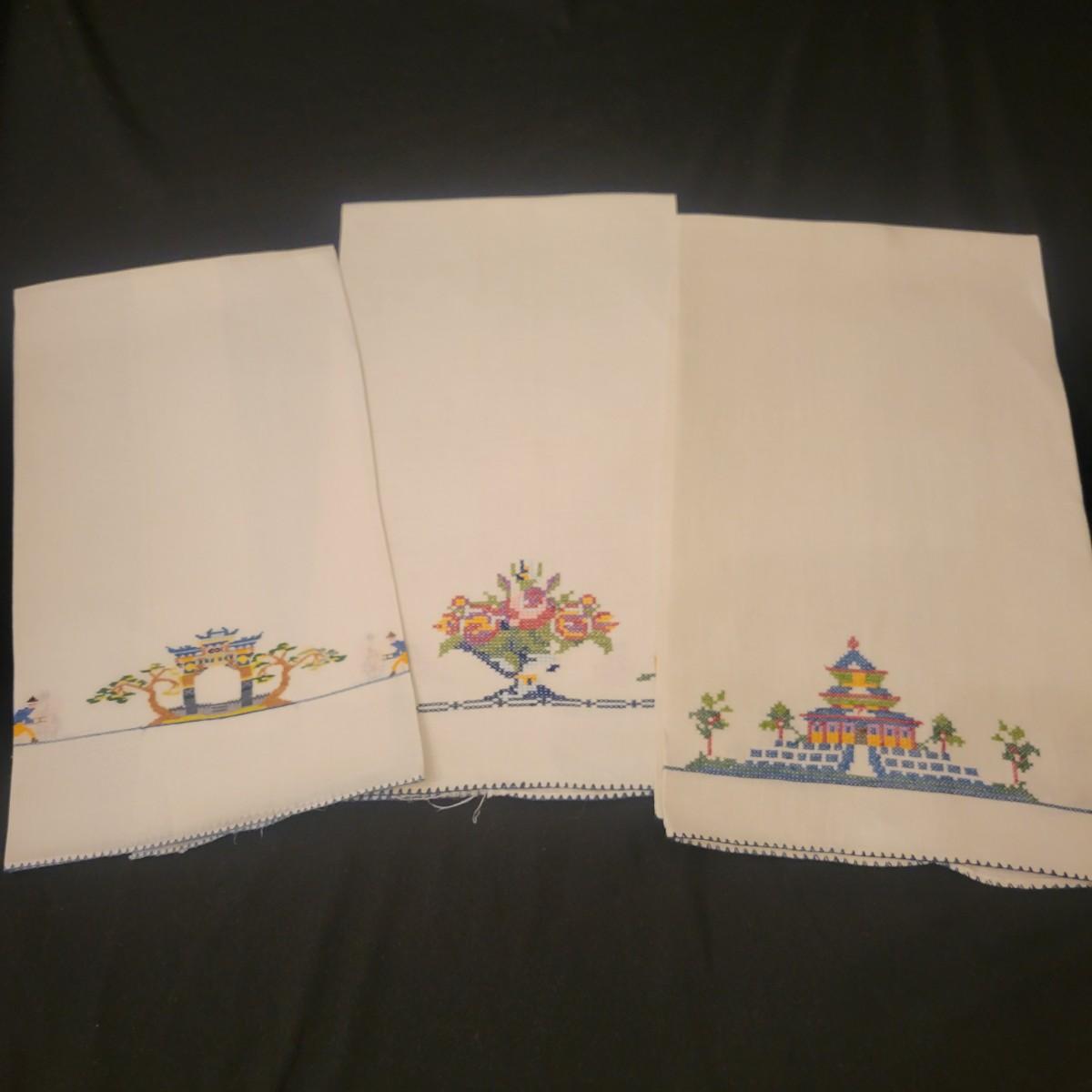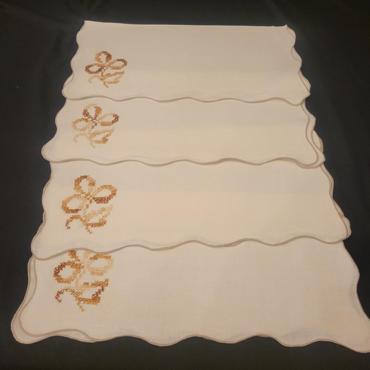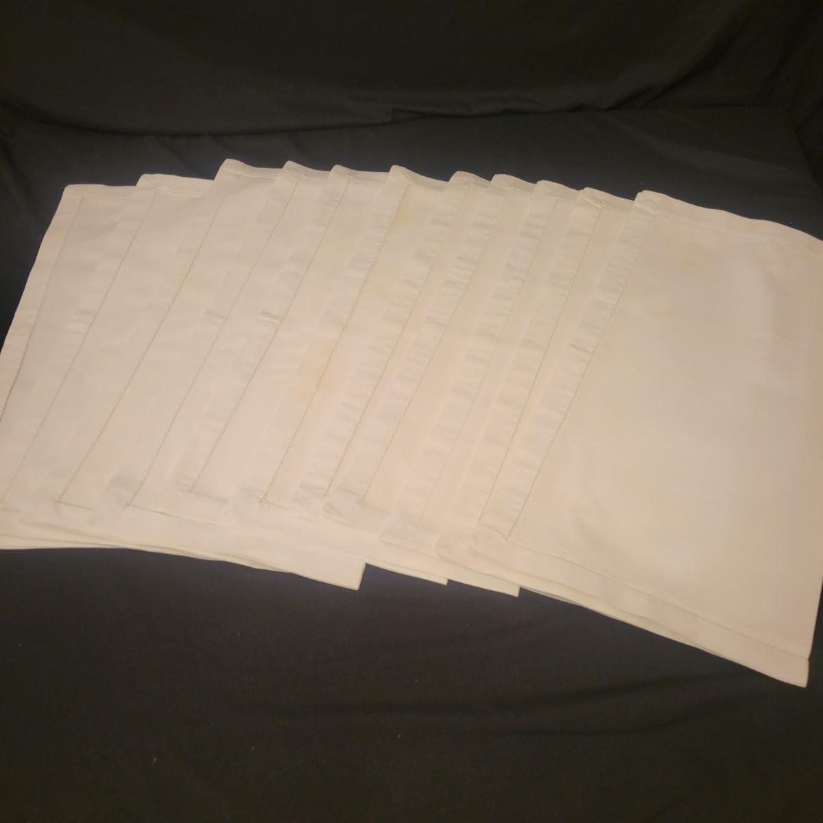 A very large assortment of high quality cotton linens in good shape. There is some staining on various pieces as they have been used, but all items have been stored well, washed and starched. Included are place mats, table runners, decorative doilies, pillow cases, handkerchiefs and so much more. See attached pictures for full inventory. Runners average 18" x 50". Many pieces are embroidered and have lace edges. Shipping available. Shipping can be costly please call UPS store at 828-252-6930 for quote.
