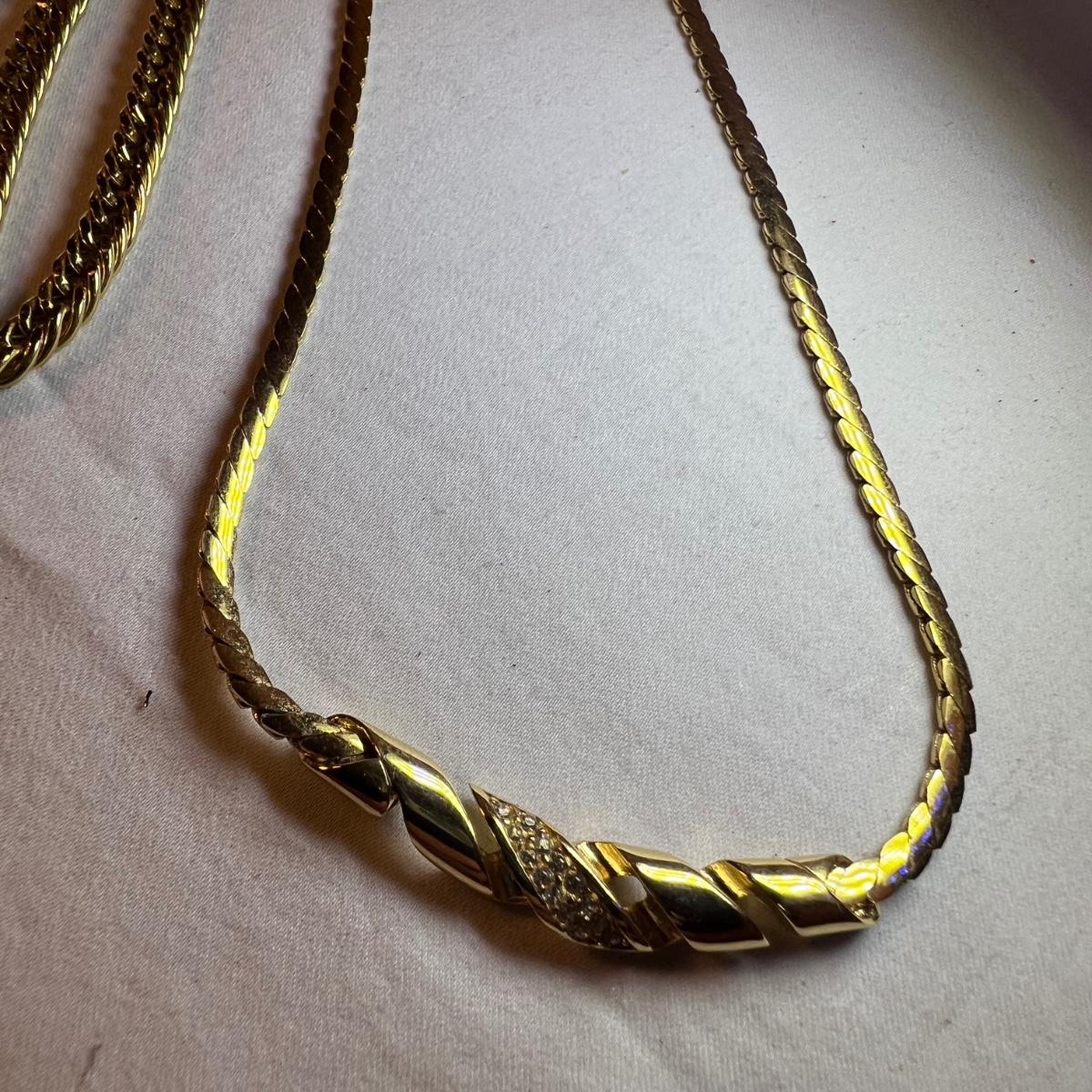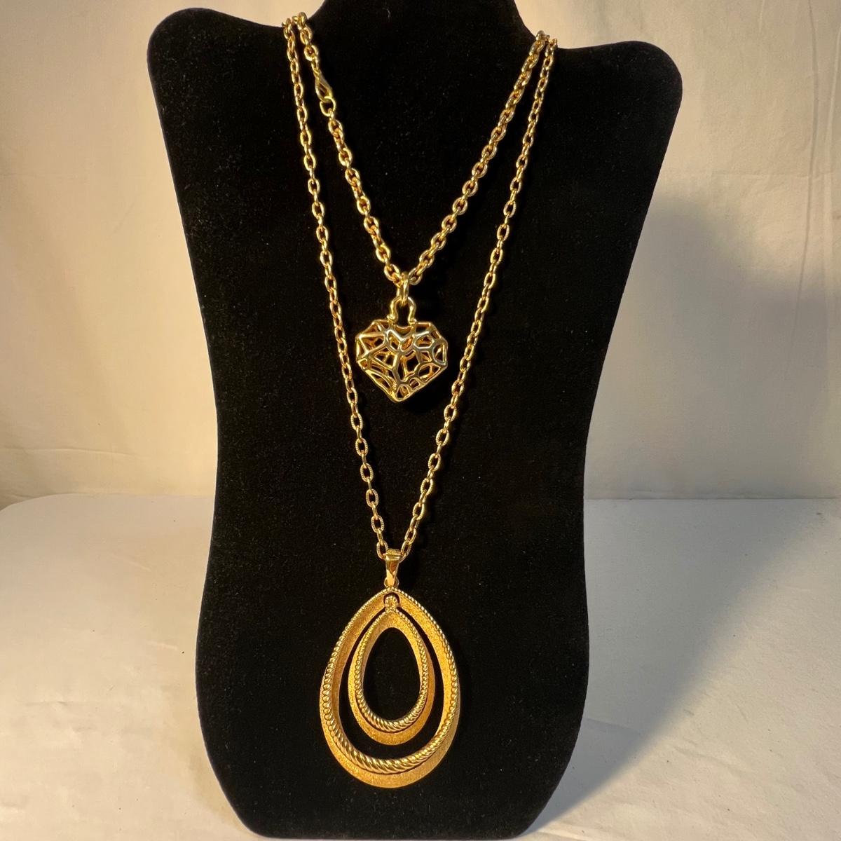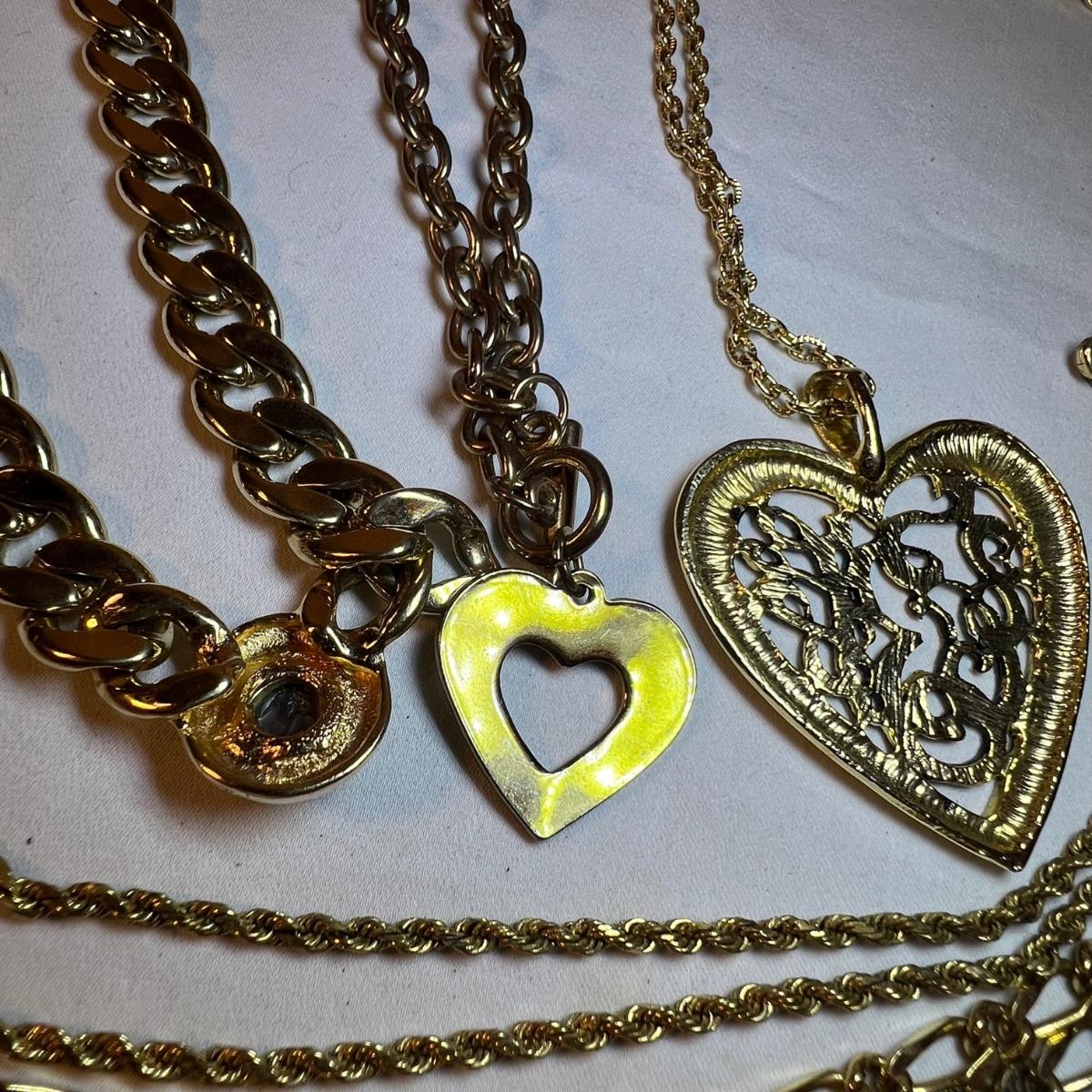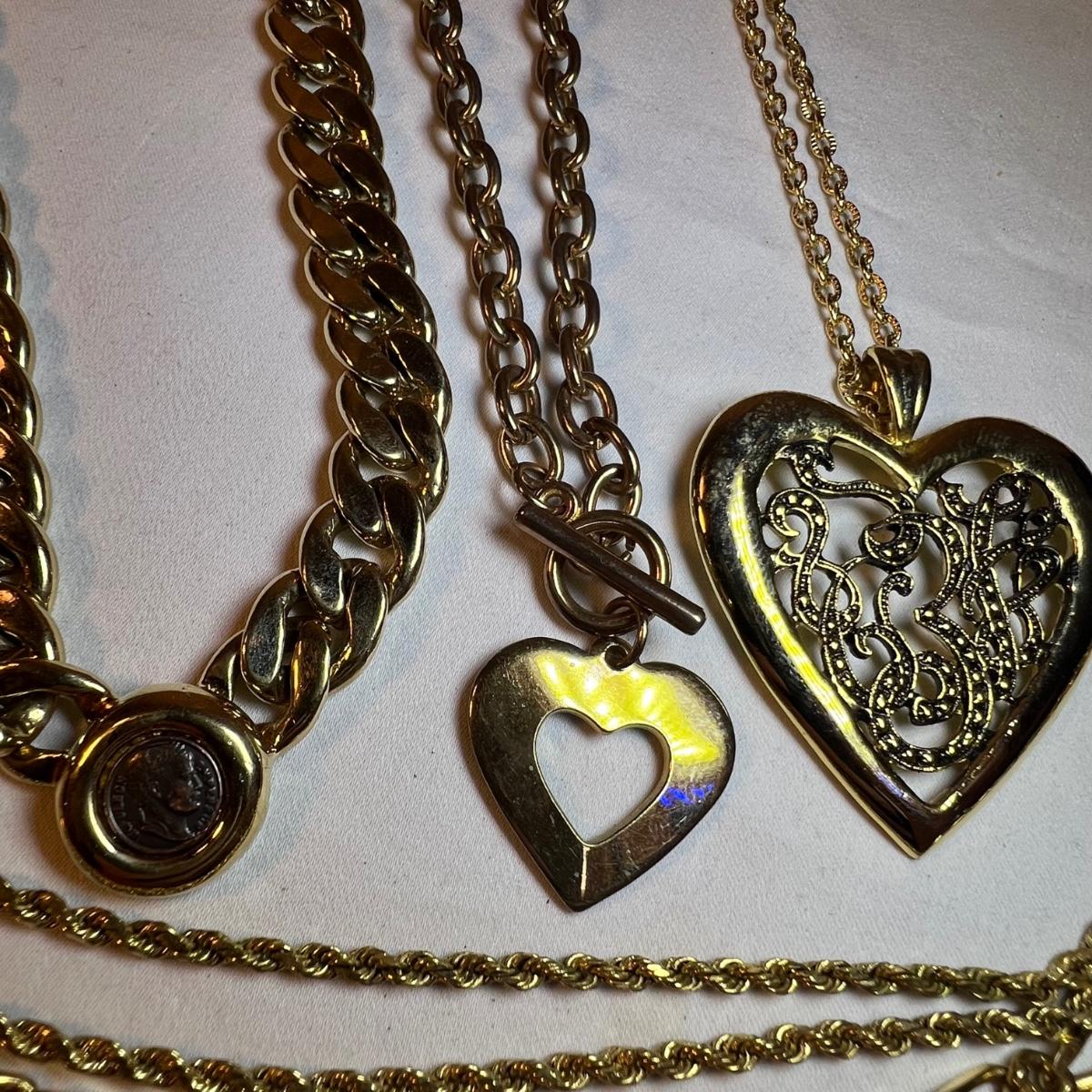Approximately 40 bracelets and 68 necklaces, all gold toned fashion pieces. Some have simulated diamonds. Necklaces range in length from 16” to 52” long. See images for full inventory. All sales are final, no refunds so please bid accordingly.