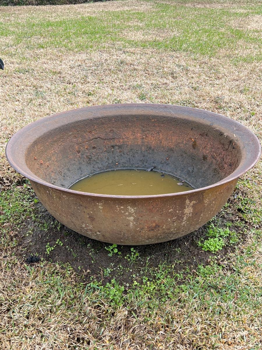 Has no leaks or holes, has surface rust ~ Super heavy, bring help, no joke bring lots of help ~ 20” H x 48” Round