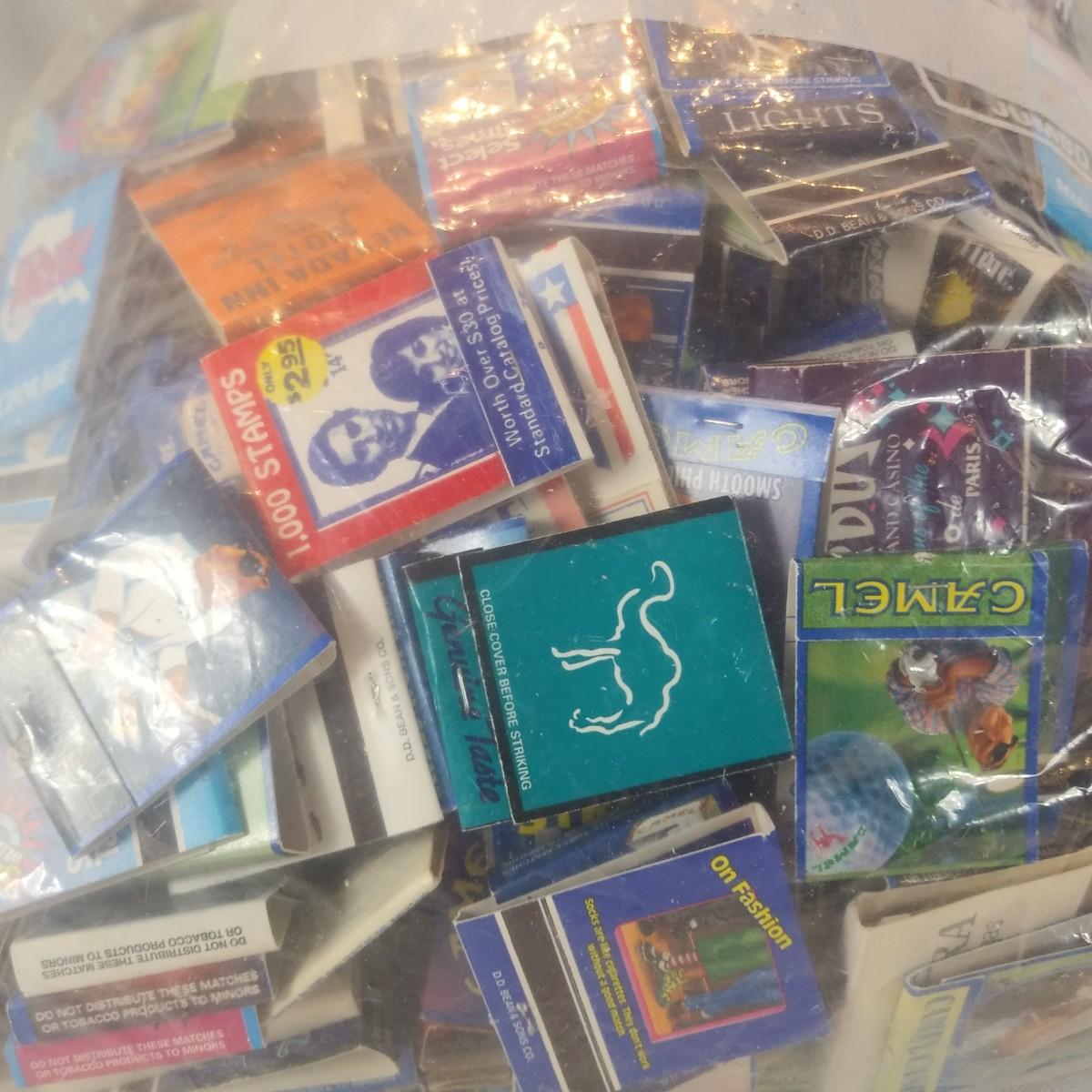 This auction lot is for a Huge Bag of Vintage Match Books. Vintage match books from all types of businesses and advertising. There are a lot of cigarette advertising ones along with souvenir match books. NOTE: Match books must be shipped as a hazardous material and will incur additional costs. Bid accordingly.