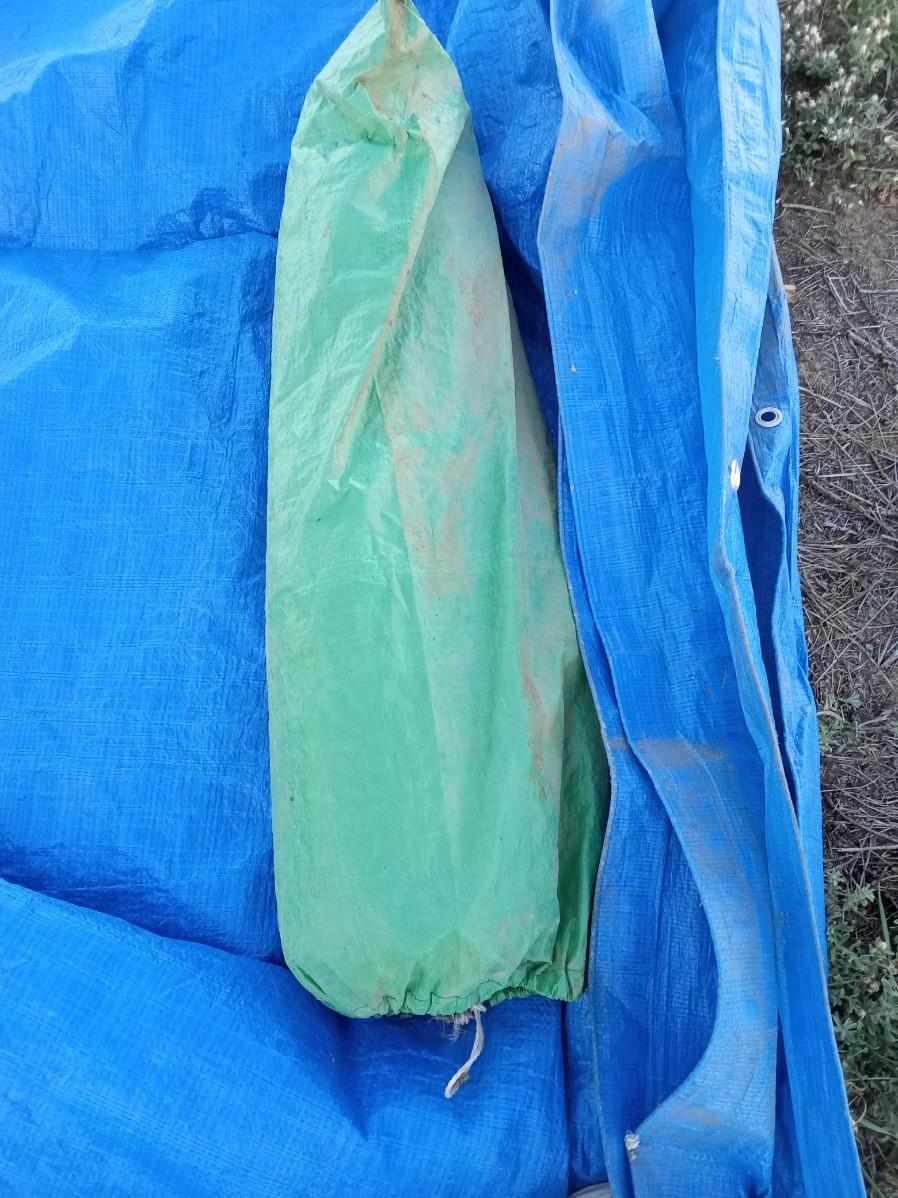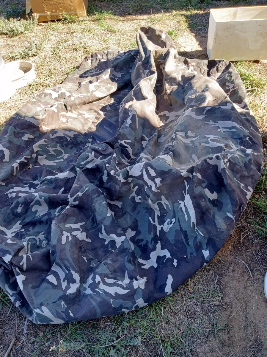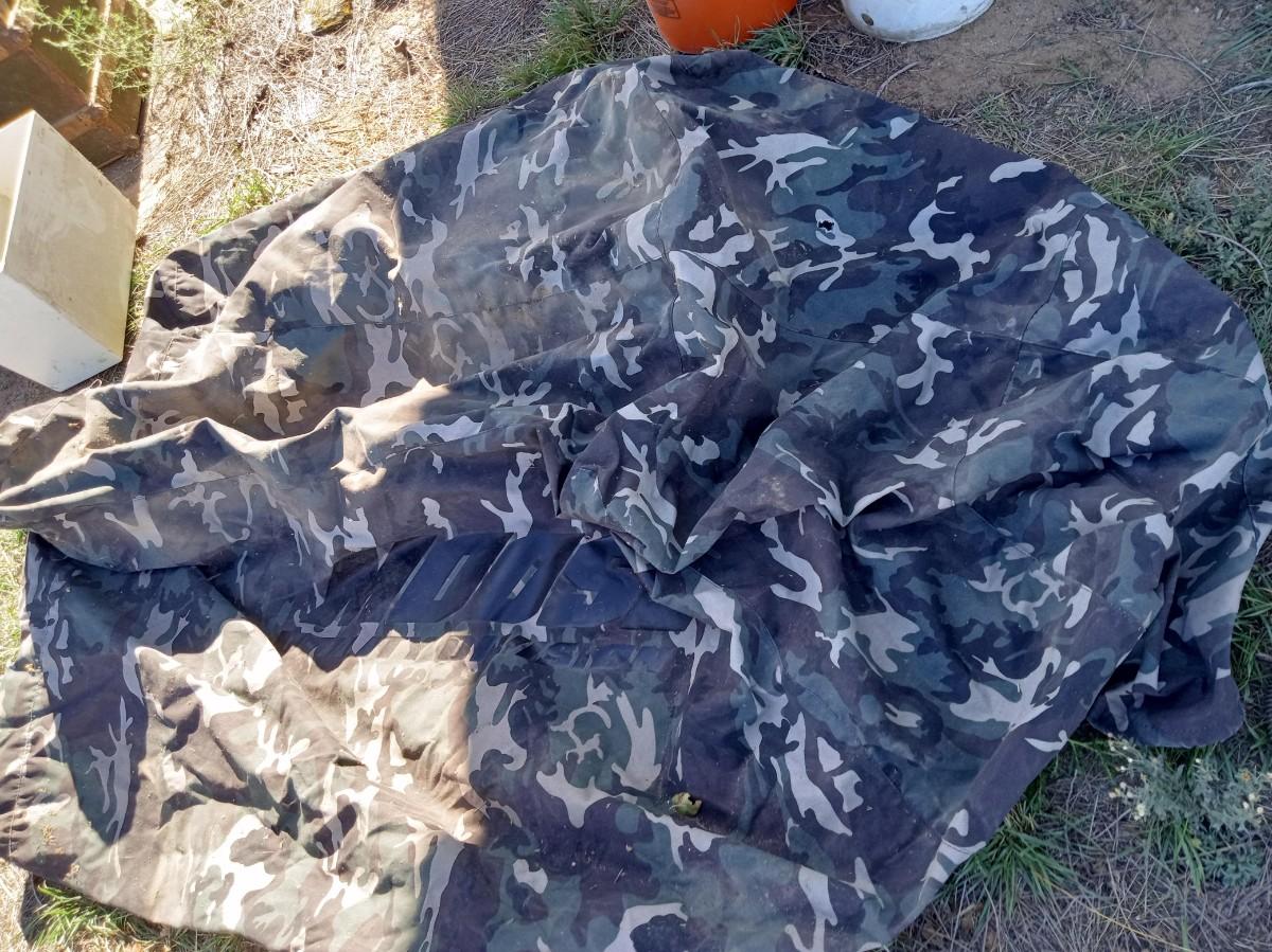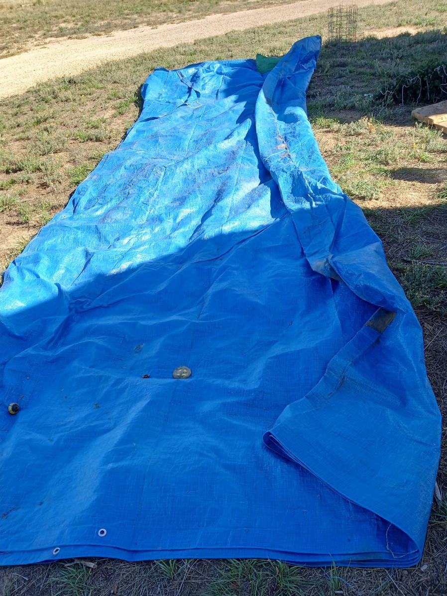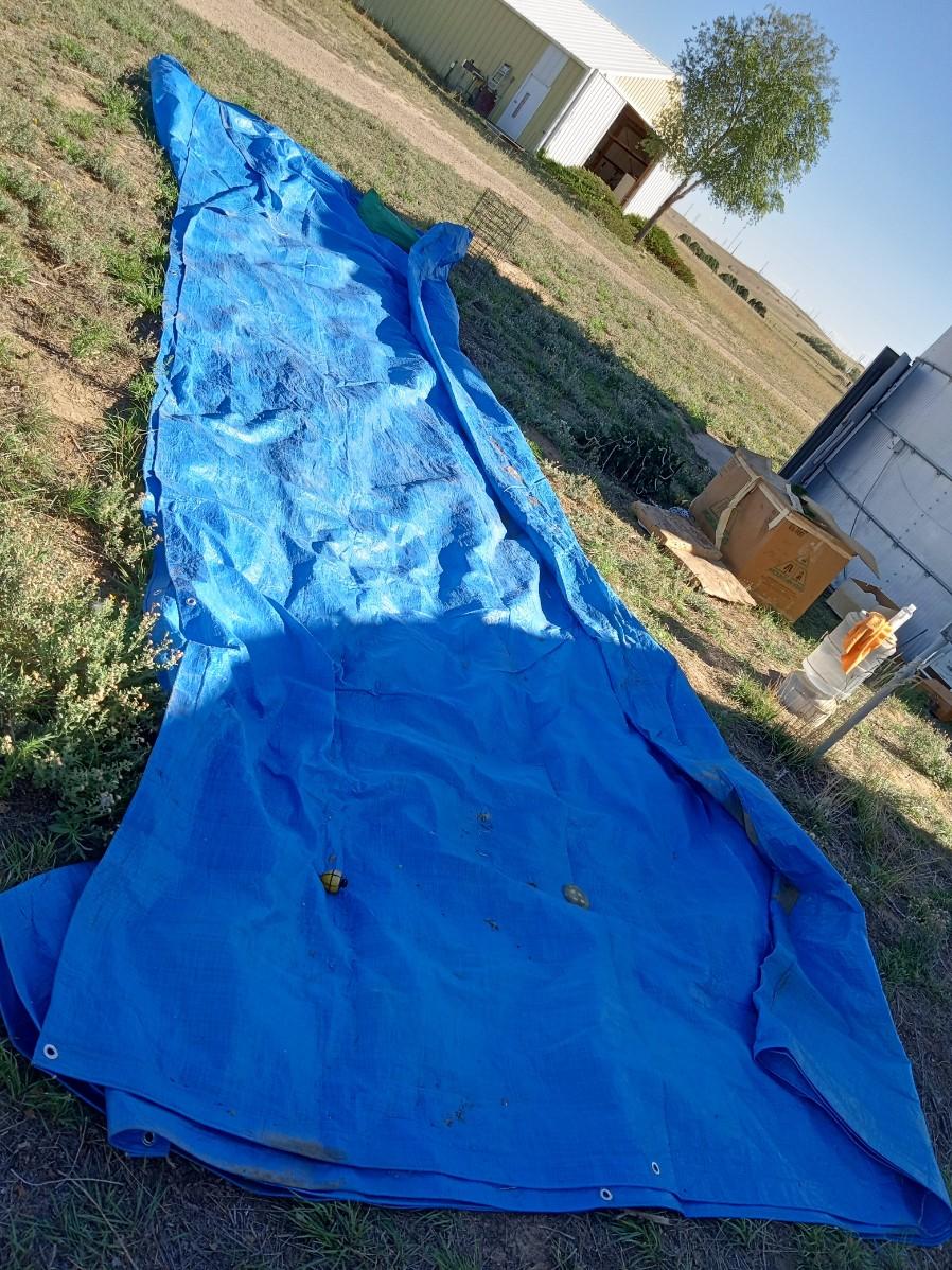 IN THIS PICTURE THE BLUE TARP IS FOLDED TWICE SO ITS WIDTH IS 4 TIMES WHAT IS PICTURED, IT DOES HAVE A FEW SMALL HOLES