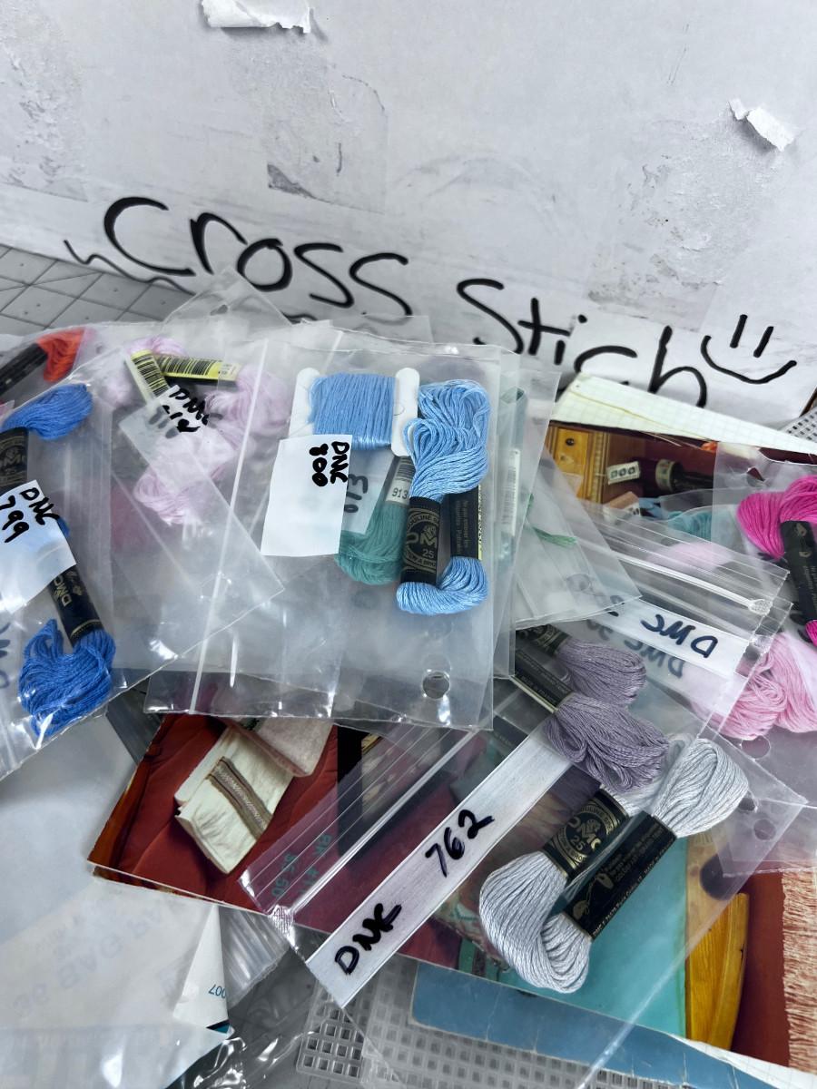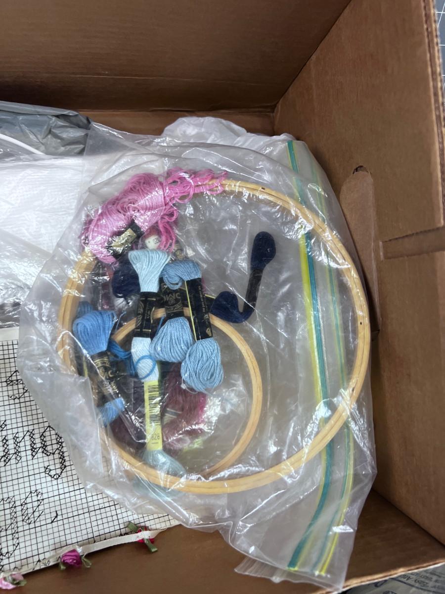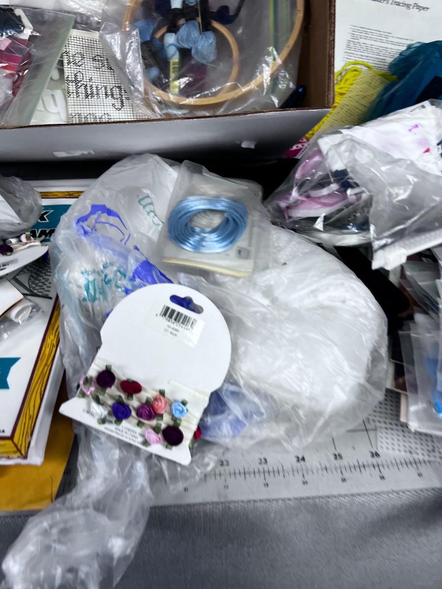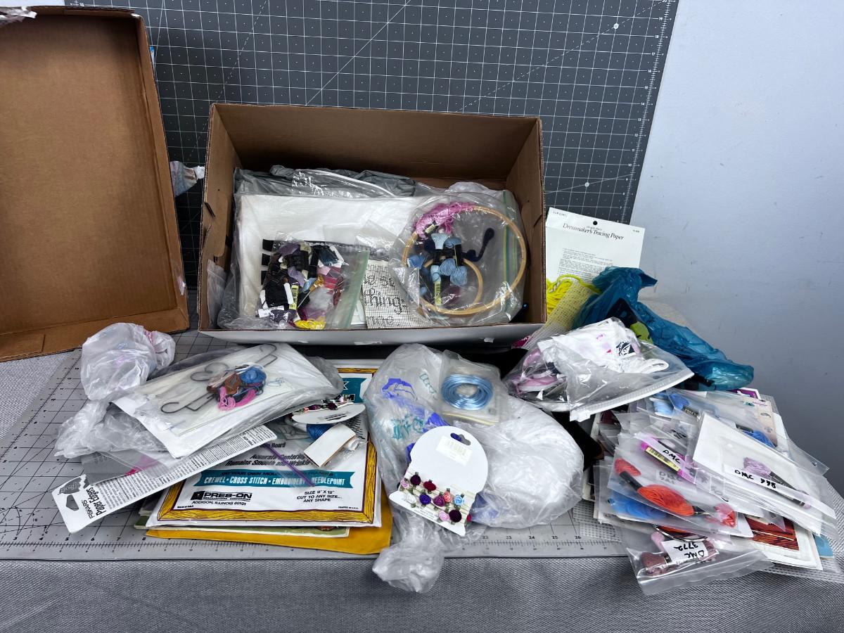 HUGE Box of Cross Stitch Supplies; Thread, Patterns Etc.