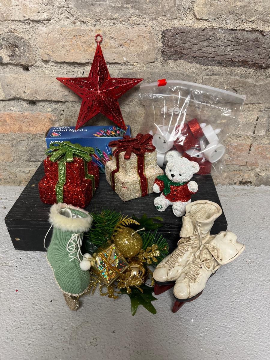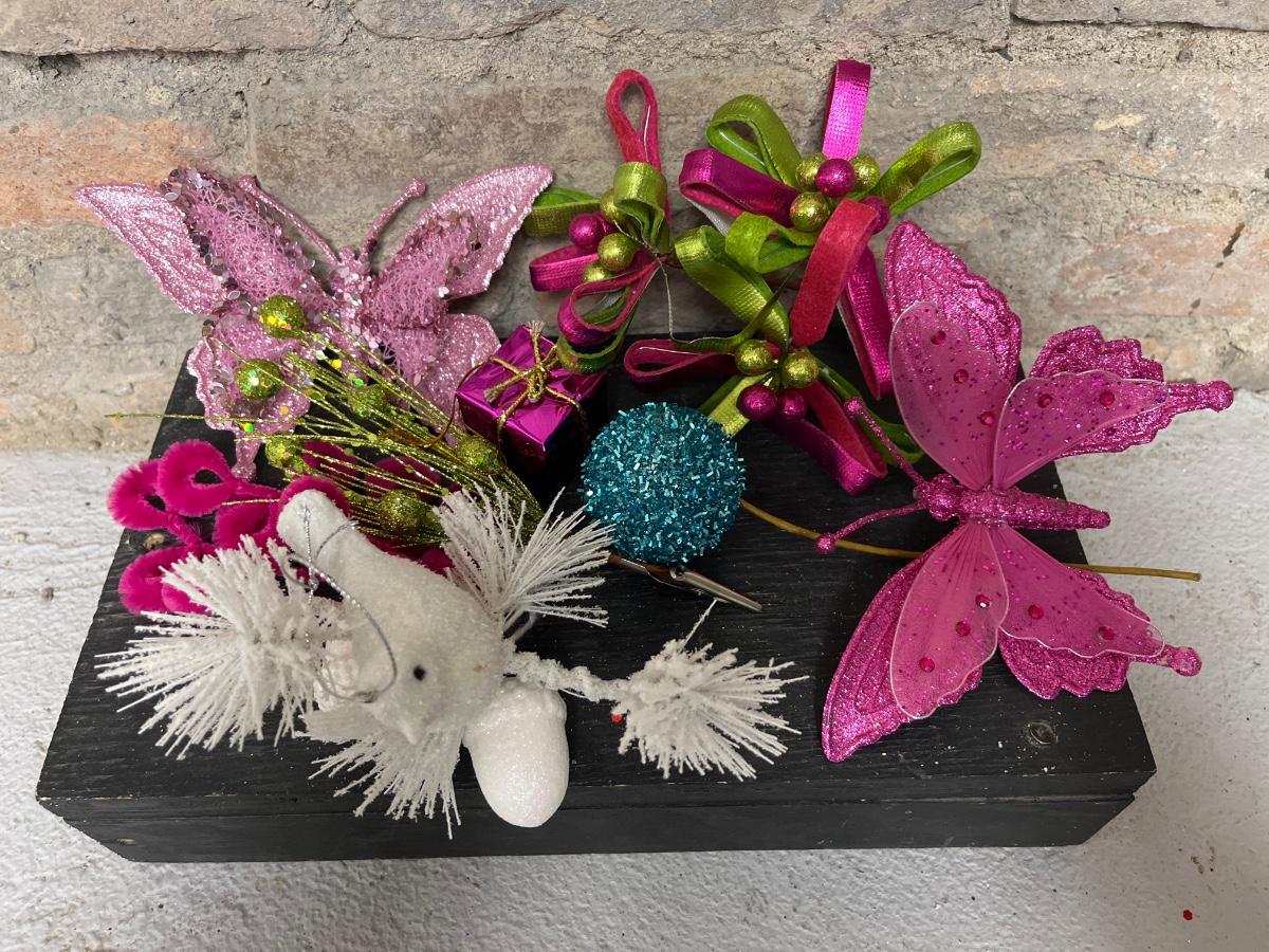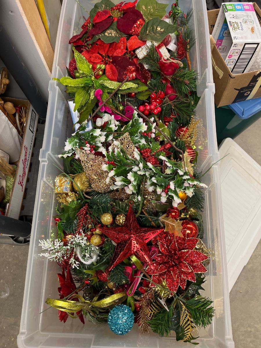 Too many items to list! Tons of decorative sprays and picks, assorted ornaments. Lots of great stuff!