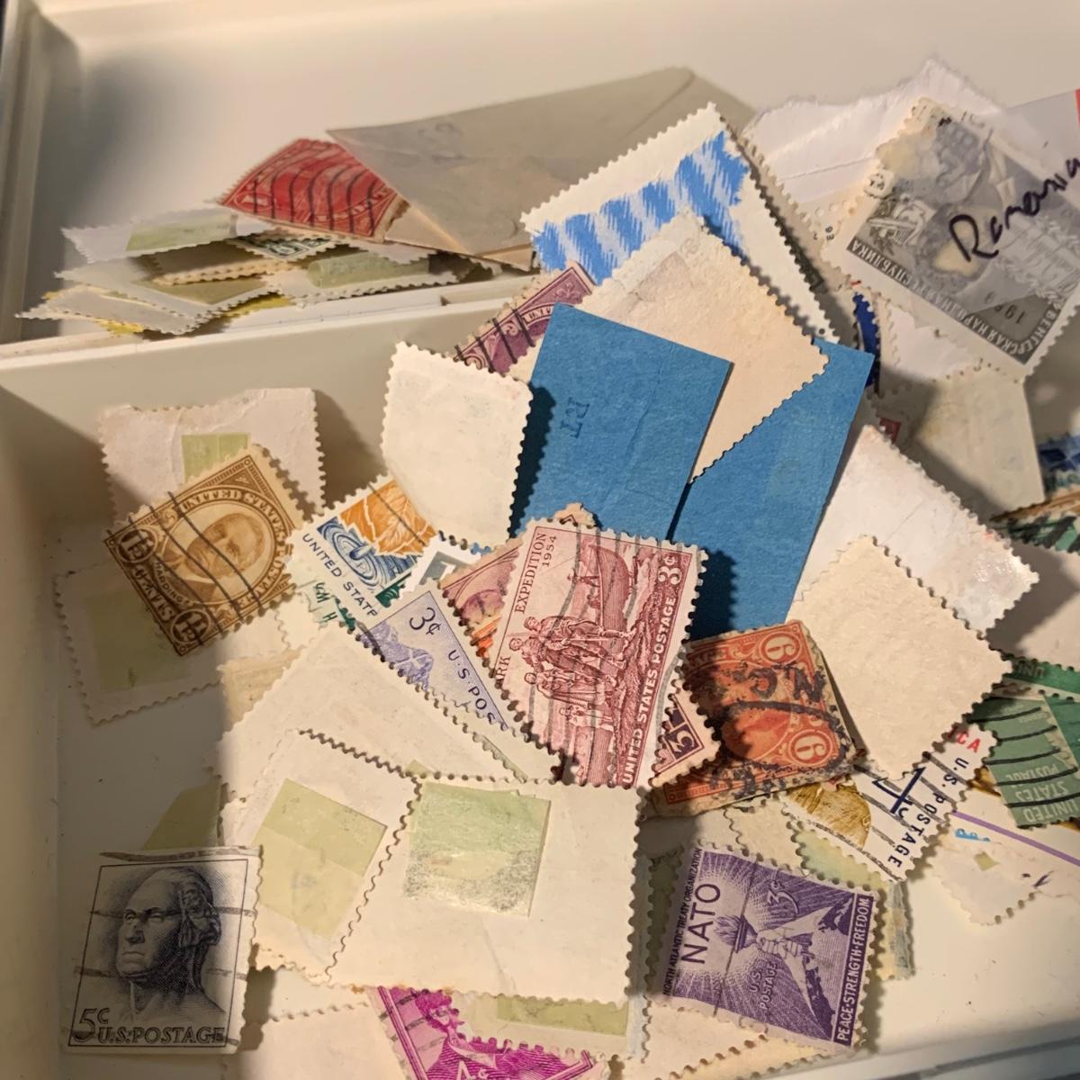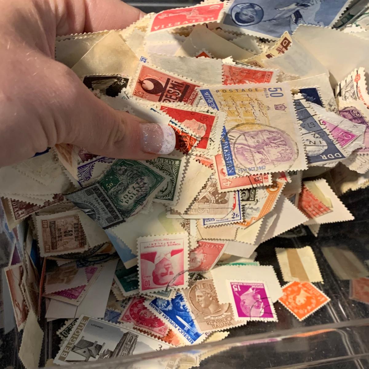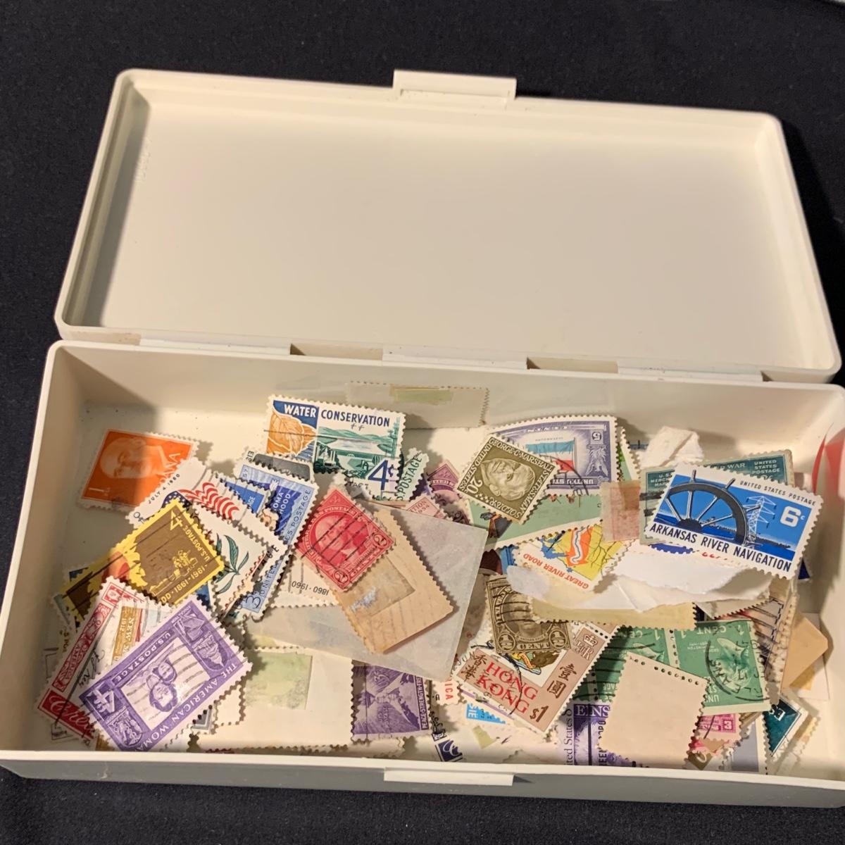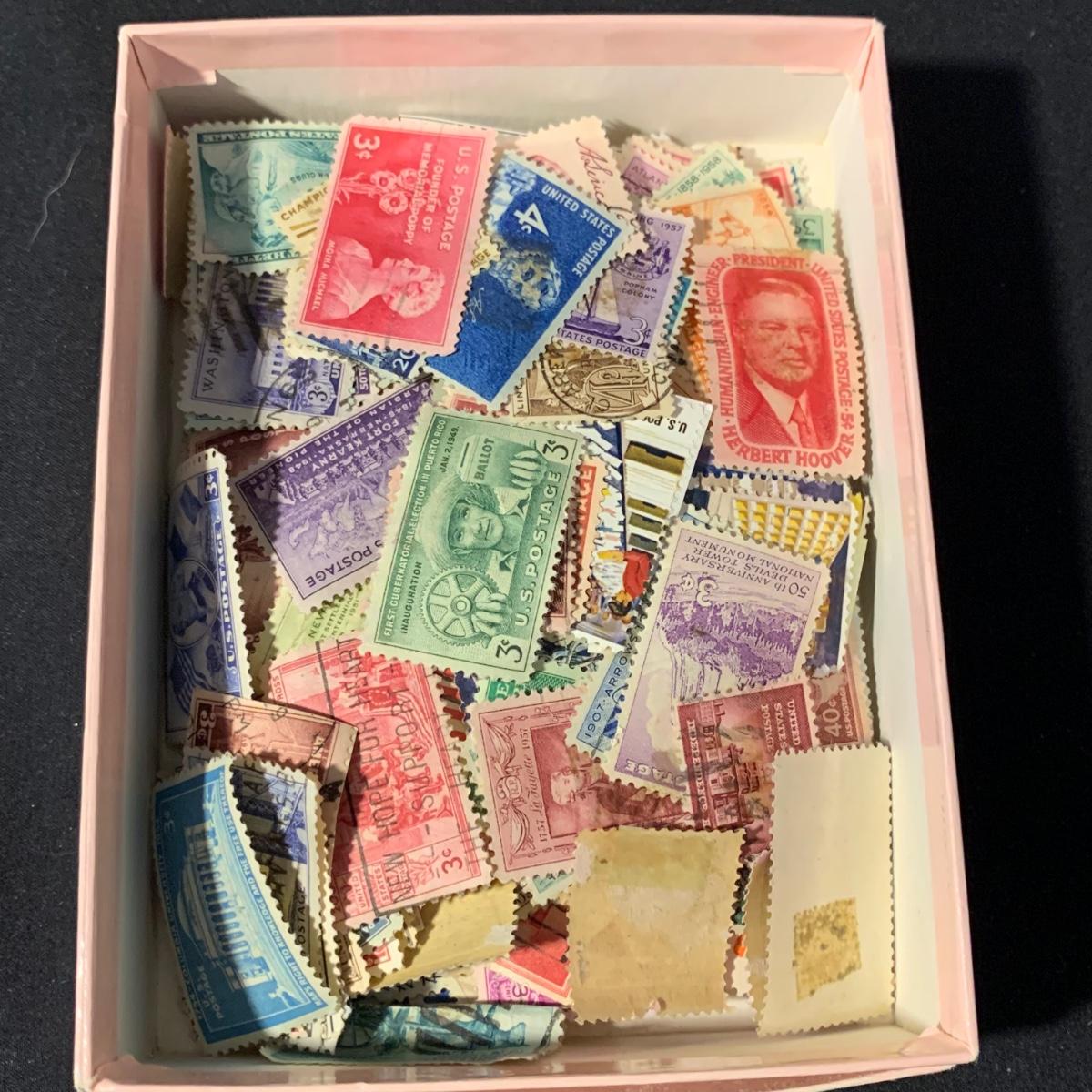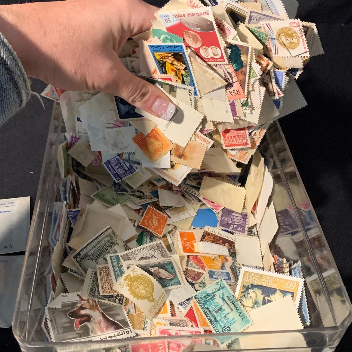 A collection of hundreds (if not thousands!) of loose stamps, as well as a packet of 1,000 prefolded stamp hinges and a box of 50 glassine collectors envelopes. Please see photos for an idea of the stamps included in this collection.