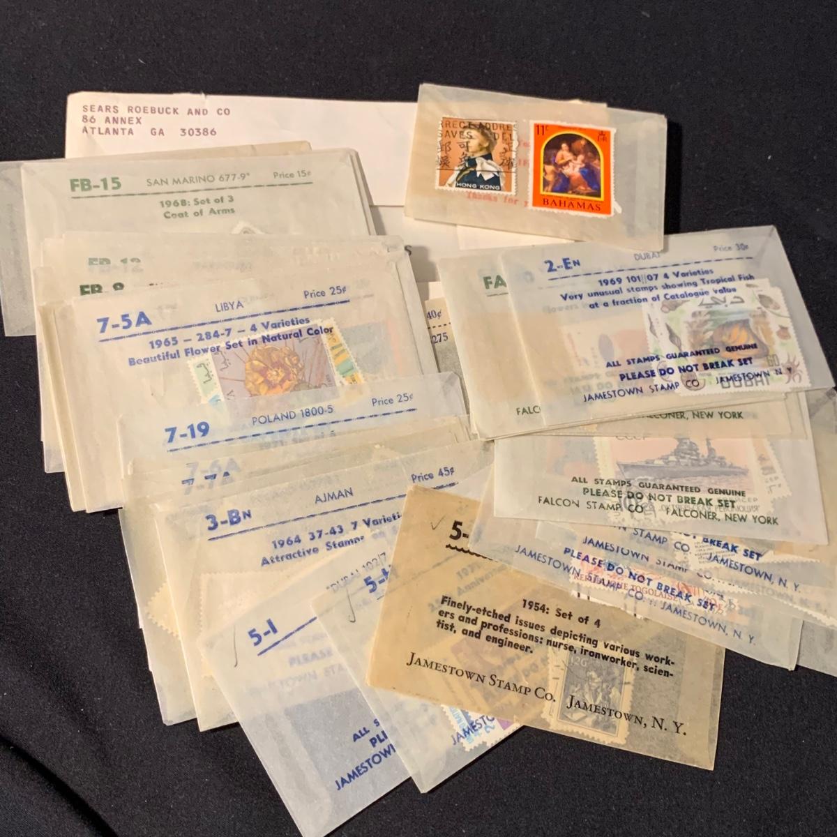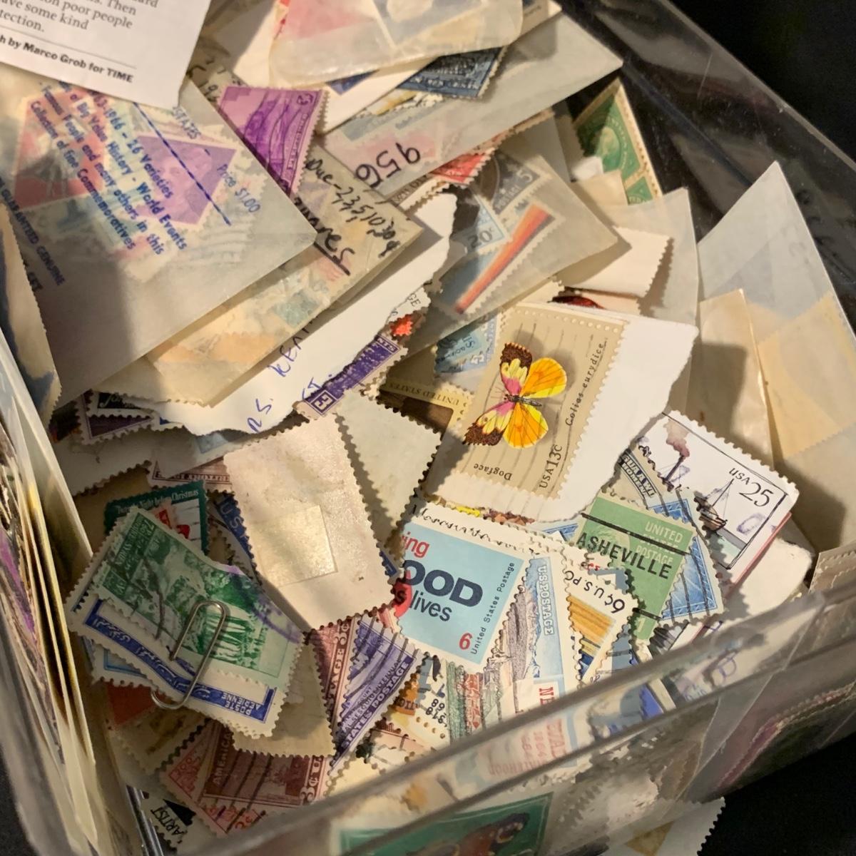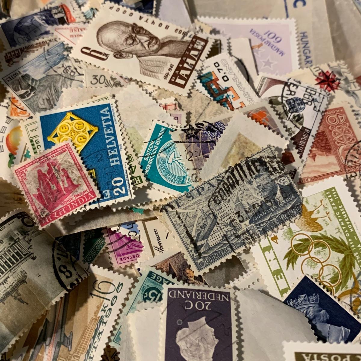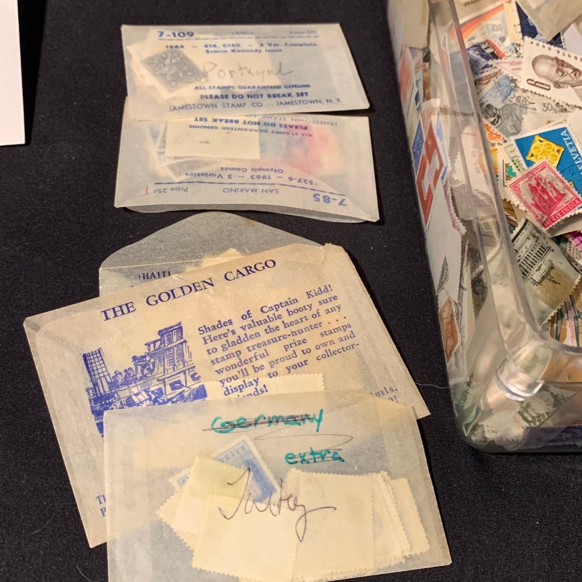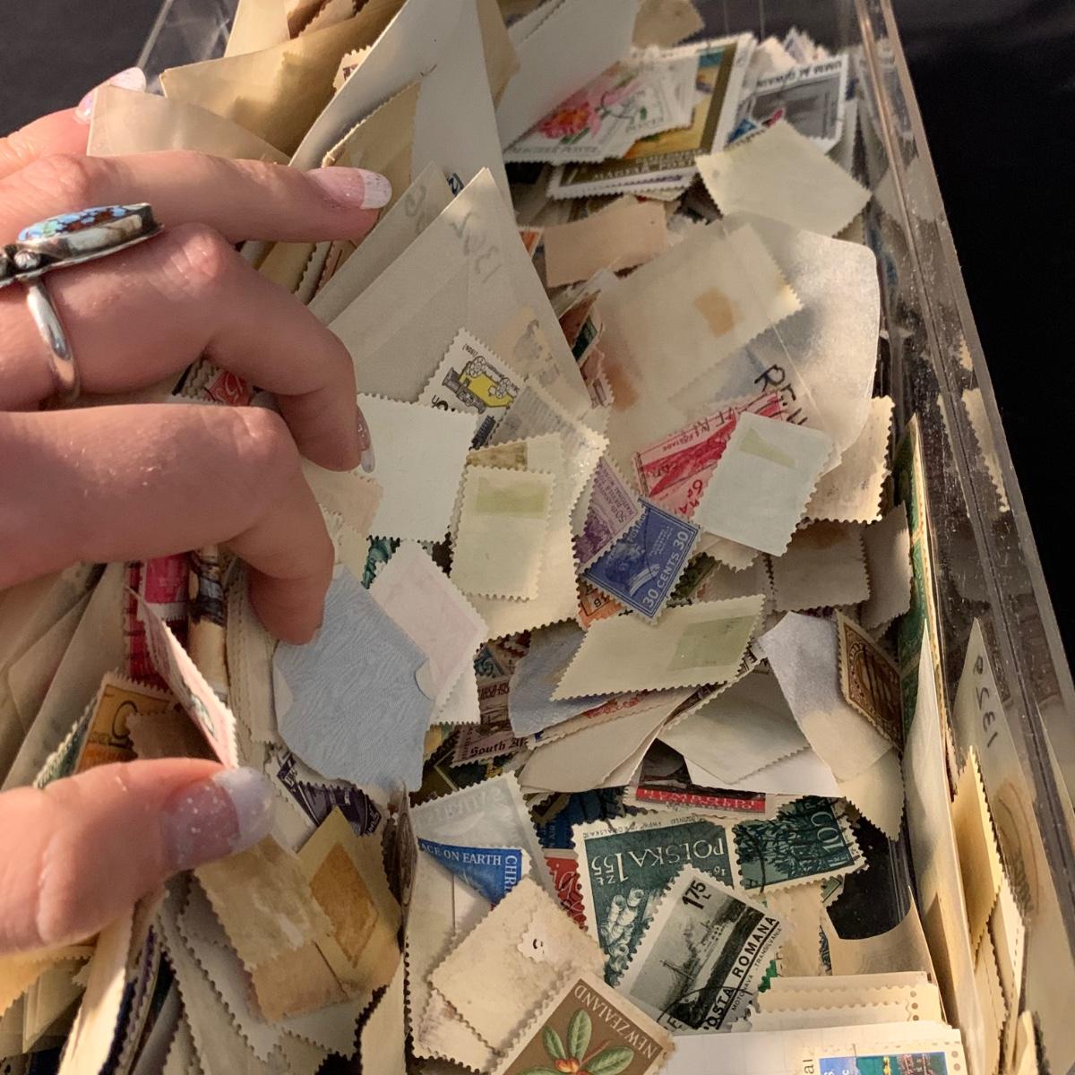 A collection of hundreds (if not thousands!) of loose stamps, as well as a packet of 1,000 prefolded stamp hinges and a box of 50 glassine collectors envelopes. Please see photos for an idea of the stamps included in this collection.