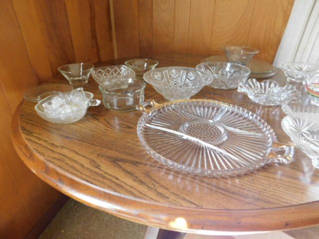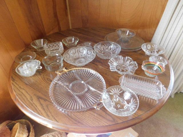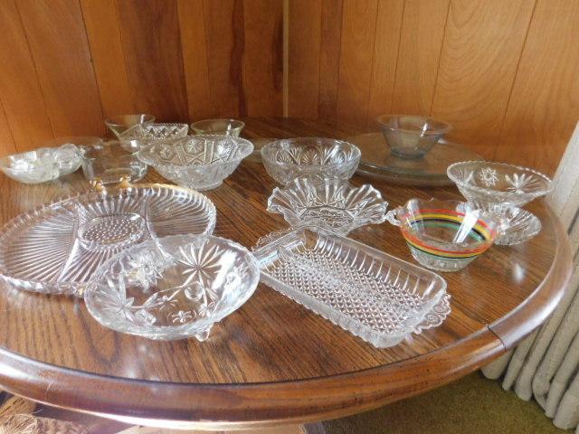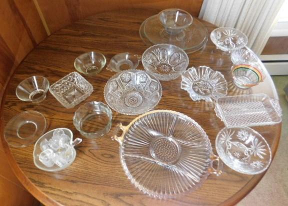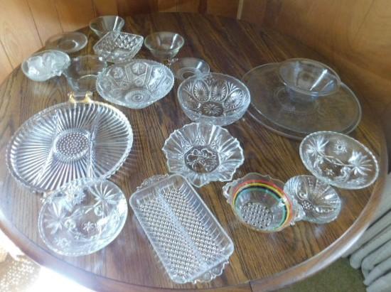Huge Collection of Pressed Glass Plates and Serving Dishes