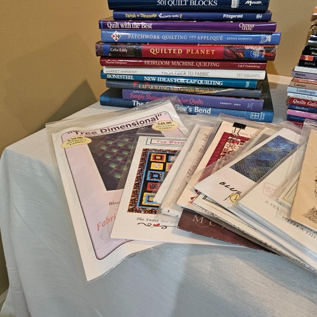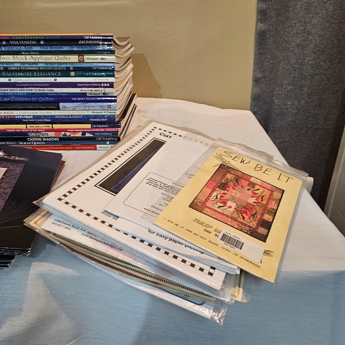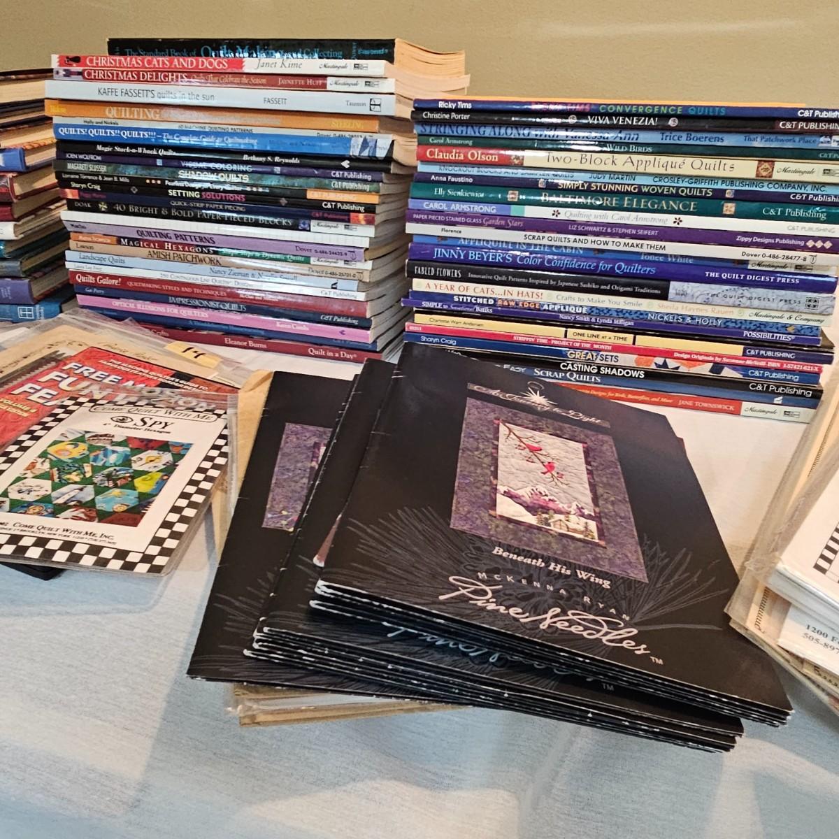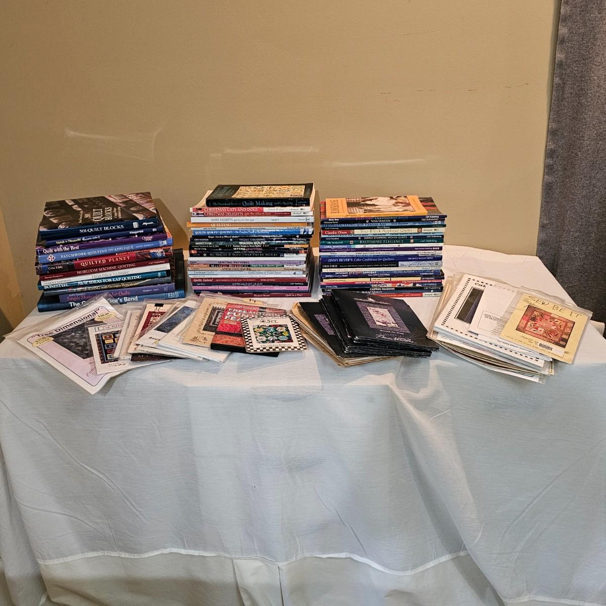 Over fifty books and patterns for quilters. Hardcover, softcover, many different titles and styles shown. For beginners and seasoned quilters alike. See photos for details. Local pickup only.