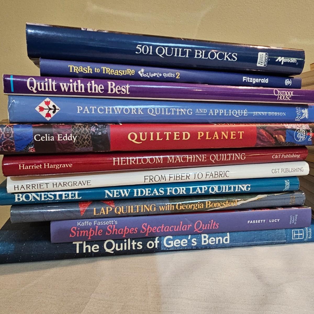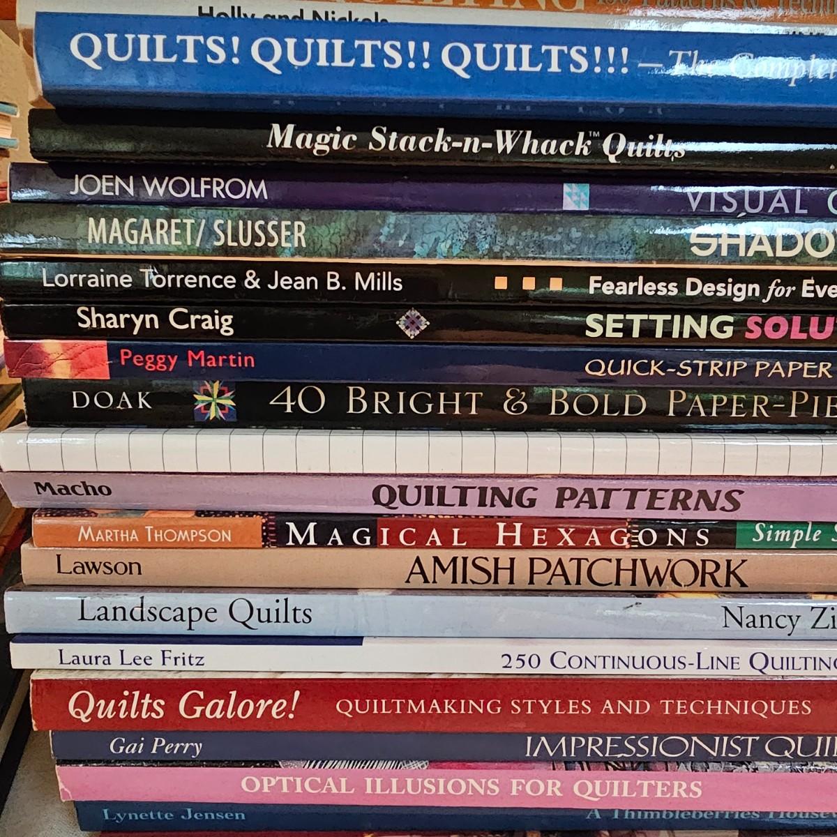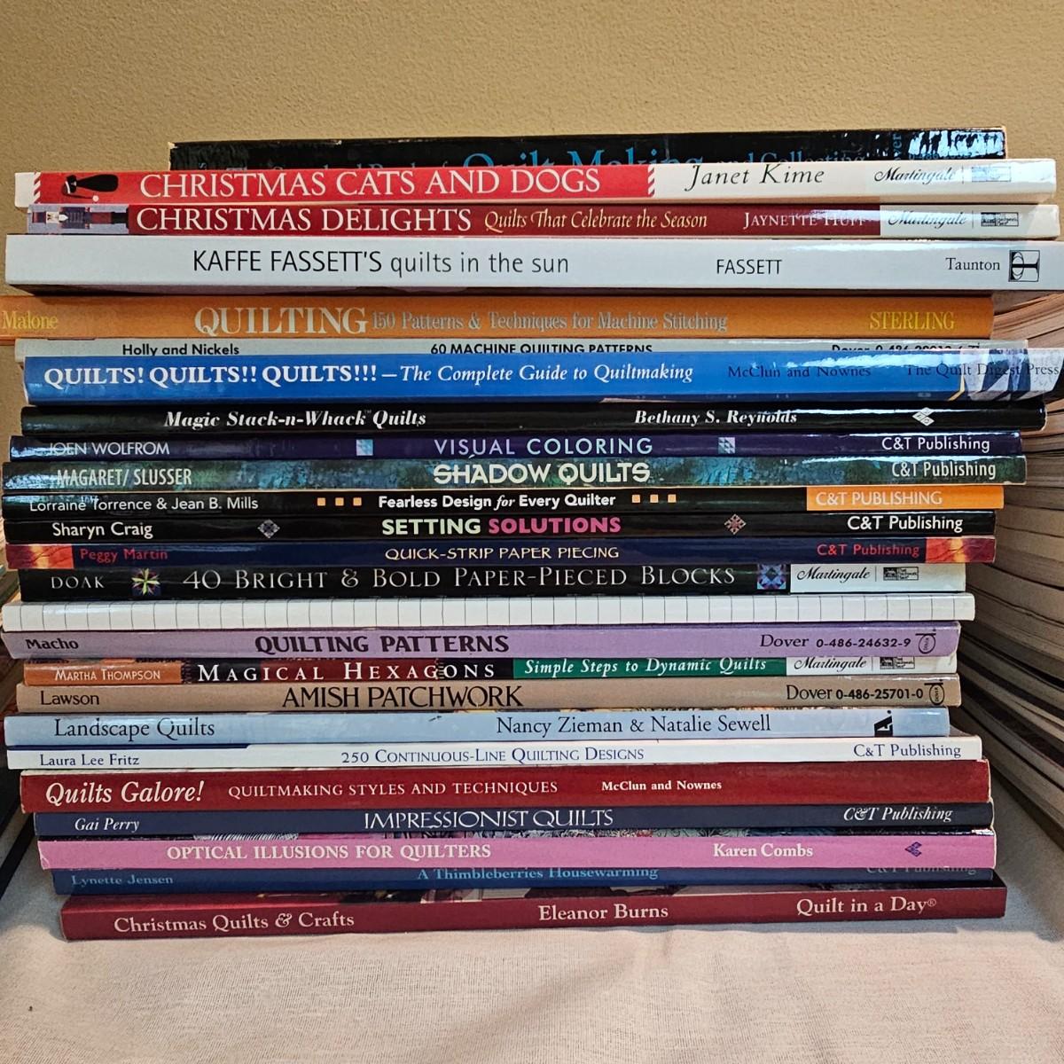 Over fifty books and patterns for quilters. Hardcover, softcover, many different titles and styles shown. For beginners and seasoned quilters alike. See photos for details. Local pickup only.