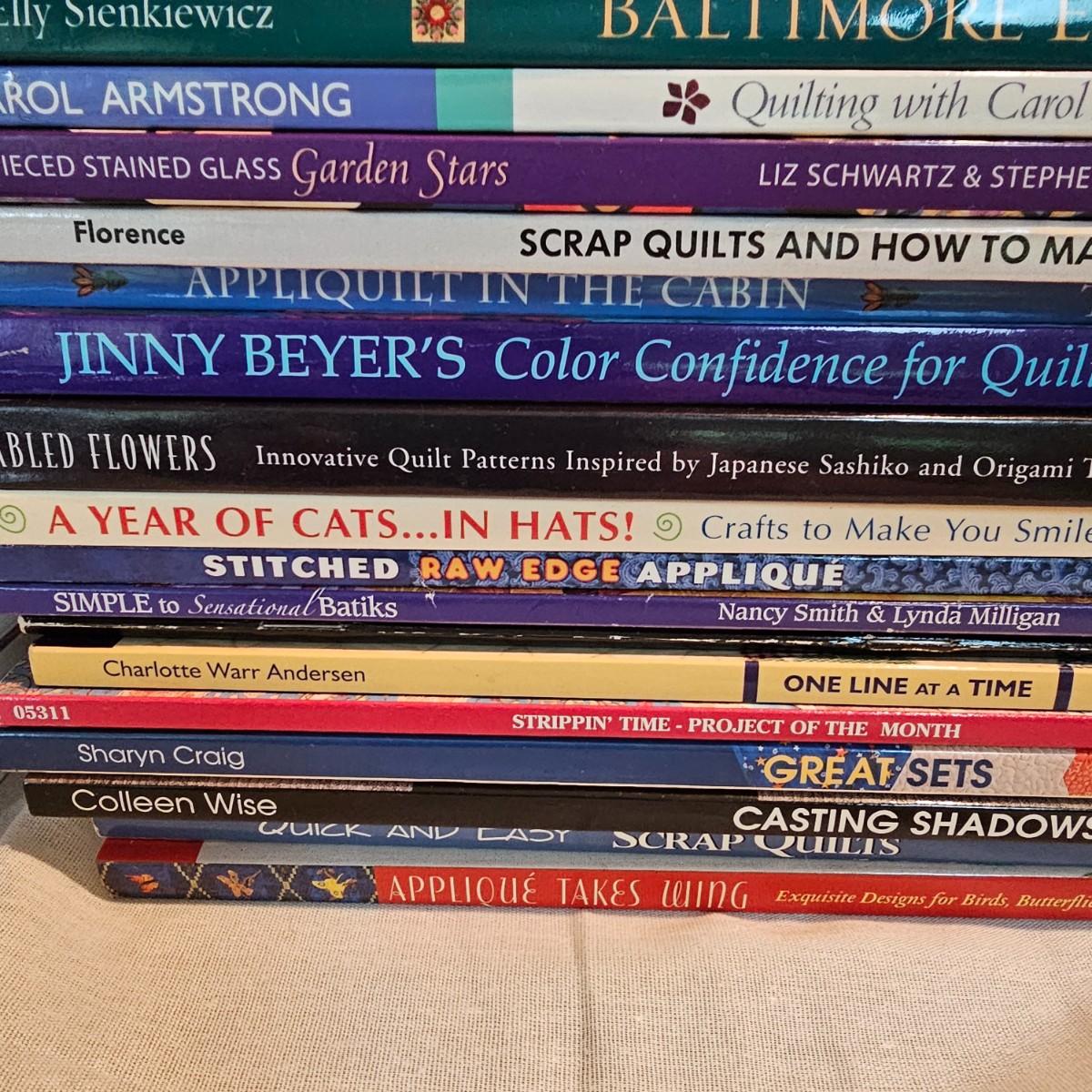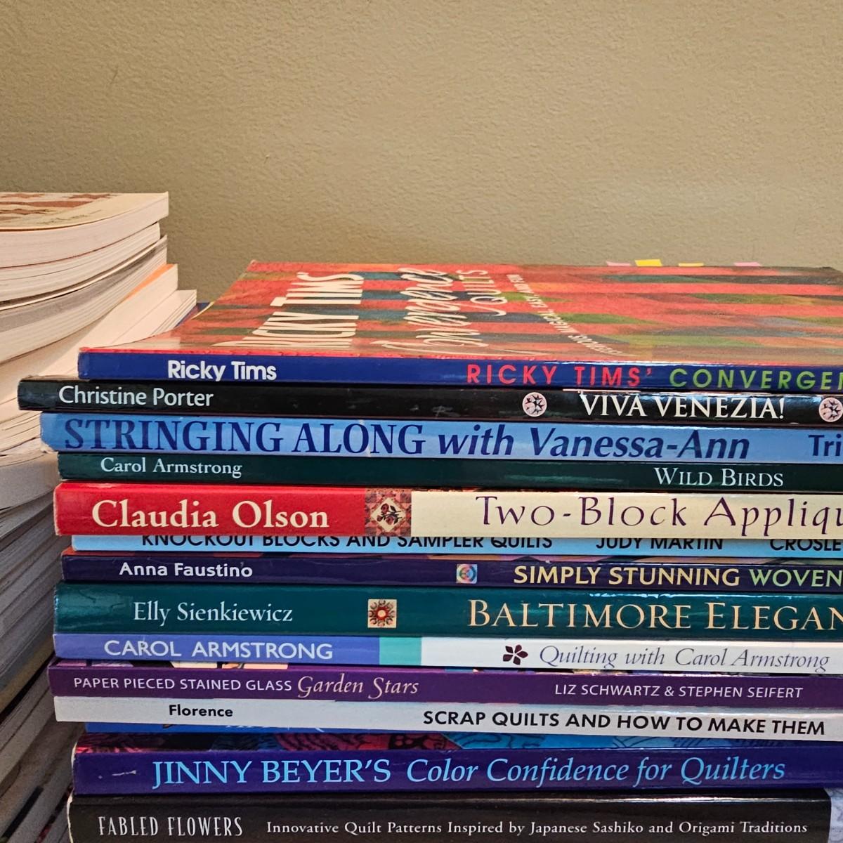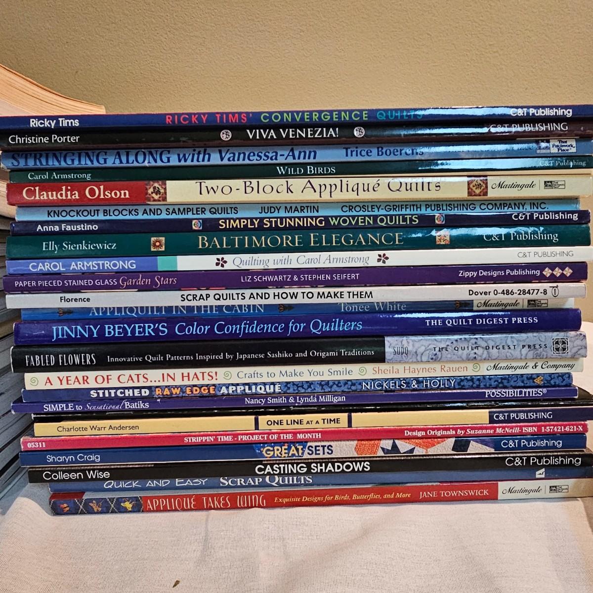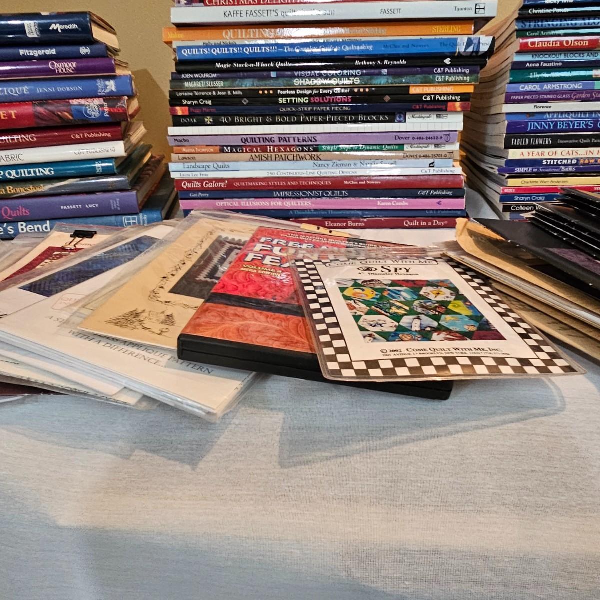 Over fifty books and patterns for quilters. Hardcover, softcover, many different titles and styles shown. For beginners and seasoned quilters alike. See photos for details. Local pickup only.