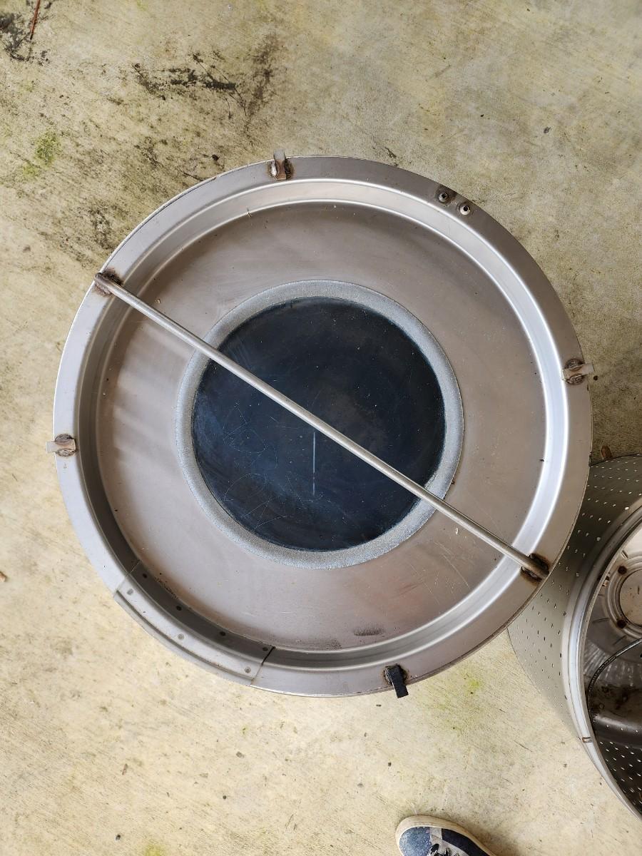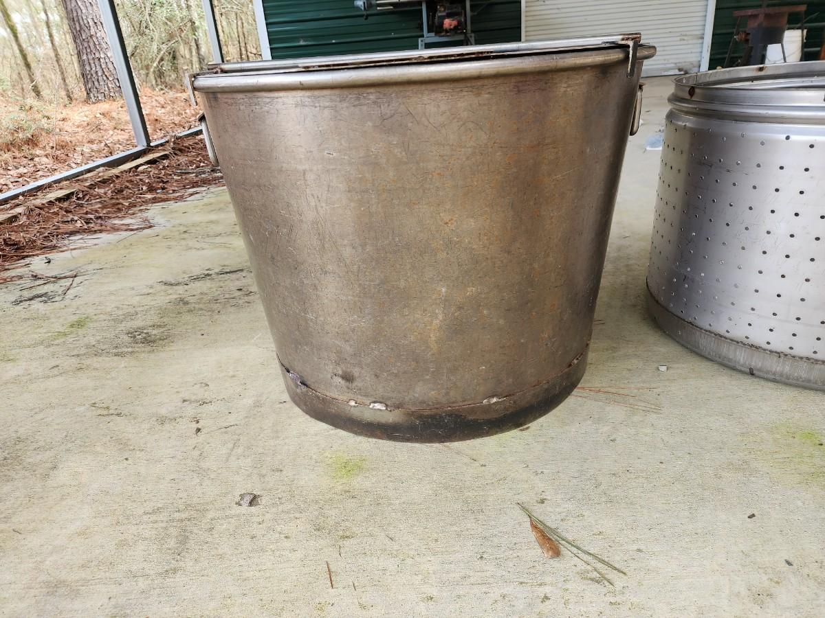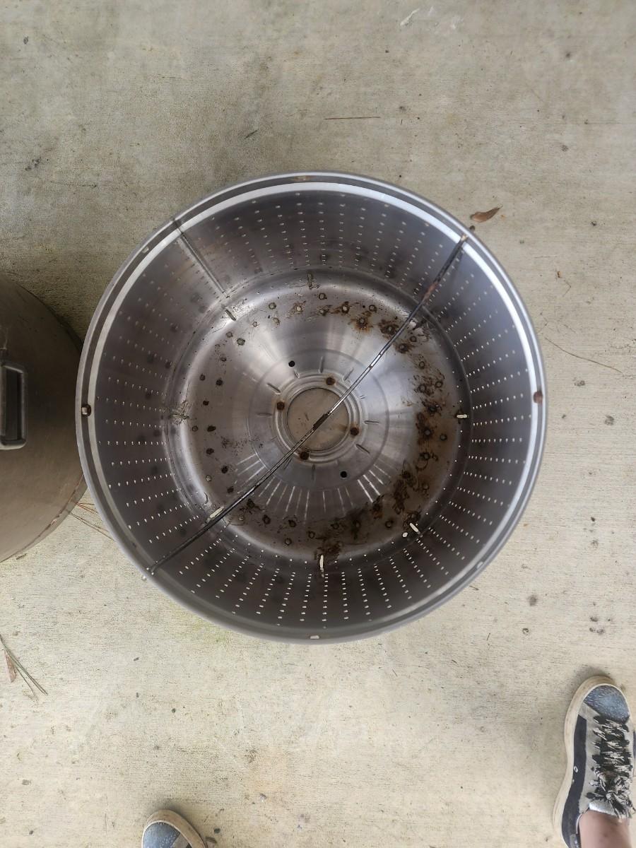 This Crawfish pot was made from Commercial washer and dryer parts! The burner stand was custom made to fit it. It needs a little TLC, but should clean up nicely!