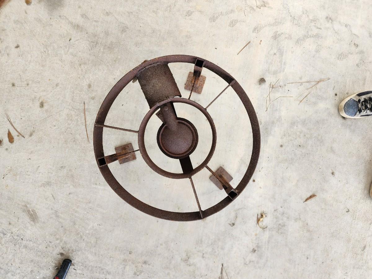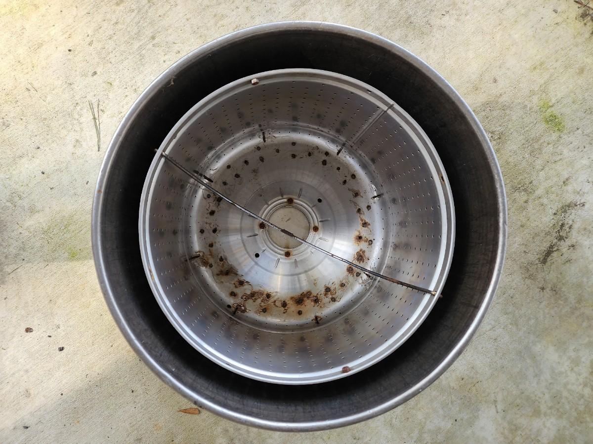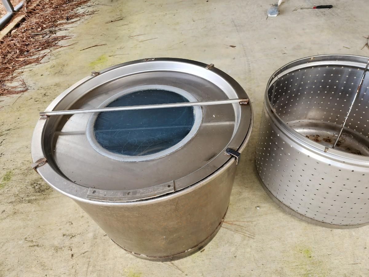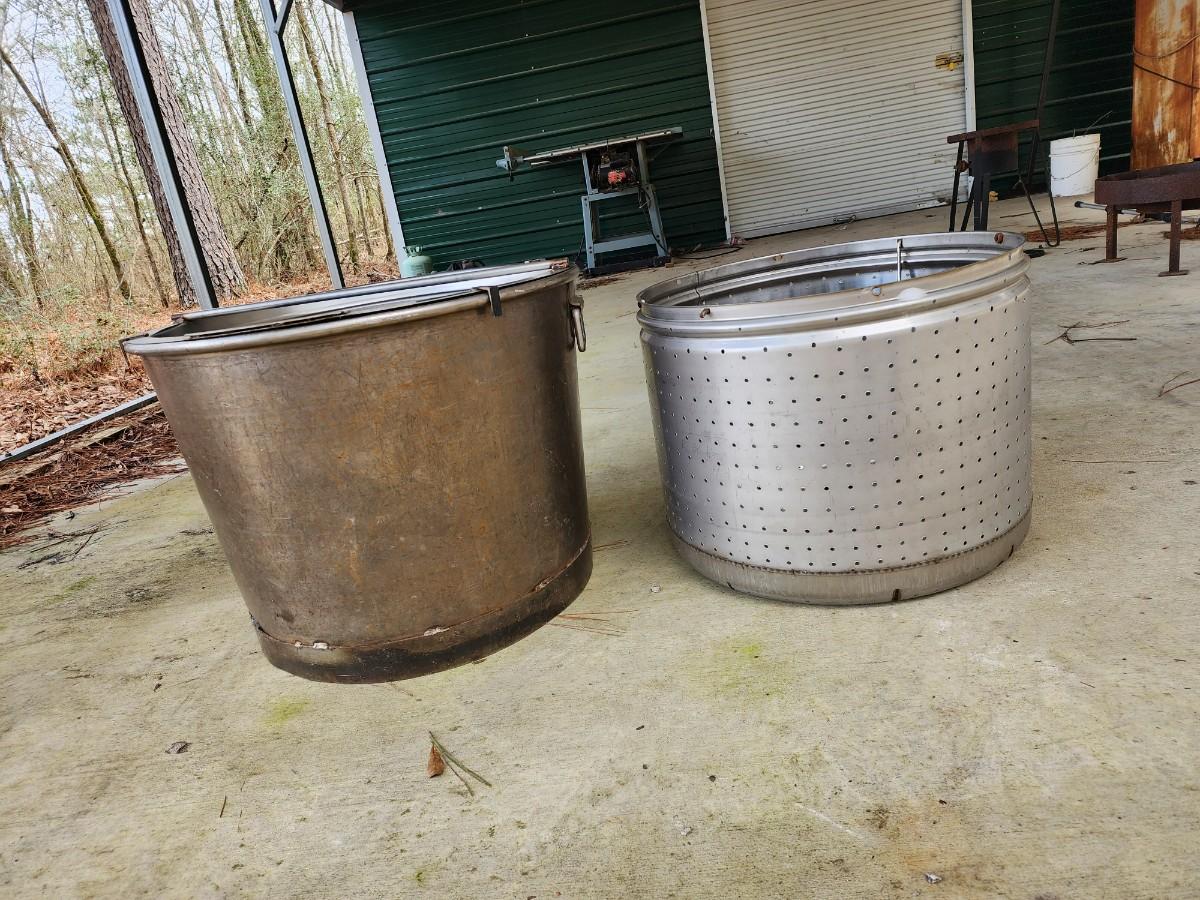 This Crawfish pot was made from Commercial washer and dryer parts! The burner stand was custom made to fit it. It needs a little TLC, but should clean up nicely!