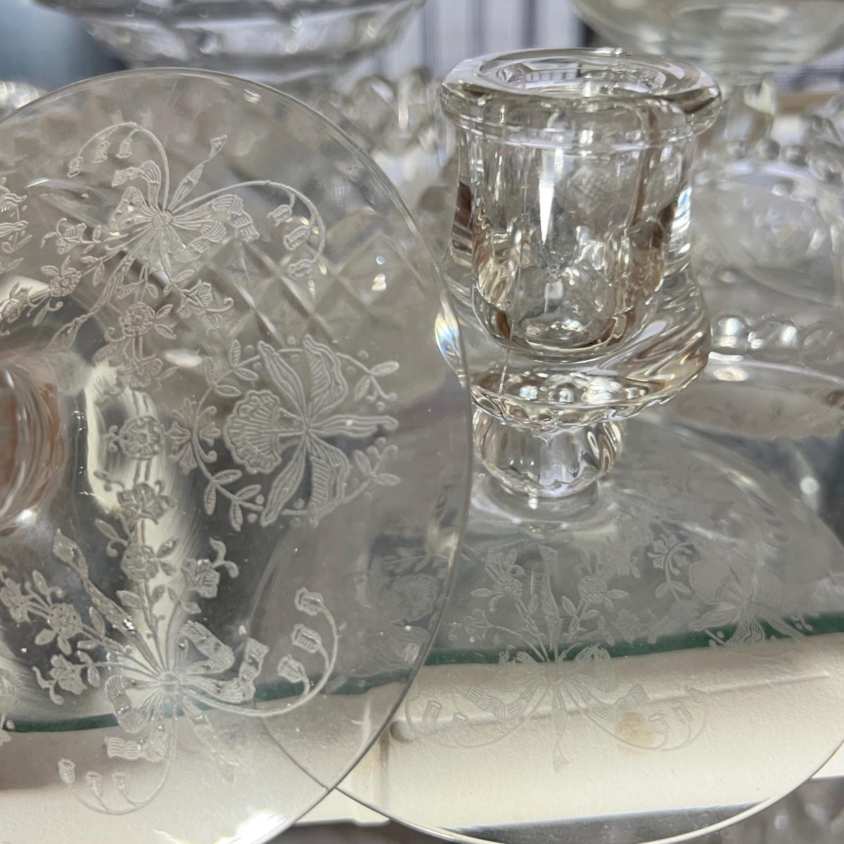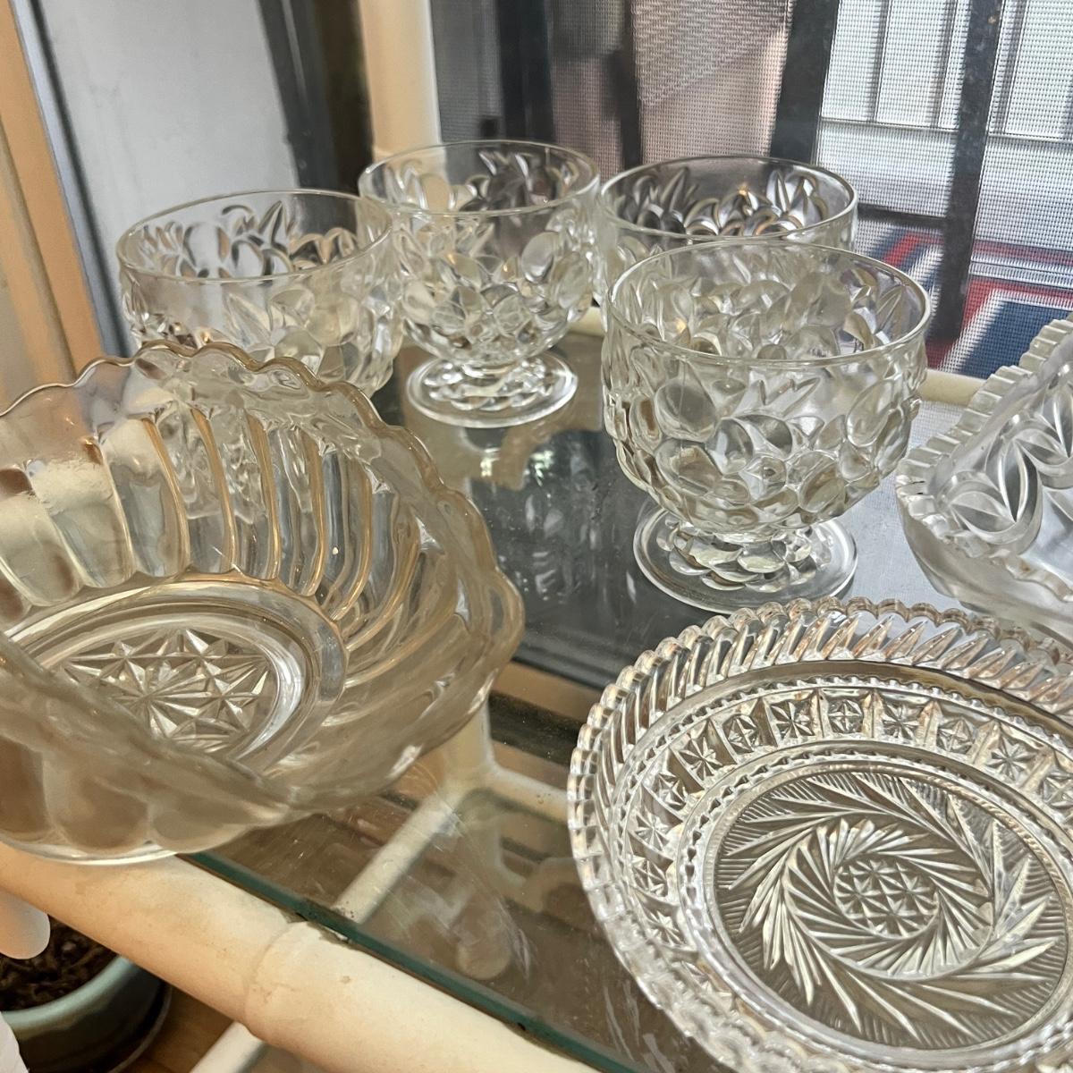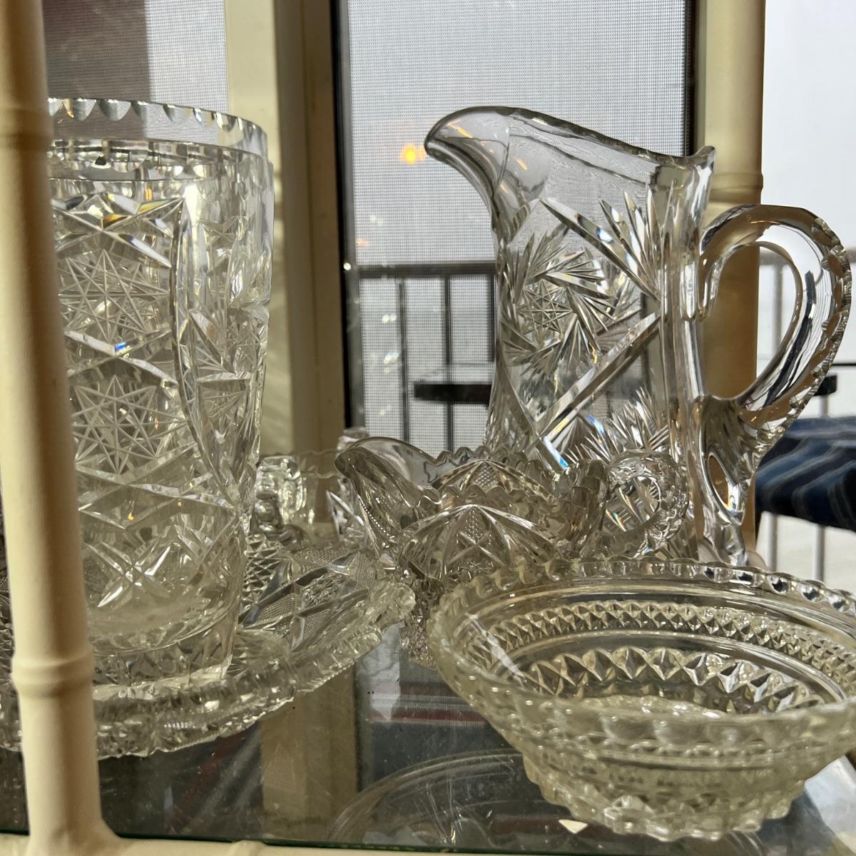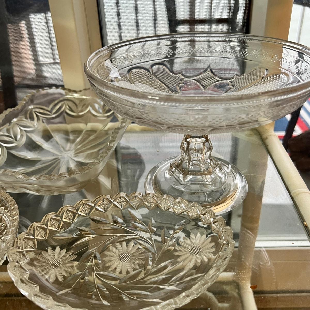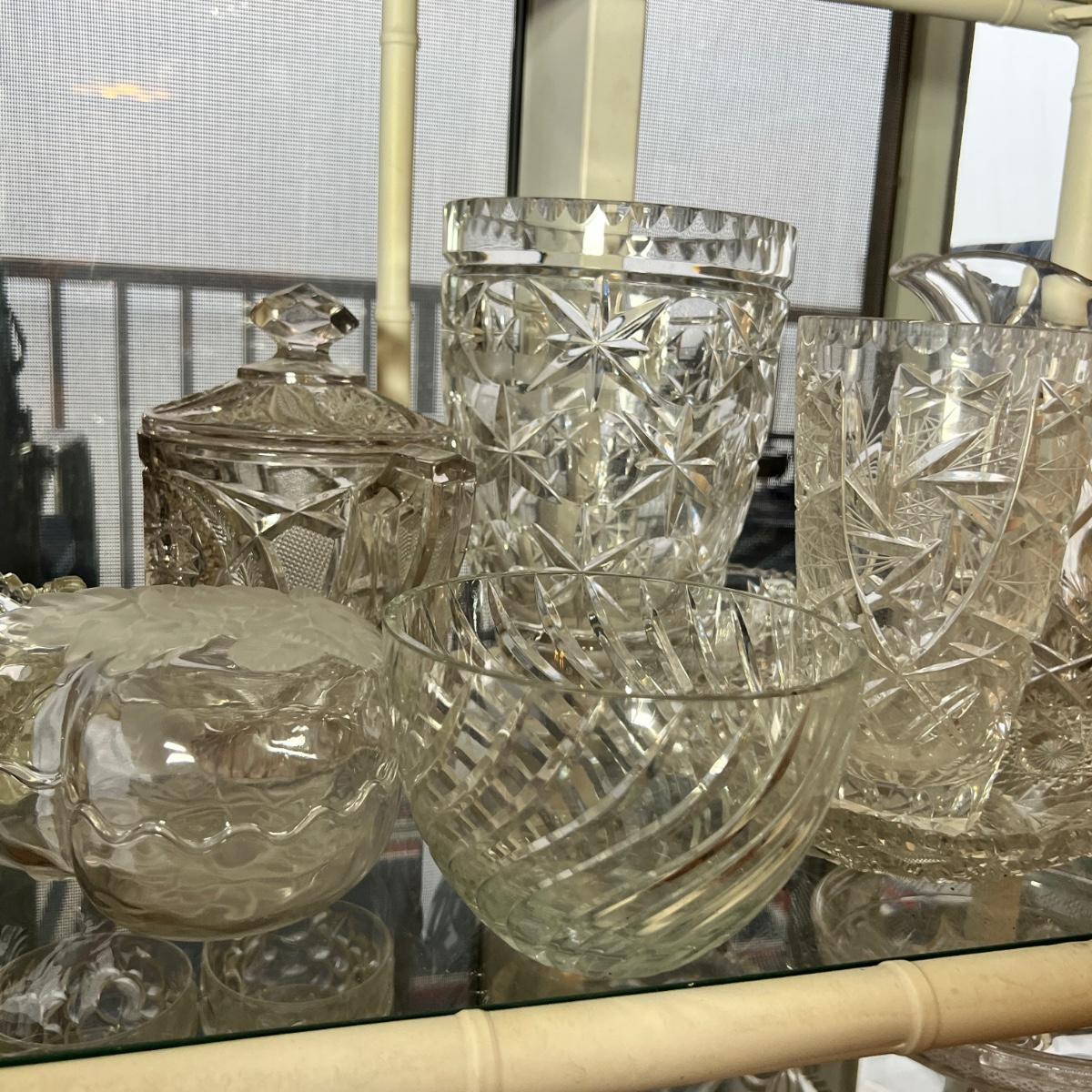 This is an amazing lot! Some pieces are signed or hallmarked like the 2 small Heisey Glass plates and the Hadeland owl. Lot includes 4 shelves of pieces.