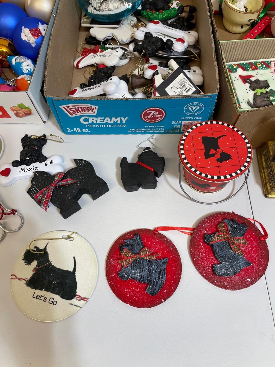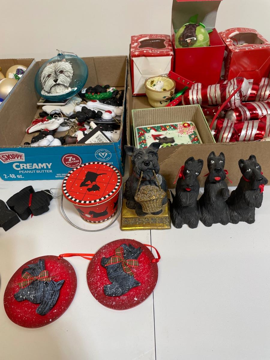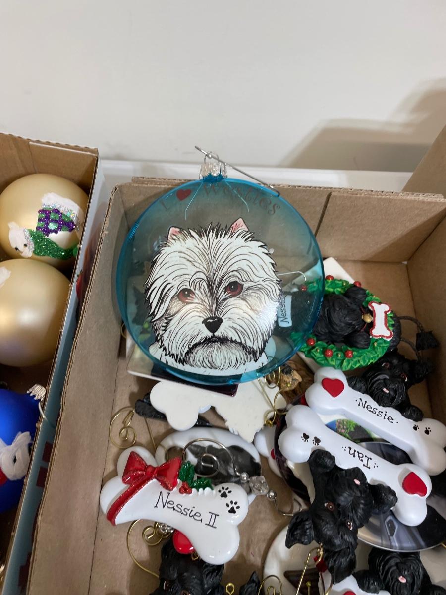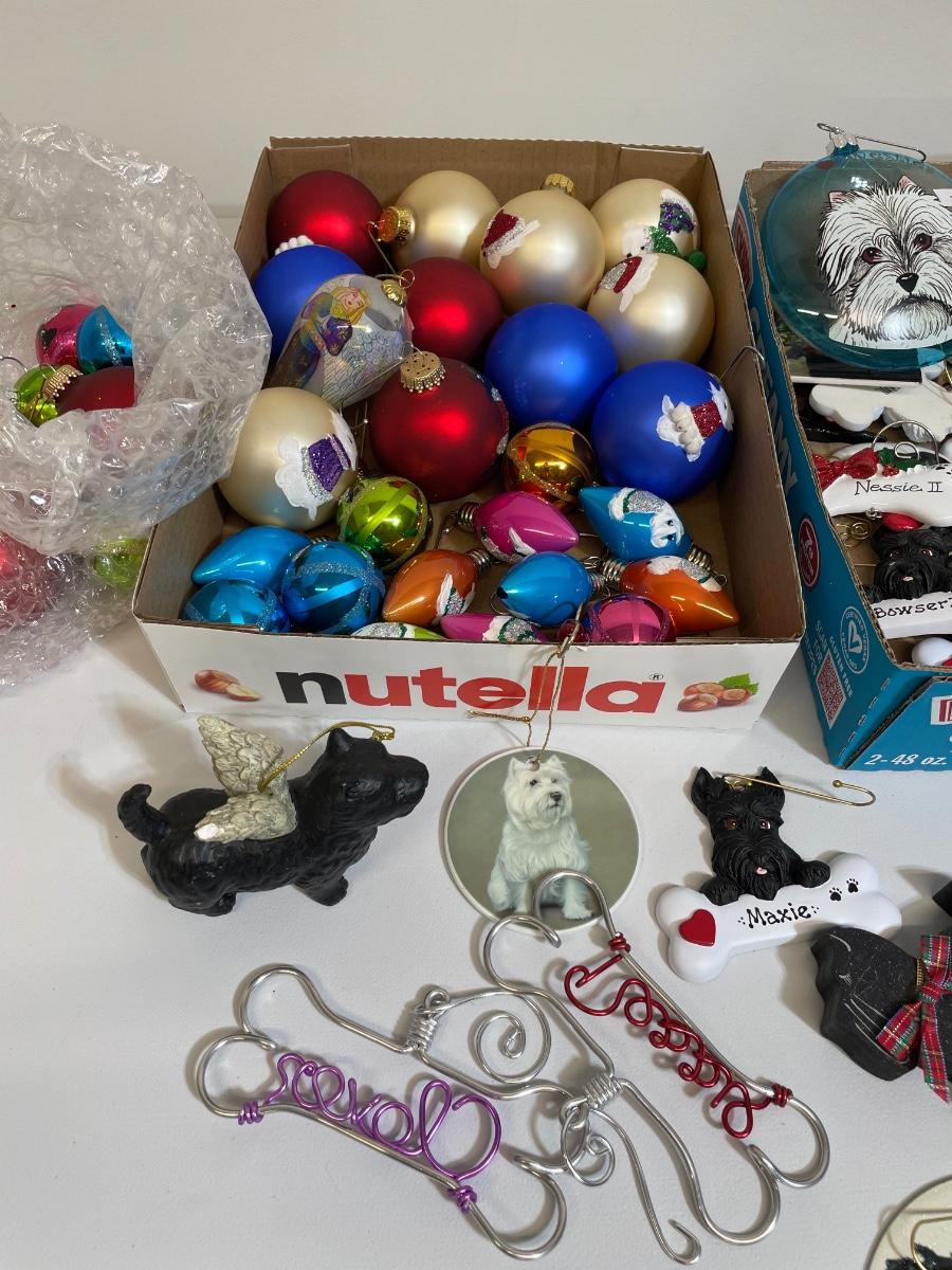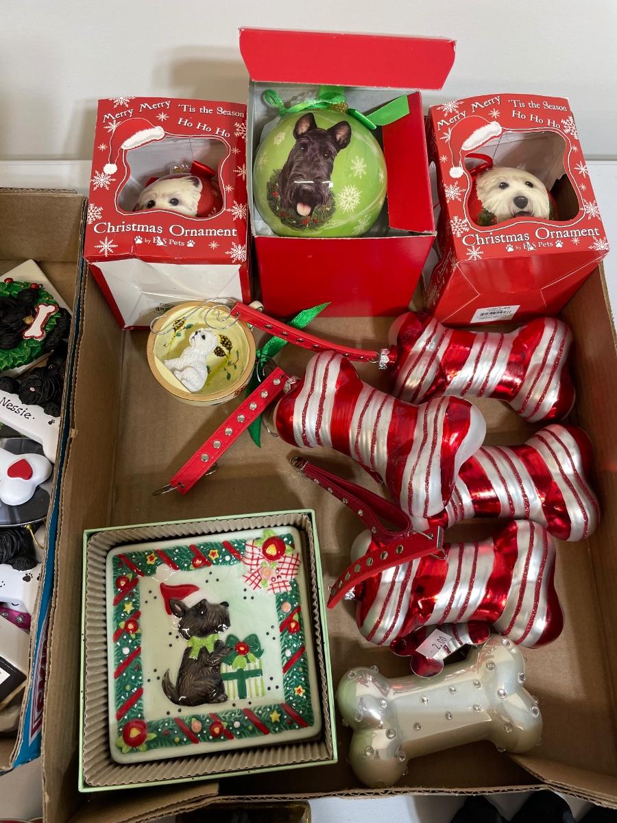 Hand painted glass ornaments, metal, resin, lots of cute dogs for your tree
