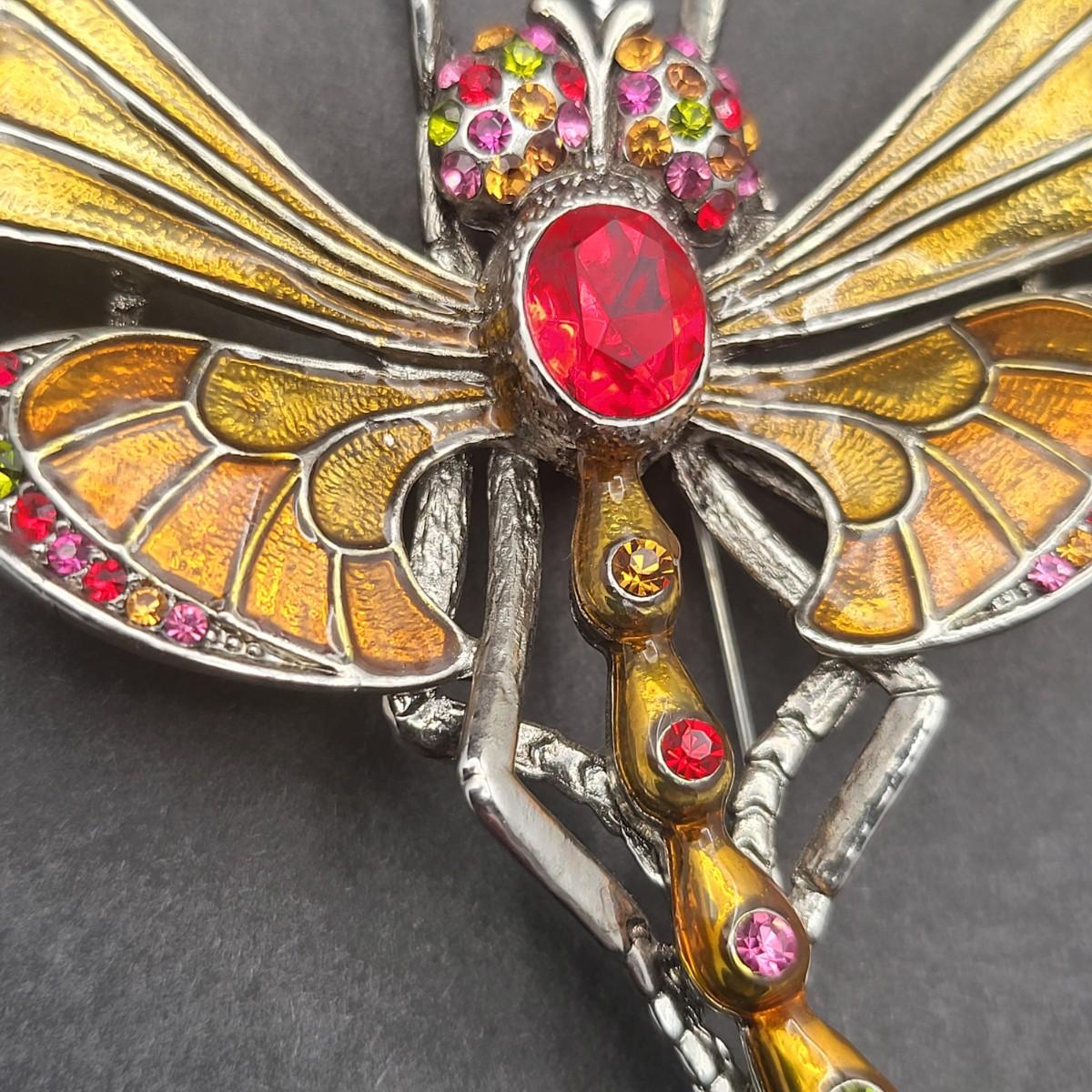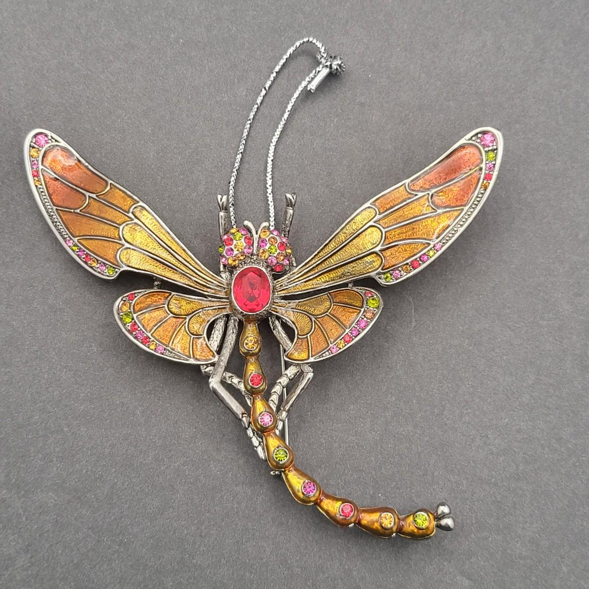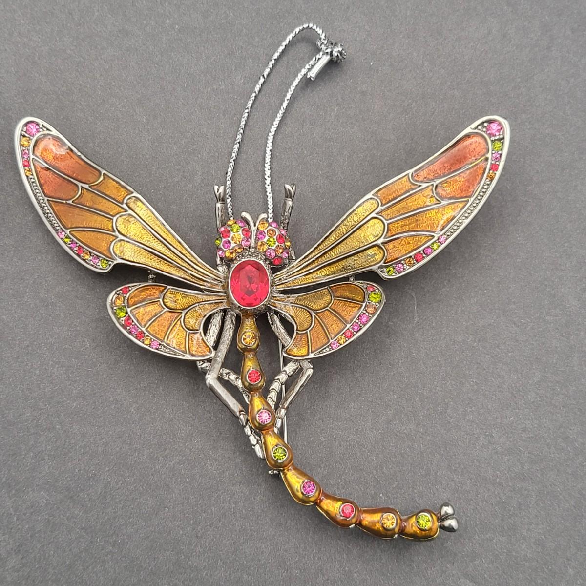 Beautifully enameled & colorful rhinestone fashion dragonfly brooch also can be worn as a pendant or hang as ornament. It measures 4.25"x 3.5"