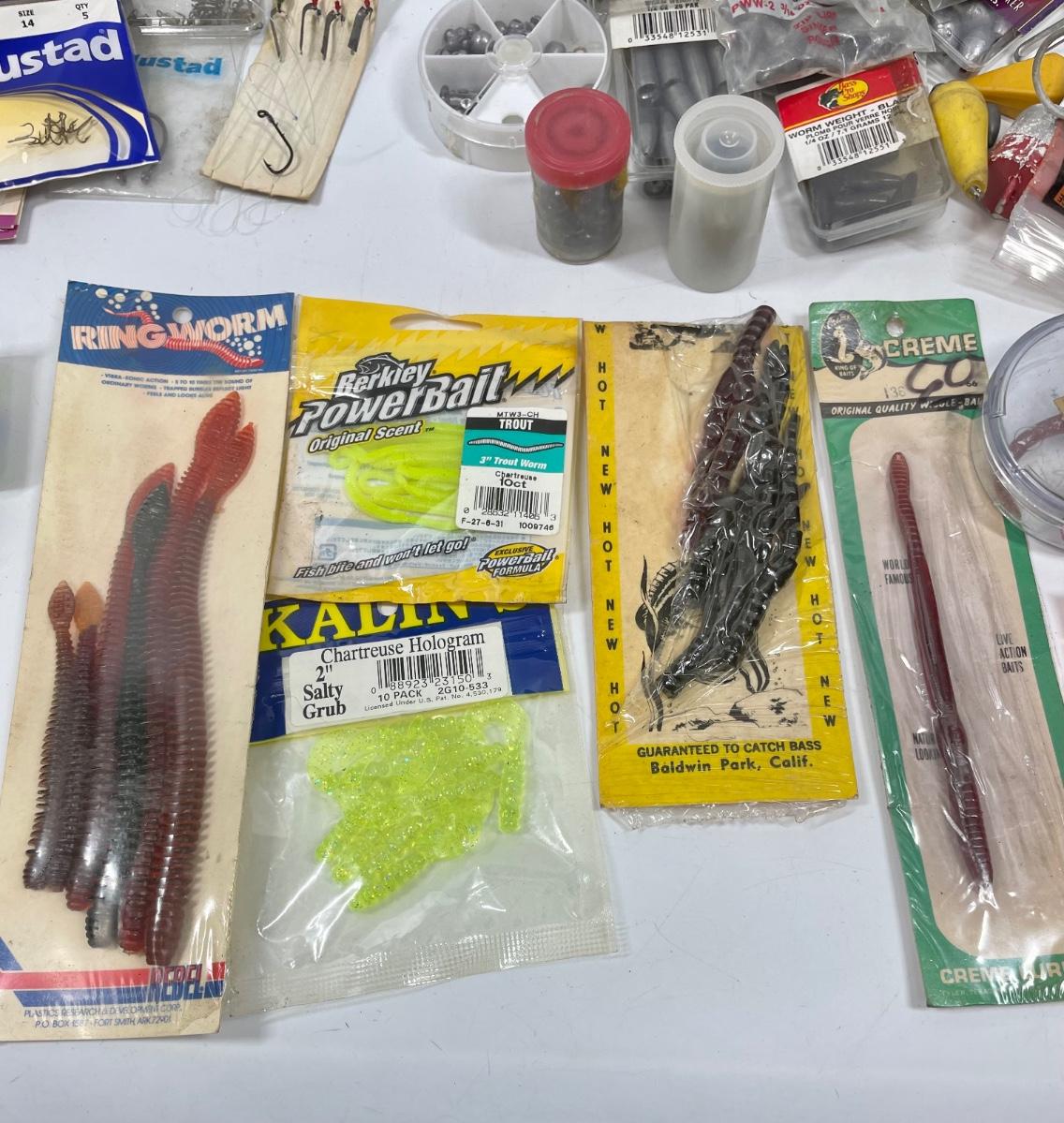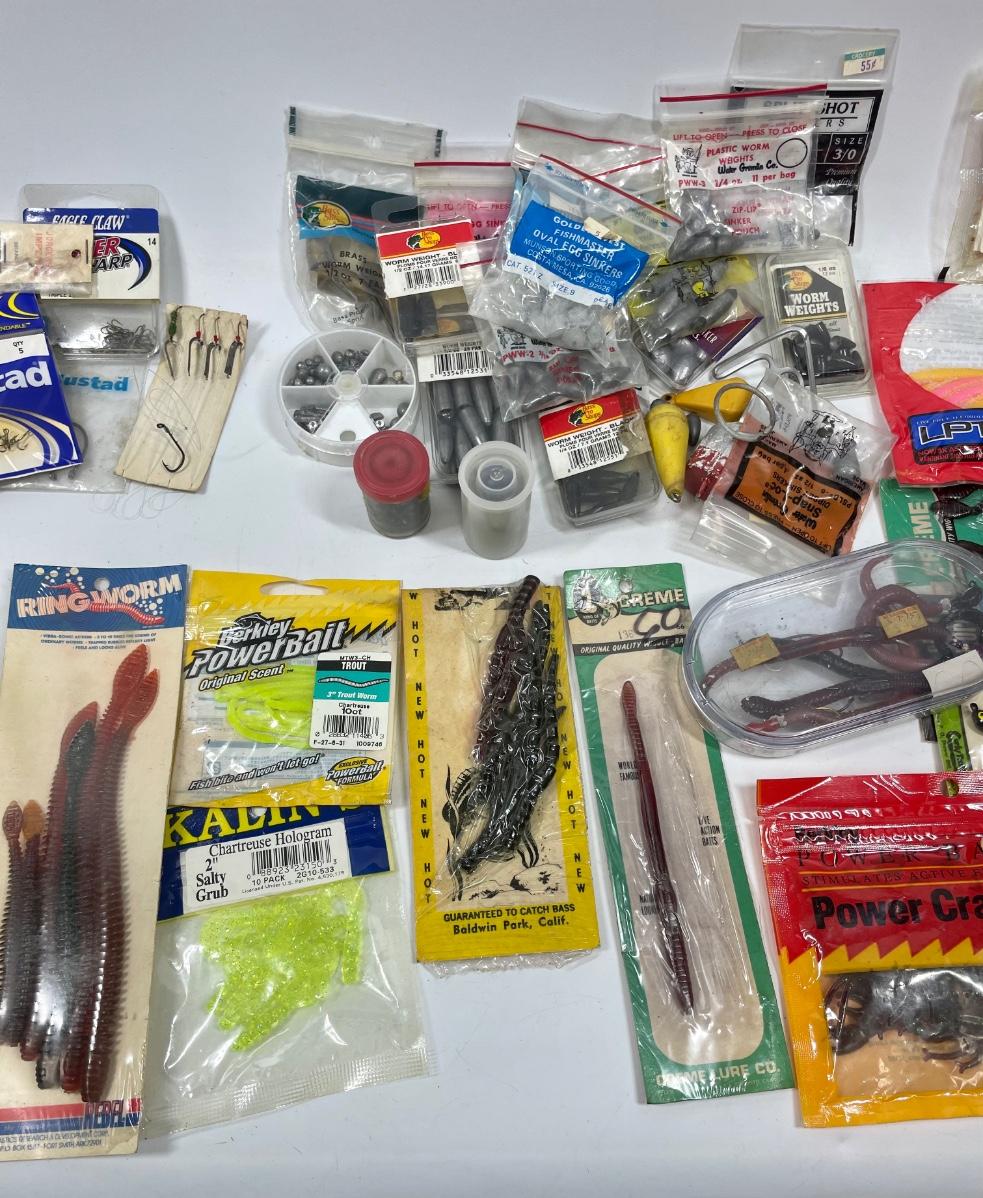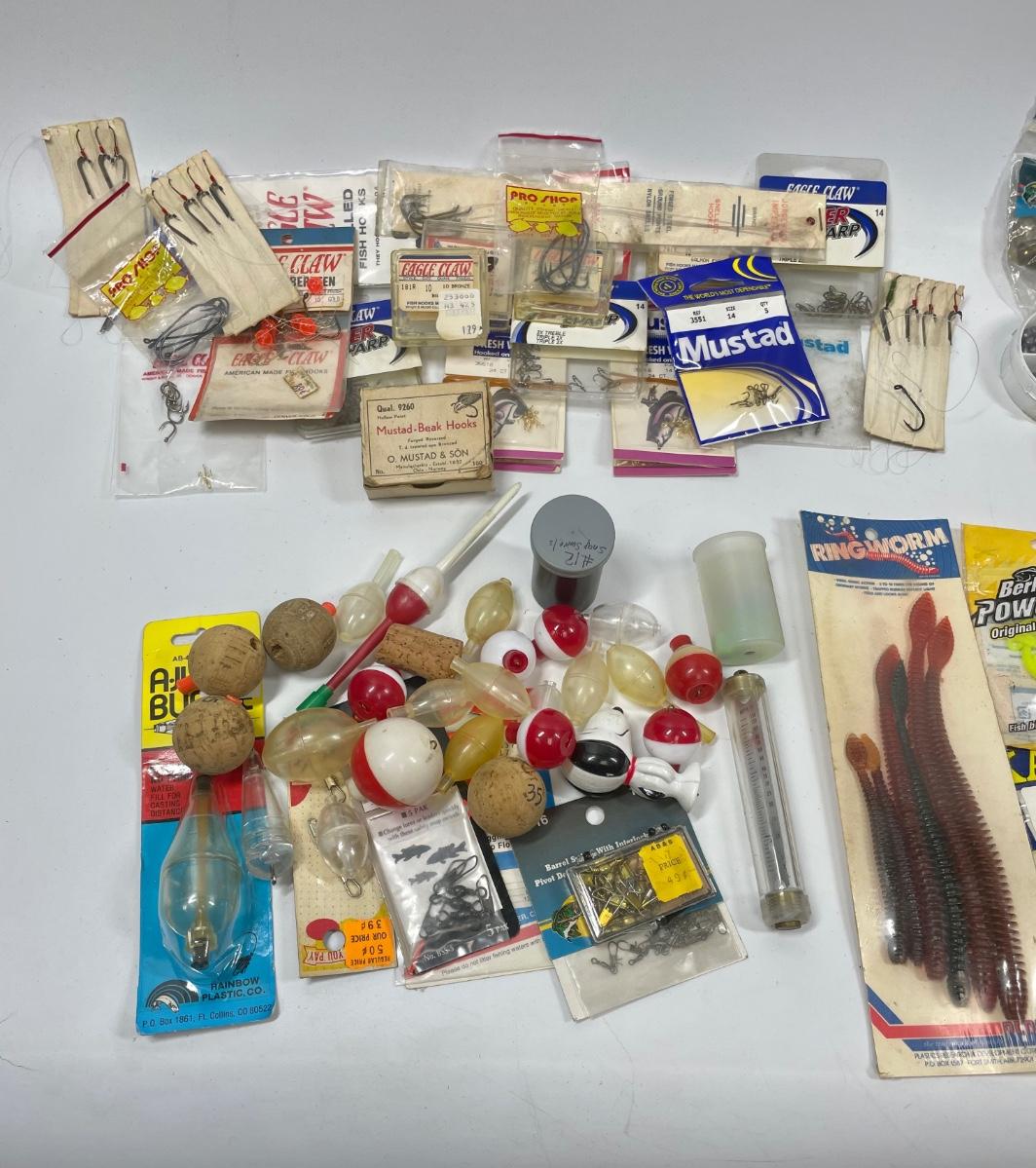 Lot includes: hooks, worms, weights, bobbers, swivels, and more. See photos for what’s included. Many are new, never opened or used.