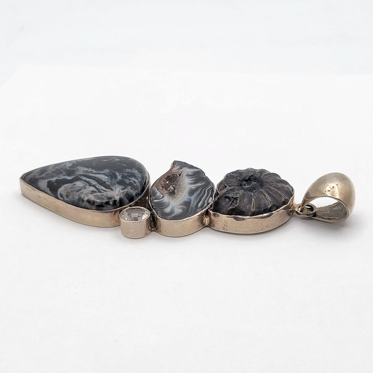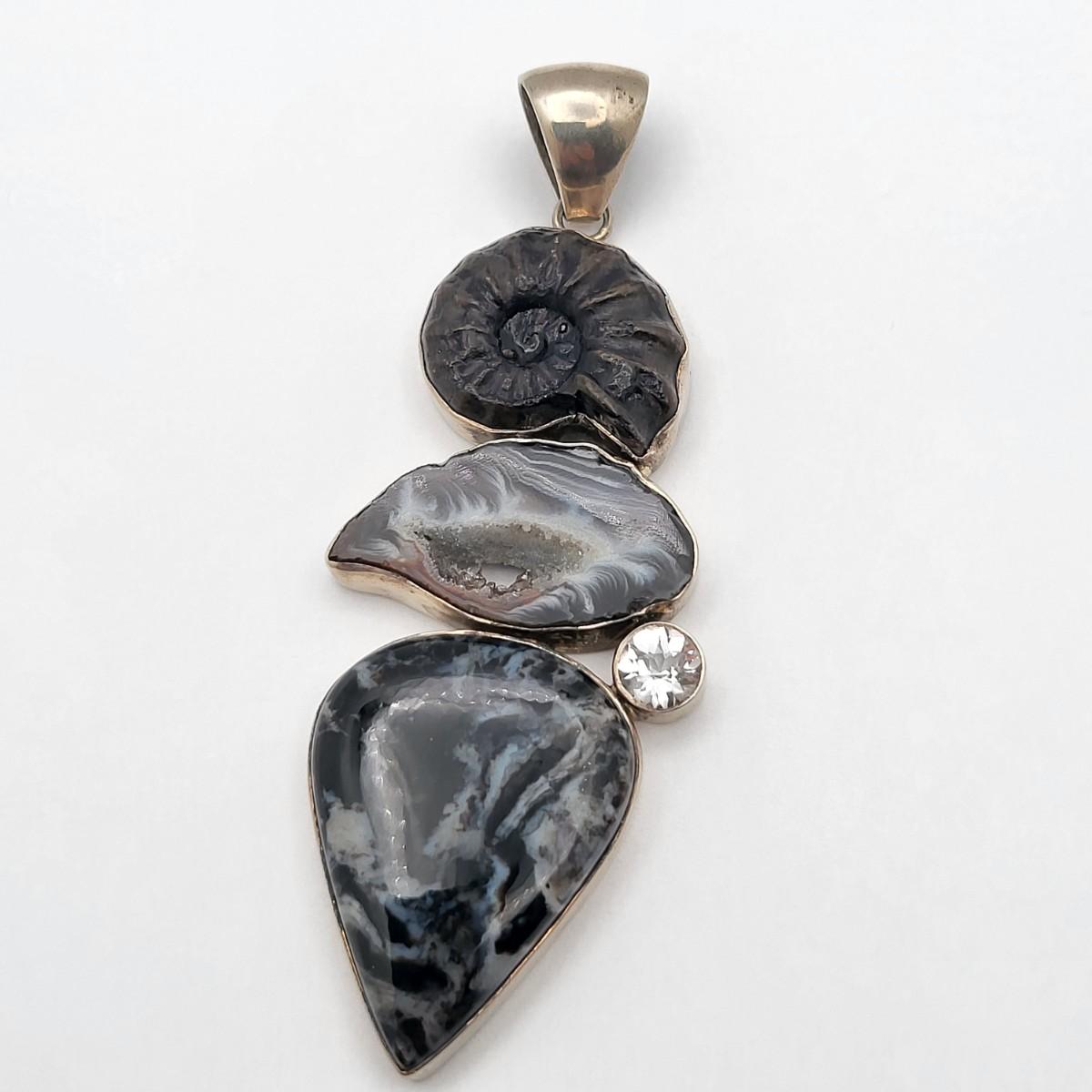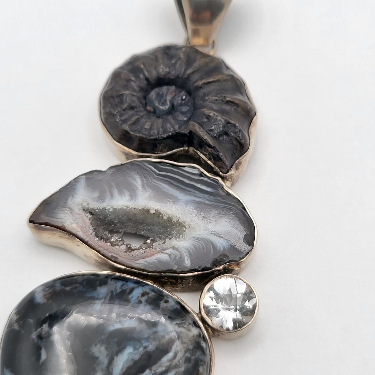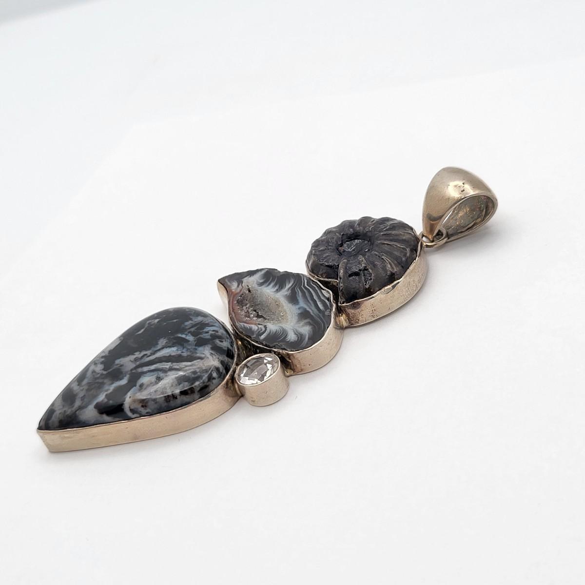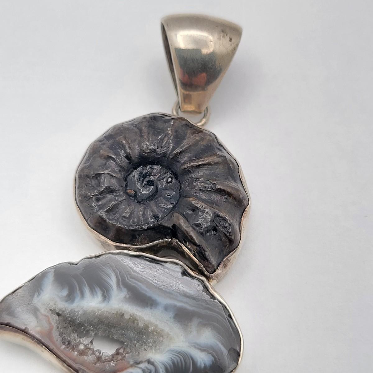 Huge Gemstone Pendant Ammonite Fossil Druzy Quartz 925