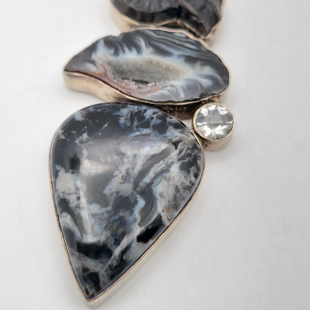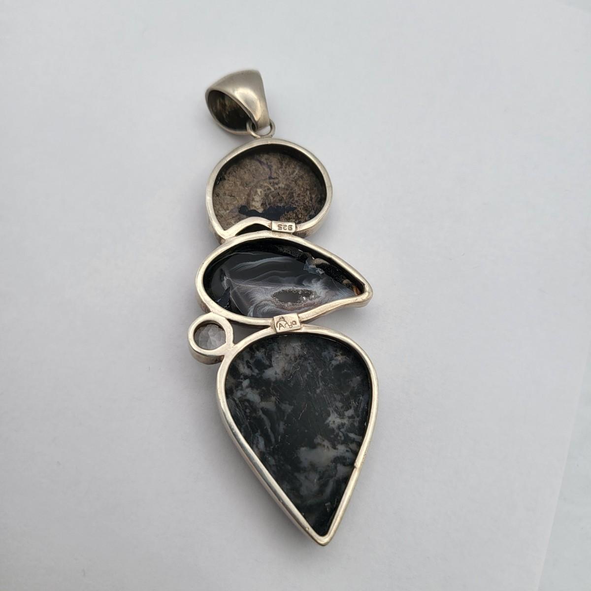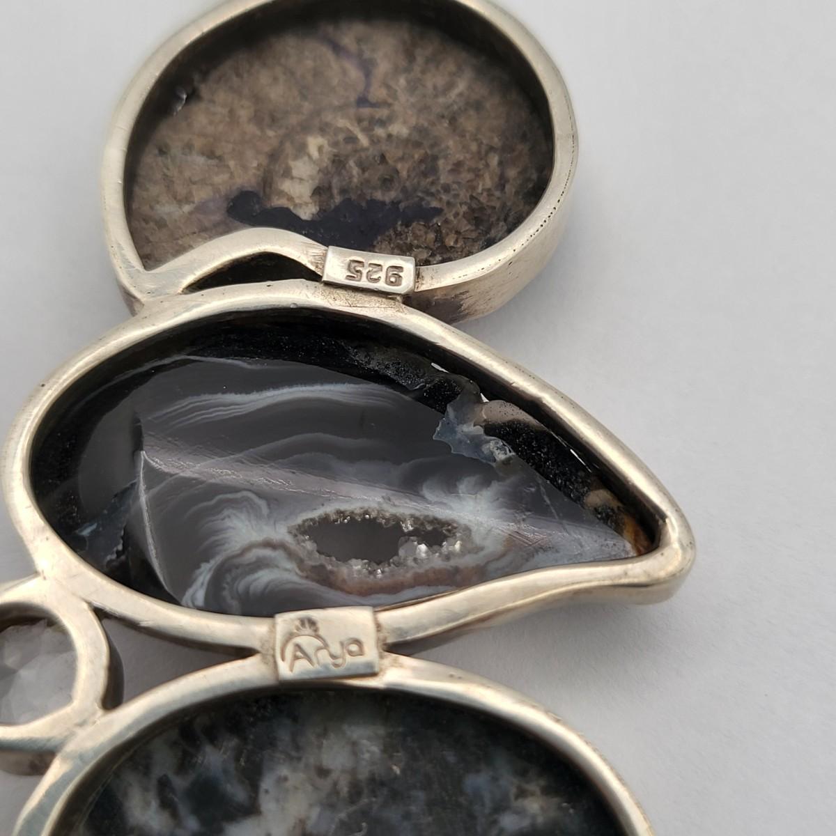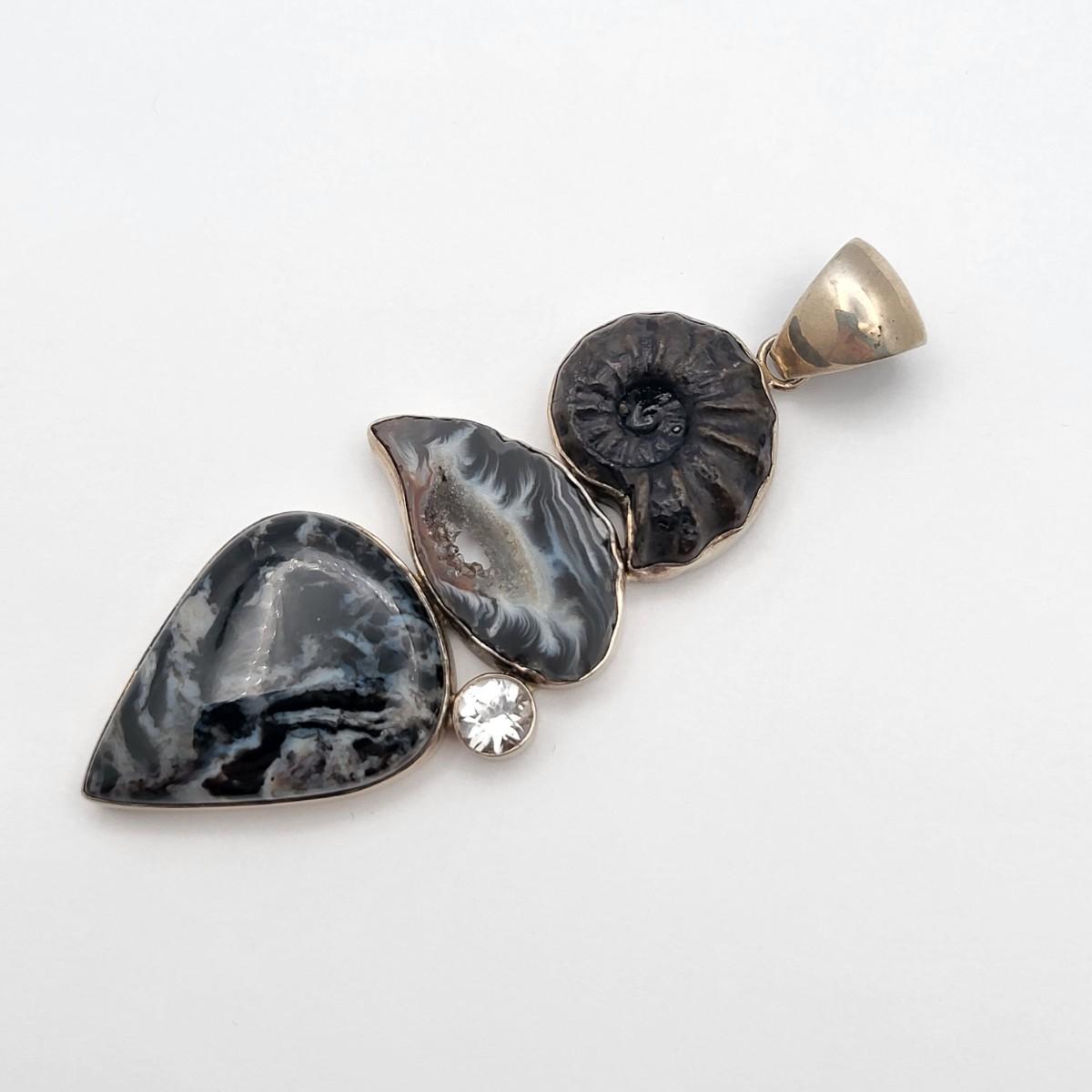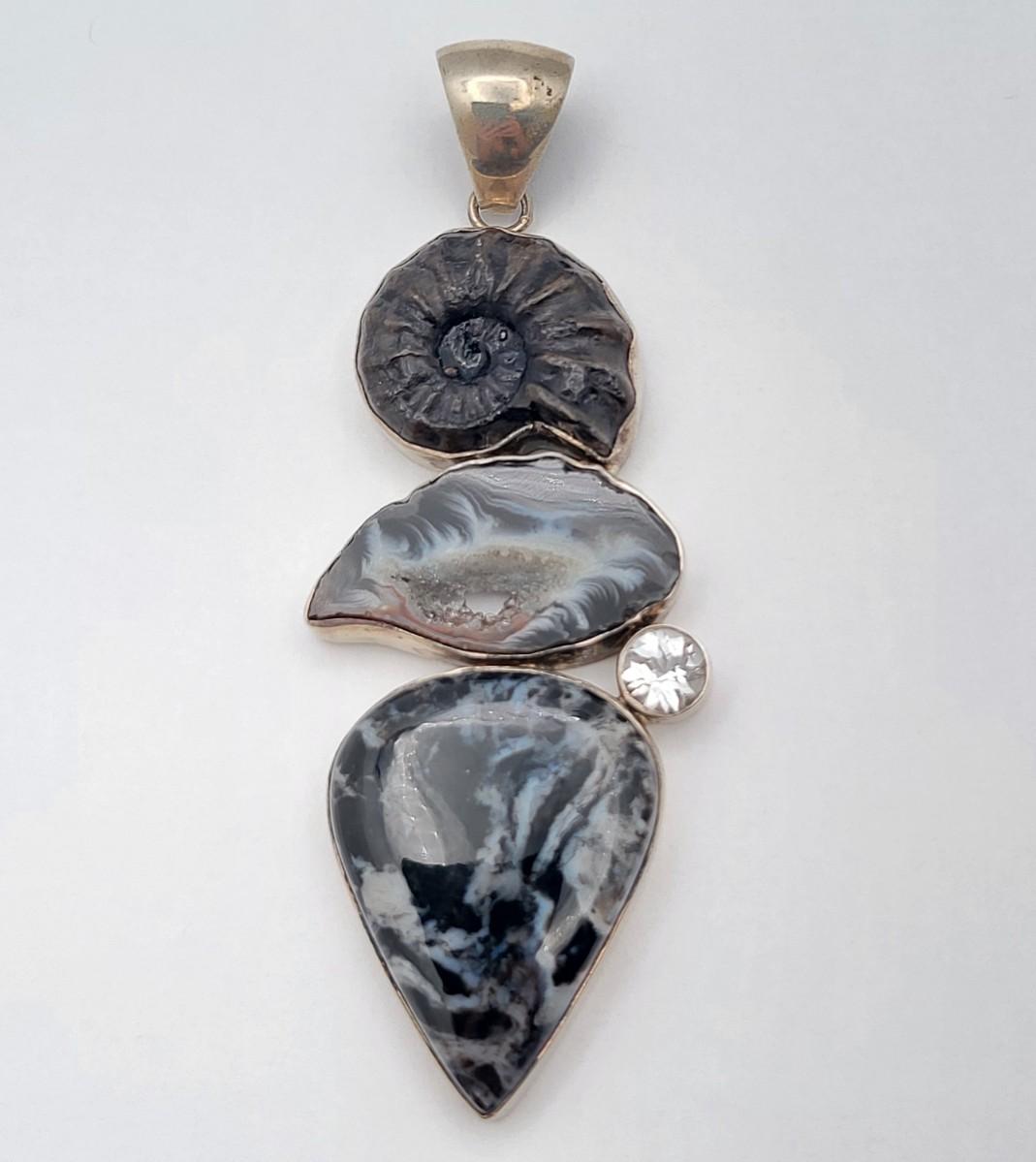 Huge Gemstone Pendant Ammonite Fossil Druzy Quartz 925