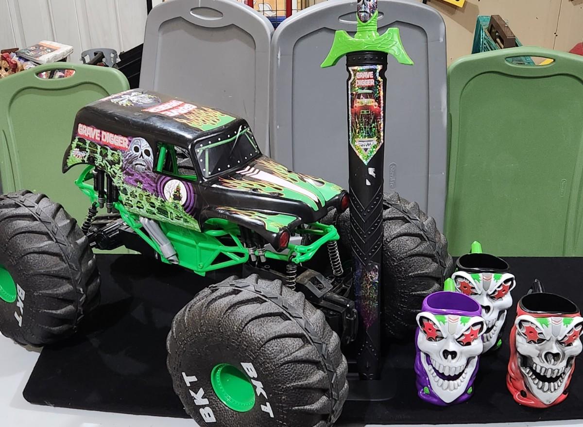 Huge Grave Digger Lot Complete w/ RC car Souviner Cups & Sword