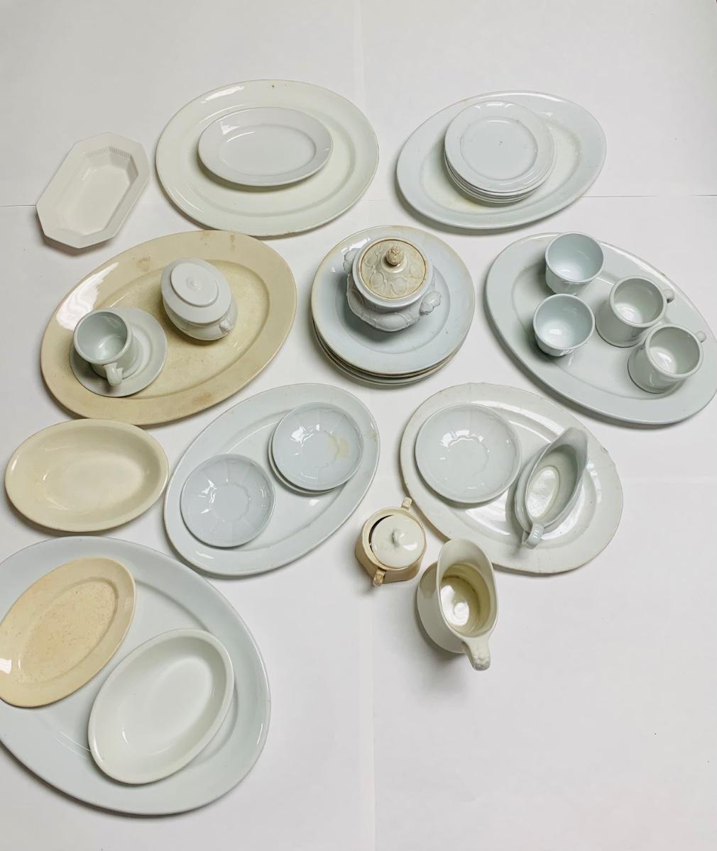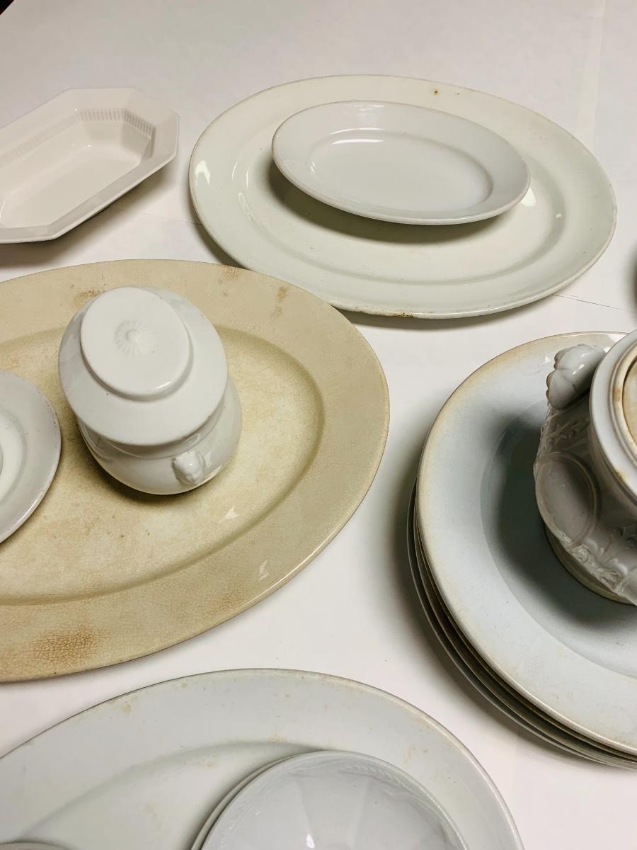 Over 15 plates, dinner platters, coffee cups, sugars, gravy boats